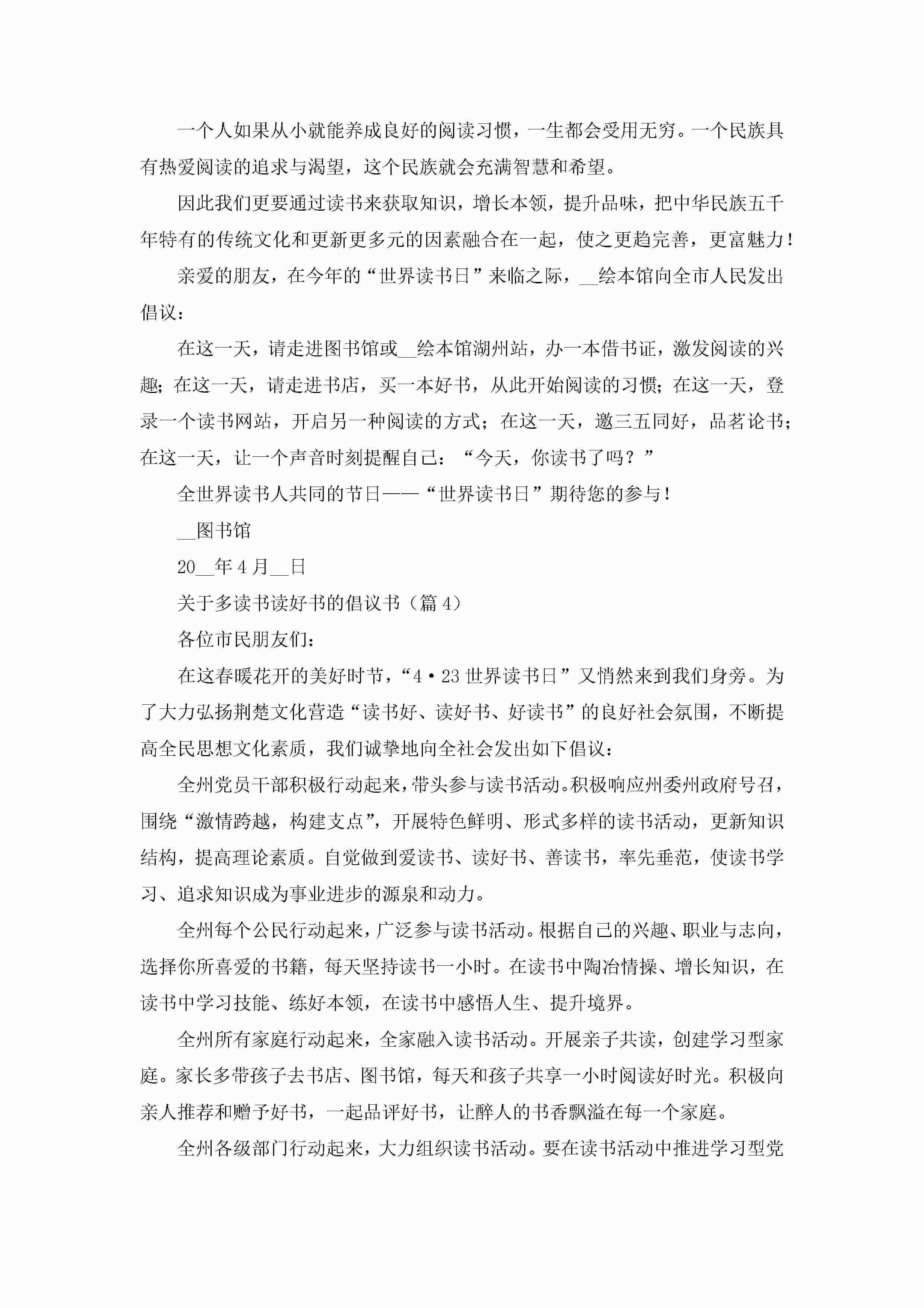 关于多读书读好书的倡议书【通用8篇】jugei3月22日 16:24发布关注198 关于多读书读好书的倡议书【通用8篇】此内容为付费资源,请付费后查看¥10.9 单篇文档限时特惠¥15个人会员开通企业会员开通立即下载无需登陆!可直接快捷下载单个模板付费资源© 版权声明THE ENDWord模板# 实用文档# 信函模板# 倡议书# 关于多读书读好书的倡议书 如有问题,可点击最底部“联系我们”联系客服 分享QQ空间微博QQ好友海报分享复制链接收藏