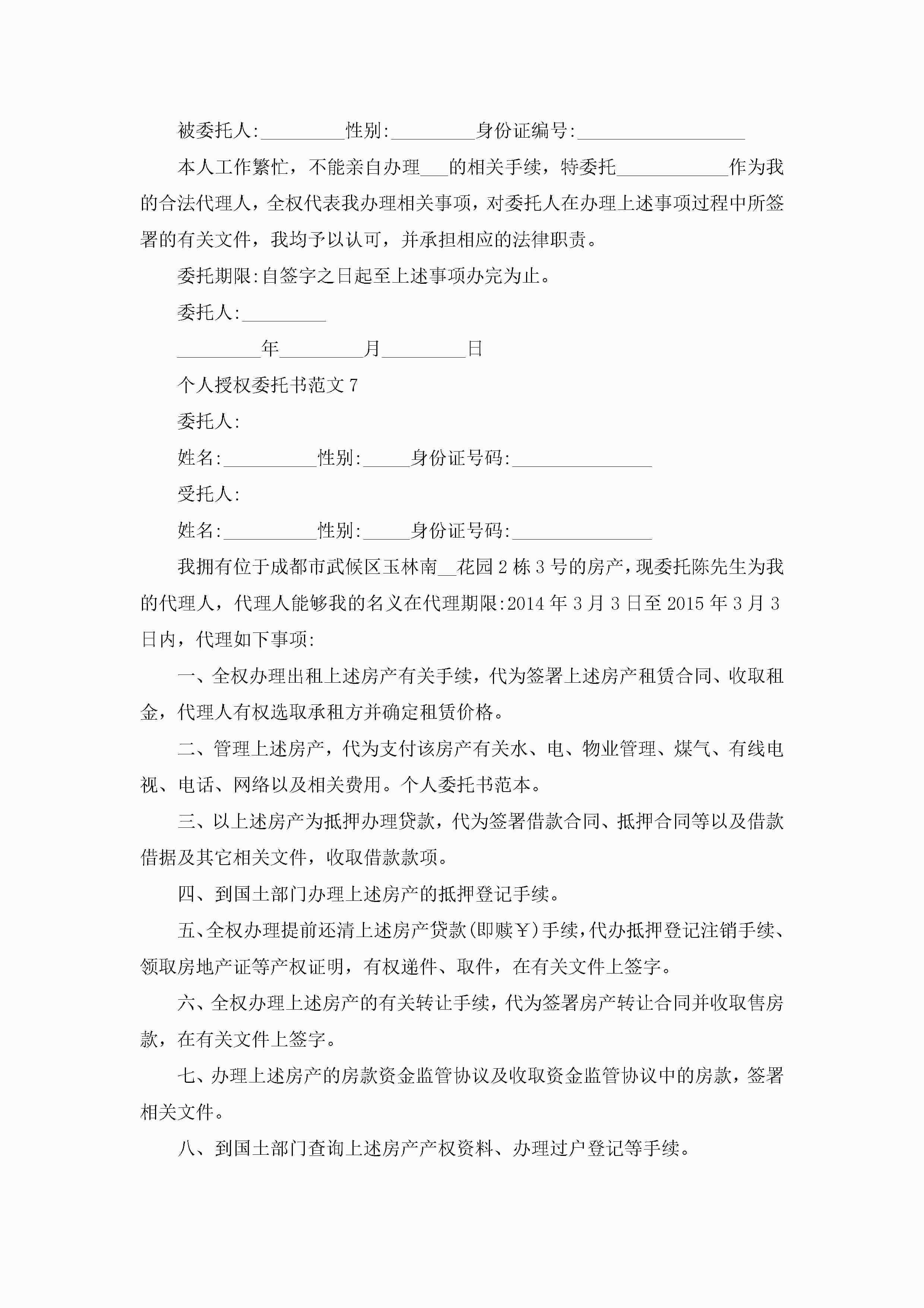个人授权委托书范文模板jugei3月22日 16:24发布关注293 个人授权委托书范文模板此内容为付费资源,请付费后查看¥10.9 单篇文档限时特惠¥15个人会员开通企业会员开通立即下载无需登陆!可直接快捷下载单个模板付费资源© 版权声明THE ENDWord模板# 实用文档# 实用模板# 信函模板# 委托书 如有问题,可点击最底部“联系我们”联系客服 分享QQ空间微博QQ好友海报分享复制链接收藏