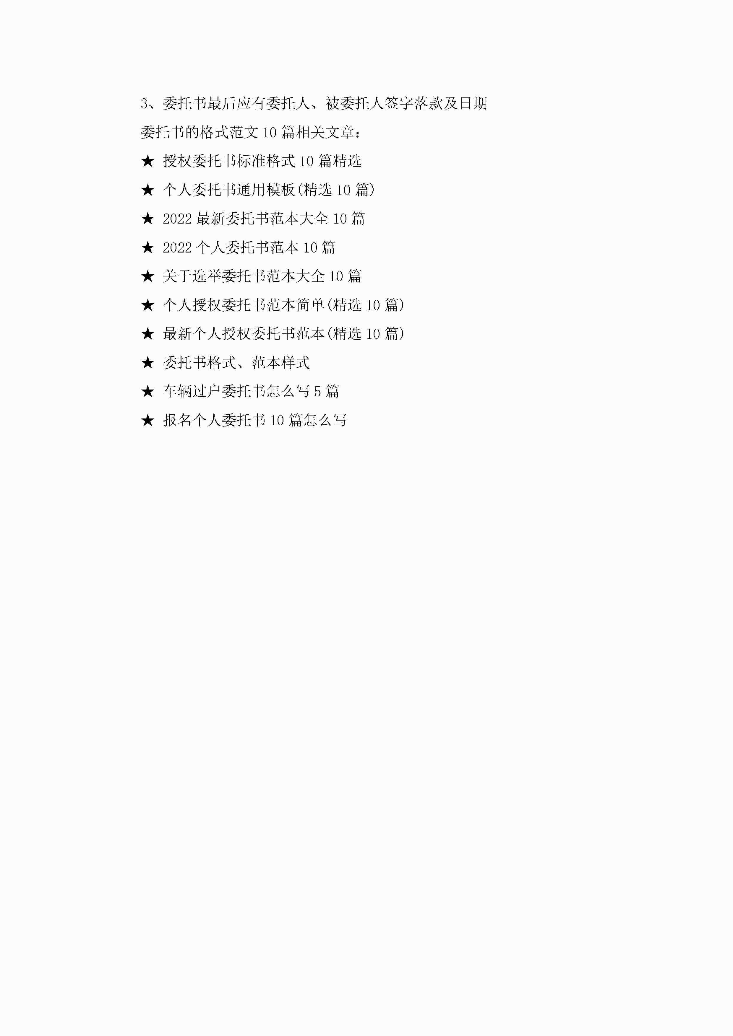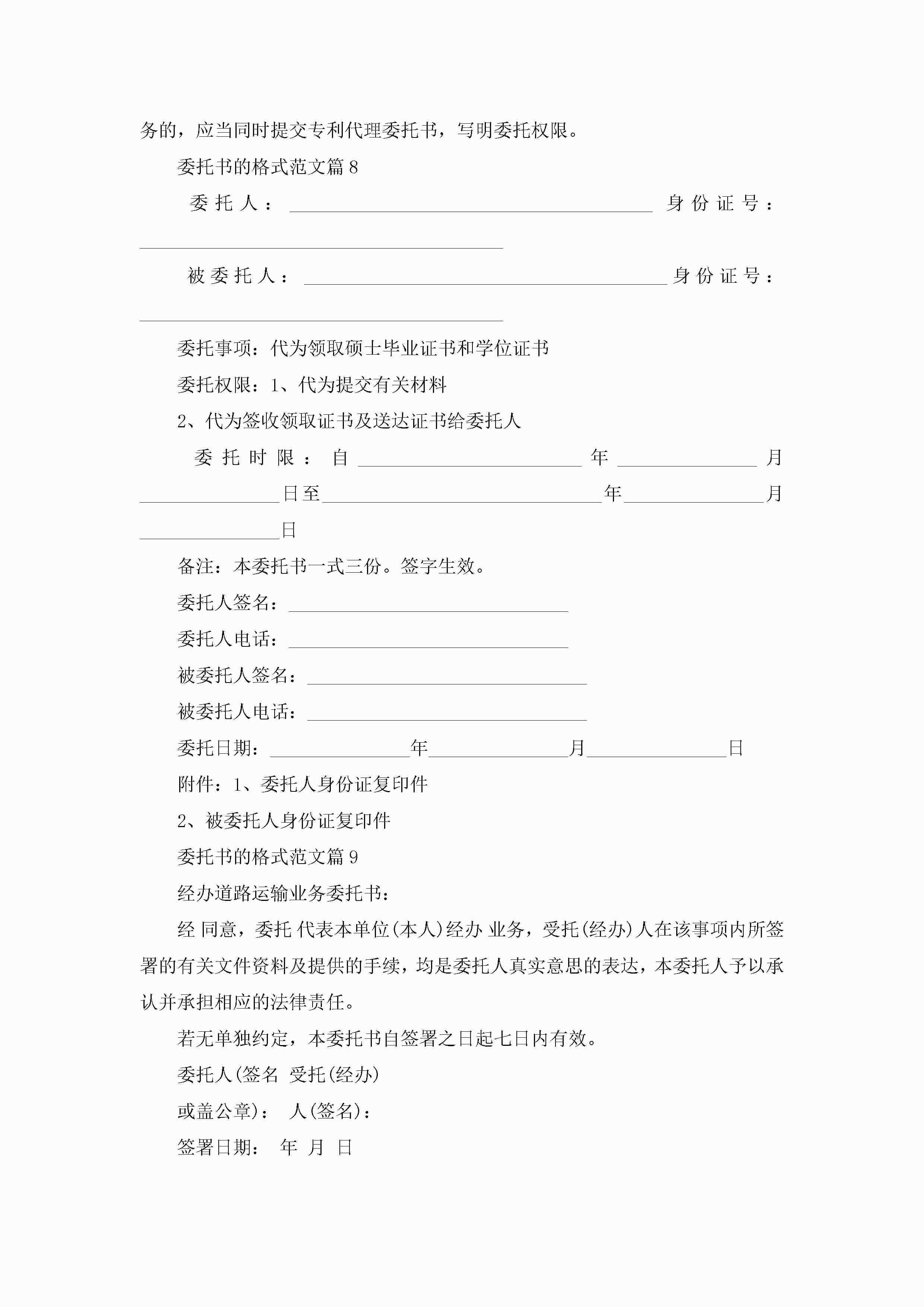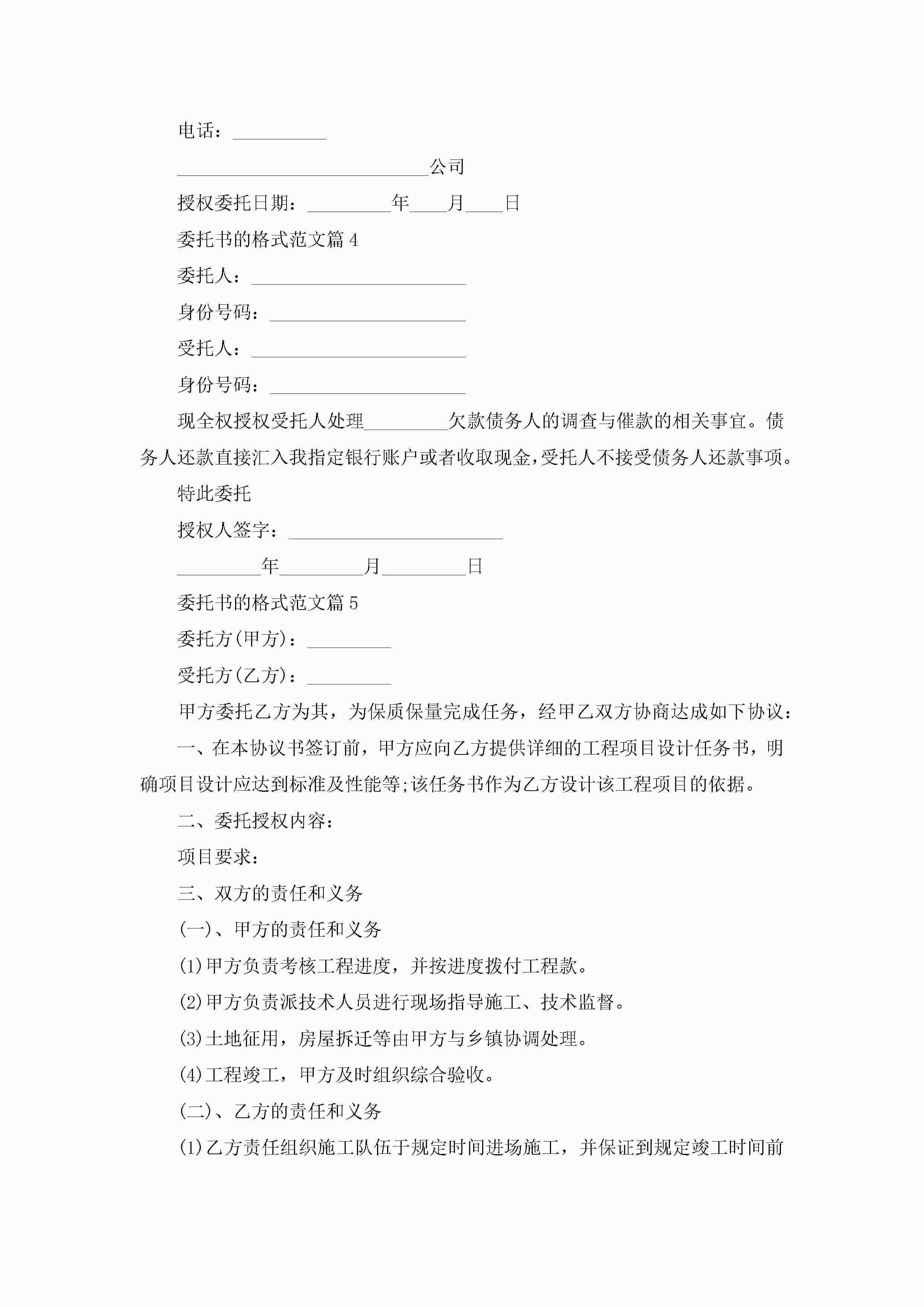 委托书的格式范文10篇参考jugei3月22日 16:24发布关注301 委托书的格式范文10篇参考此内容为付费资源,请付费后查看¥10.9 单篇文档限时特惠¥15个人会员开通企业会员开通立即下载无需登陆!可直接快捷下载单个模板付费资源© 版权声明THE ENDWord模板# 实用文档# 实用模板# 信函模板# 委托书 如有问题,可点击最底部“联系我们”联系客服 分享QQ空间微博QQ好友海报分享复制链接收藏
