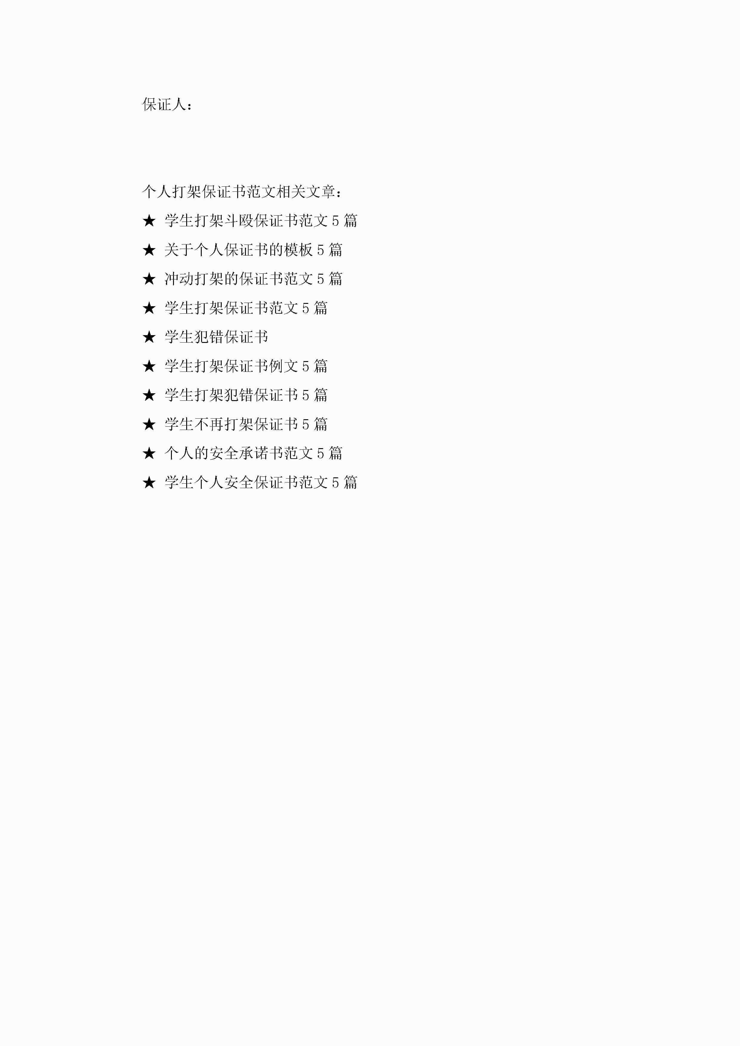 个人打架保证书范文5篇jugei3月22日 16:24发布关注245 个人打架保证书范文5篇此内容为付费资源,请付费后查看¥10.9 单篇文档限时特惠¥15个人会员开通企业会员开通立即下载无需登陆!可直接快捷下载单个模板付费资源© 版权声明THE ENDWord模板# 实用文档# 实用模板# 信函模板# 保证书 如有问题,可点击最底部“联系我们”联系客服 分享QQ空间微博QQ好友海报分享复制链接收藏