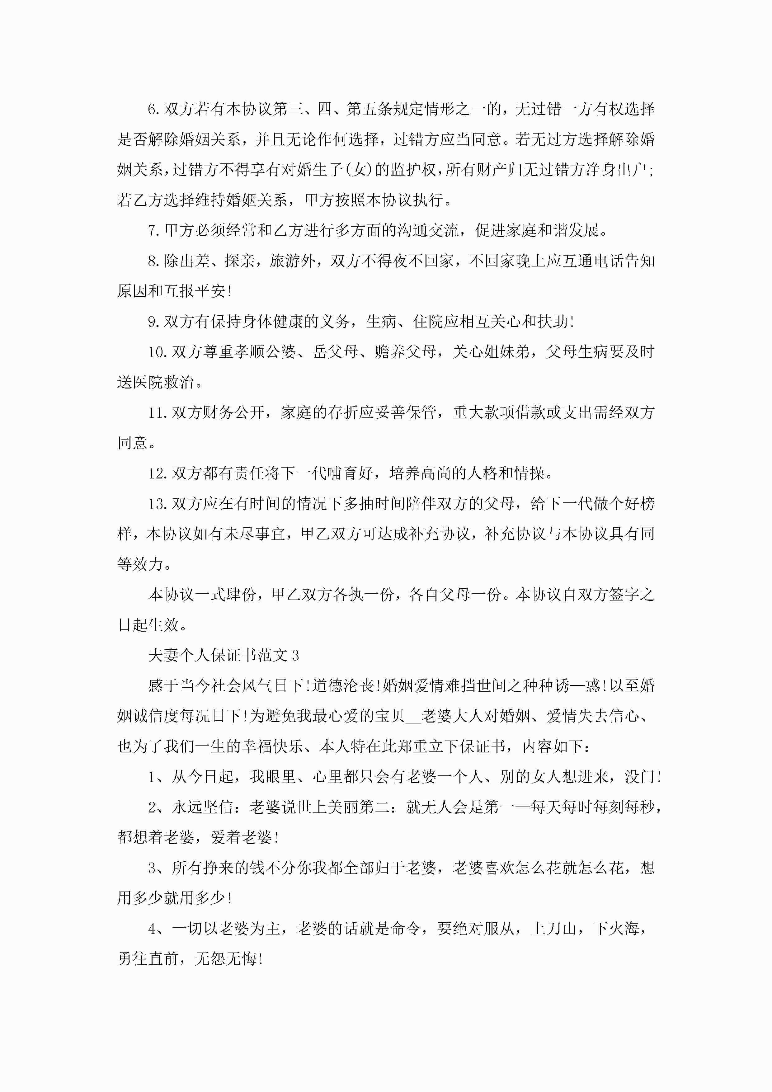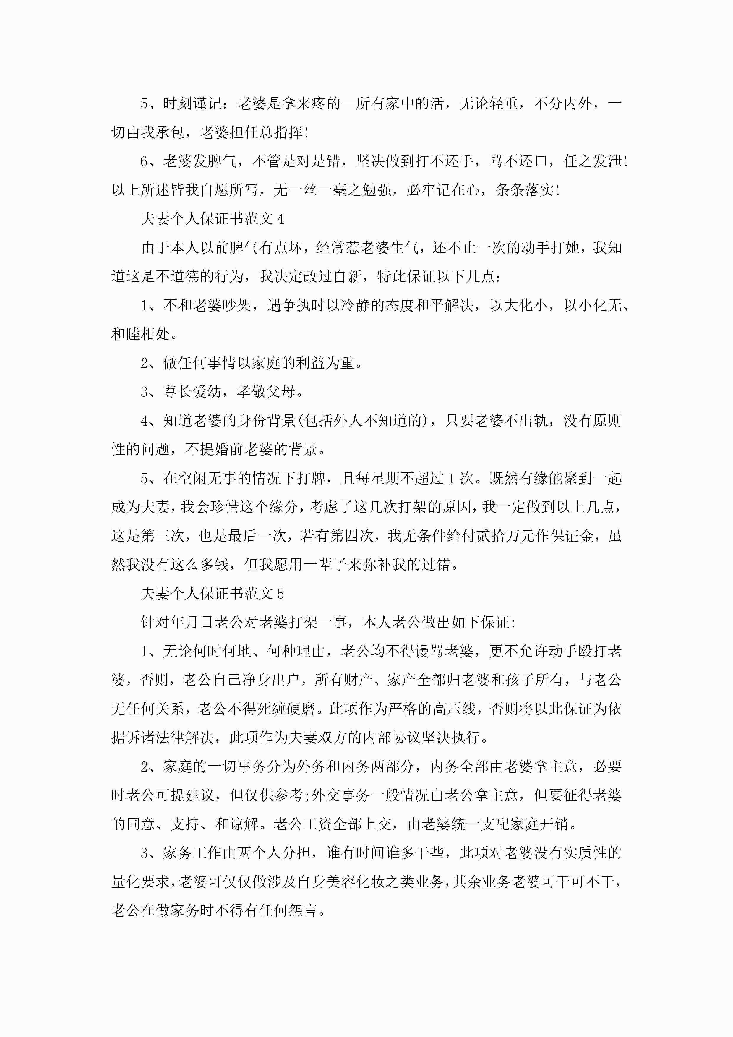 夫妻个人保证书范文5篇jugei3月22日 16:24发布关注194 夫妻个人保证书范文5篇此内容为付费资源,请付费后查看¥10.9 单篇文档限时特惠¥15个人会员开通企业会员开通立即下载无需登陆!可直接快捷下载单个模板付费资源© 版权声明THE ENDWord模板# 实用文档# 实用模板# 信函模板# 保证书 如有问题,可点击最底部“联系我们”联系客服 分享QQ空间微博QQ好友海报分享复制链接收藏