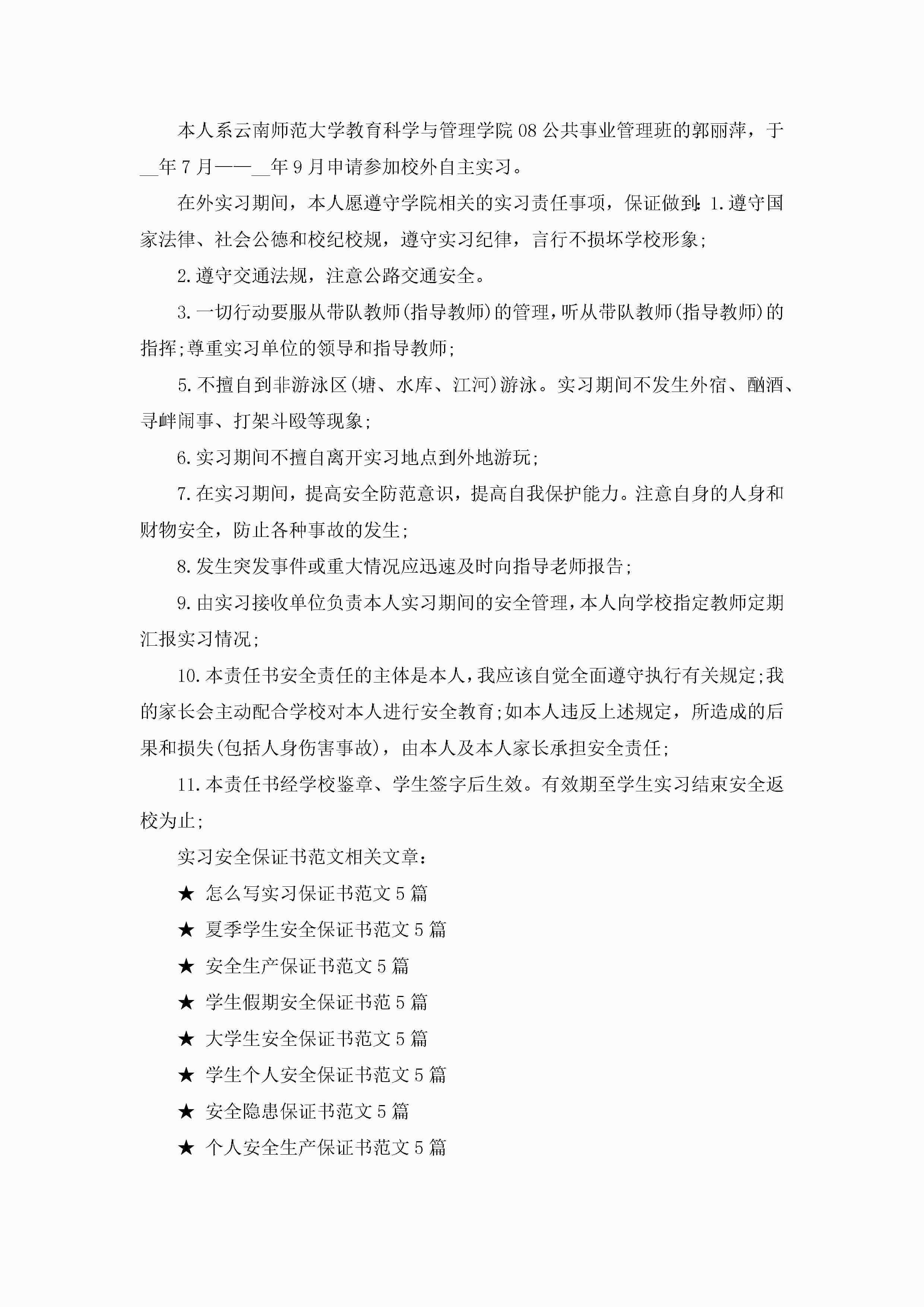 实习安全保证书范文5篇jugei3月22日 16:24发布关注201 实习安全保证书范文5篇此内容为付费资源,请付费后查看¥10.9 单篇文档限时特惠¥15个人会员开通企业会员开通立即下载无需登陆!可直接快捷下载单个模板付费资源© 版权声明THE ENDWord模板# 实用文档# 实用模板# 信函模板# 保证书 如有问题,可点击最底部“联系我们”联系客服 分享QQ空间微博QQ好友海报分享复制链接收藏