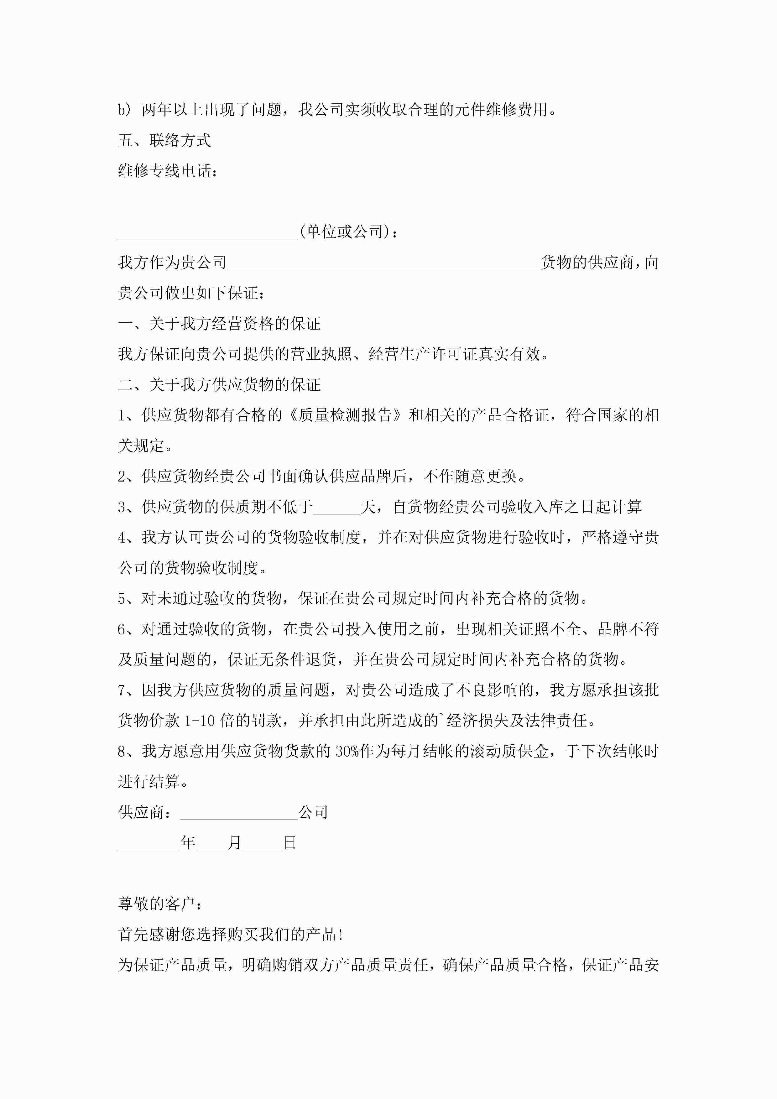 产品质量保证书5篇jugei3月22日 16:24发布关注278 产品质量保证书5篇此内容为付费资源,请付费后查看¥10.9 单篇文档限时特惠¥15个人会员开通企业会员开通立即下载无需登陆!可直接快捷下载单个模板付费资源© 版权声明THE ENDWord模板# 实用文档# 实用模板# 信函模板# 保证书 如有问题,可点击最底部“联系我们”联系客服 分享QQ空间微博QQ好友海报分享复制链接收藏