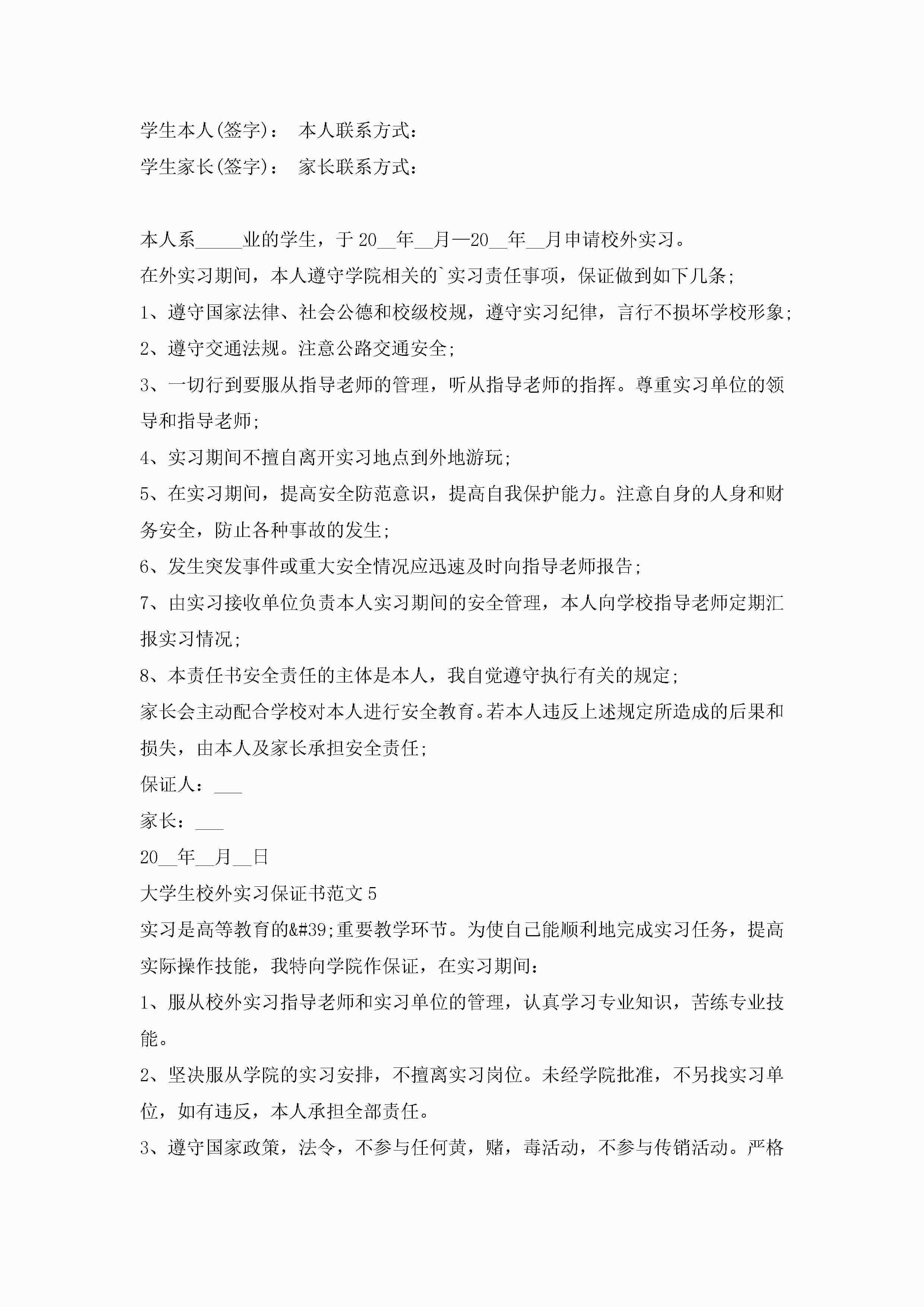 大学生校外实习保证书范文5篇jugei3月22日 16:24发布关注195 大学生校外实习保证书范文5篇此内容为付费资源,请付费后查看¥10.9 单篇文档限时特惠¥15个人会员开通企业会员开通立即下载无需登陆!可直接快捷下载单个模板付费资源© 版权声明THE ENDWord模板# 实用文档# 实用模板# 信函模板# 保证书 如有问题,可点击最底部“联系我们”联系客服 分享QQ空间微博QQ好友海报分享复制链接收藏