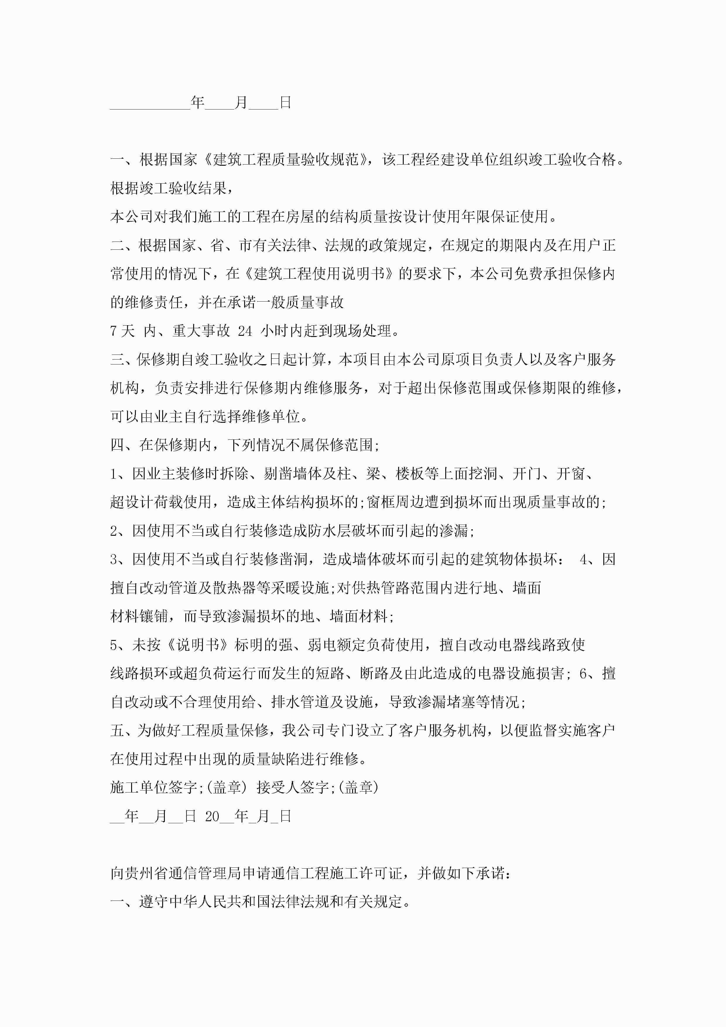 工程施工质量保证书范文5篇jugei3月22日 16:24发布关注211 工程施工质量保证书范文5篇此内容为付费资源,请付费后查看¥10.9 单篇文档限时特惠¥15个人会员开通企业会员开通立即下载无需登陆!可直接快捷下载单个模板付费资源© 版权声明THE ENDWord模板# 实用文档# 实用模板# 信函模板# 保证书 如有问题,可点击最底部“联系我们”联系客服 分享QQ空间微博QQ好友海报分享复制链接收藏