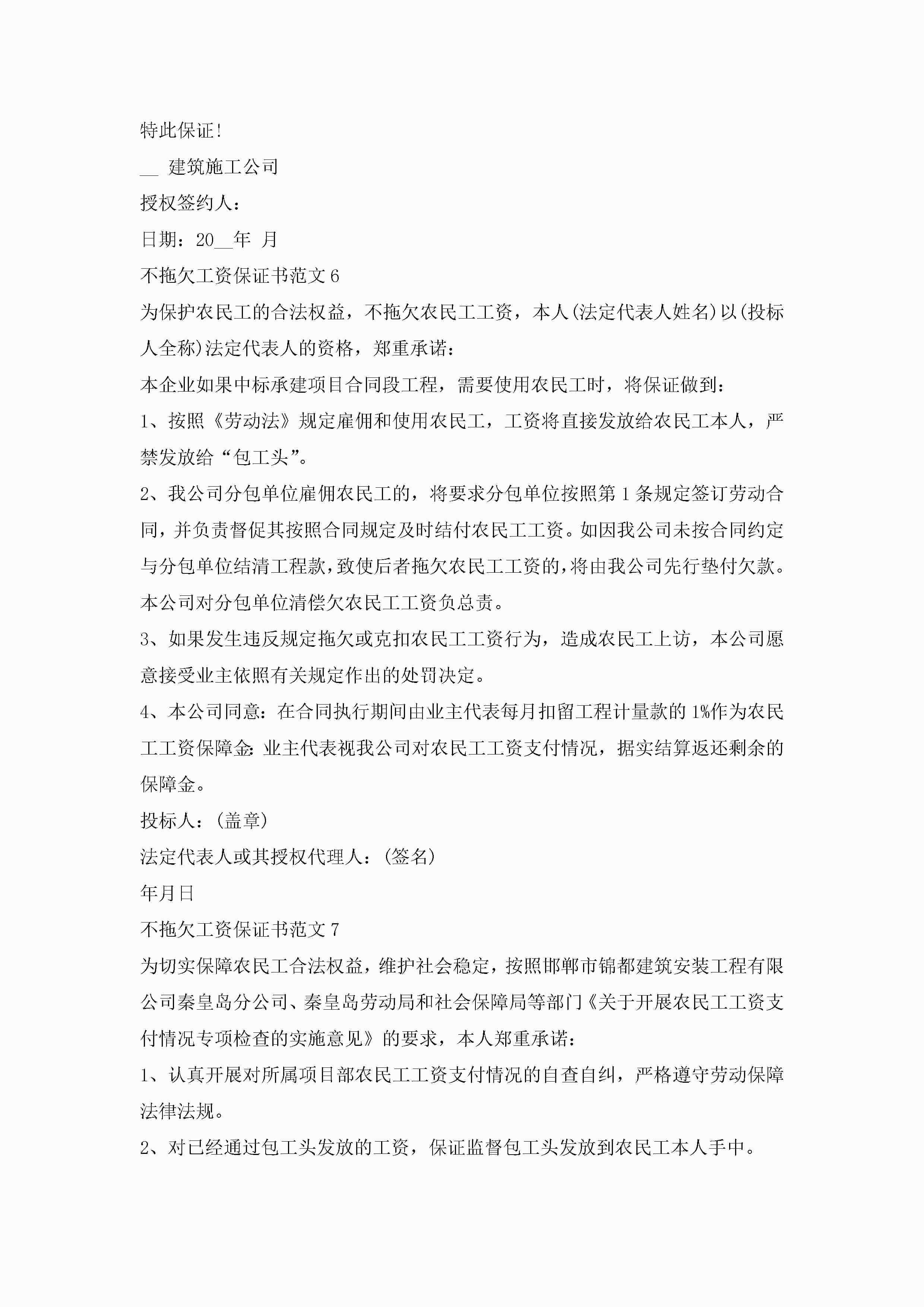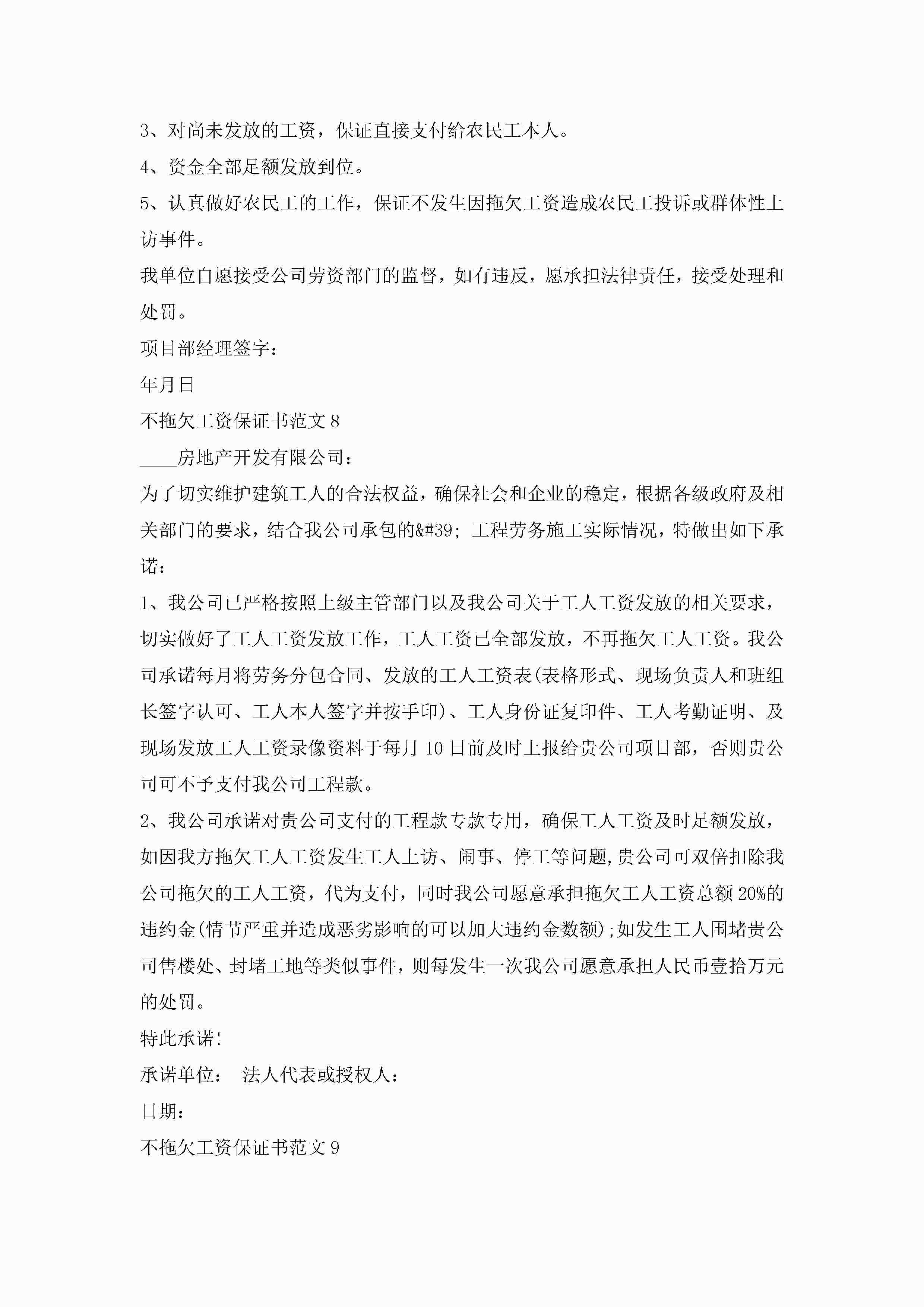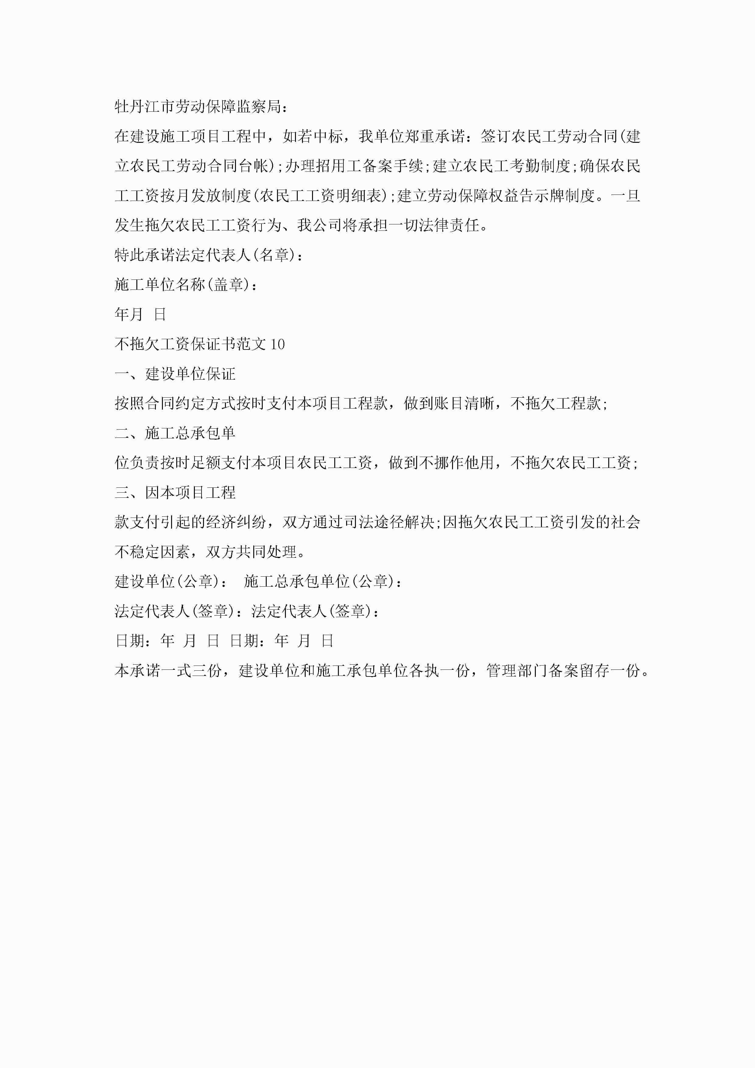 不拖欠工资保证书范文大全10篇jugei3月22日 16:24发布关注195 不拖欠工资保证书范文大全10篇此内容为付费资源,请付费后查看¥10.9 单篇文档限时特惠¥15个人会员开通企业会员开通立即下载无需登陆!可直接快捷下载单个模板付费资源© 版权声明THE ENDWord模板# 实用文档# 实用模板# 信函模板# 保证书 如有问题,可点击最底部“联系我们”联系客服 分享QQ空间微博QQ好友海报分享复制链接收藏