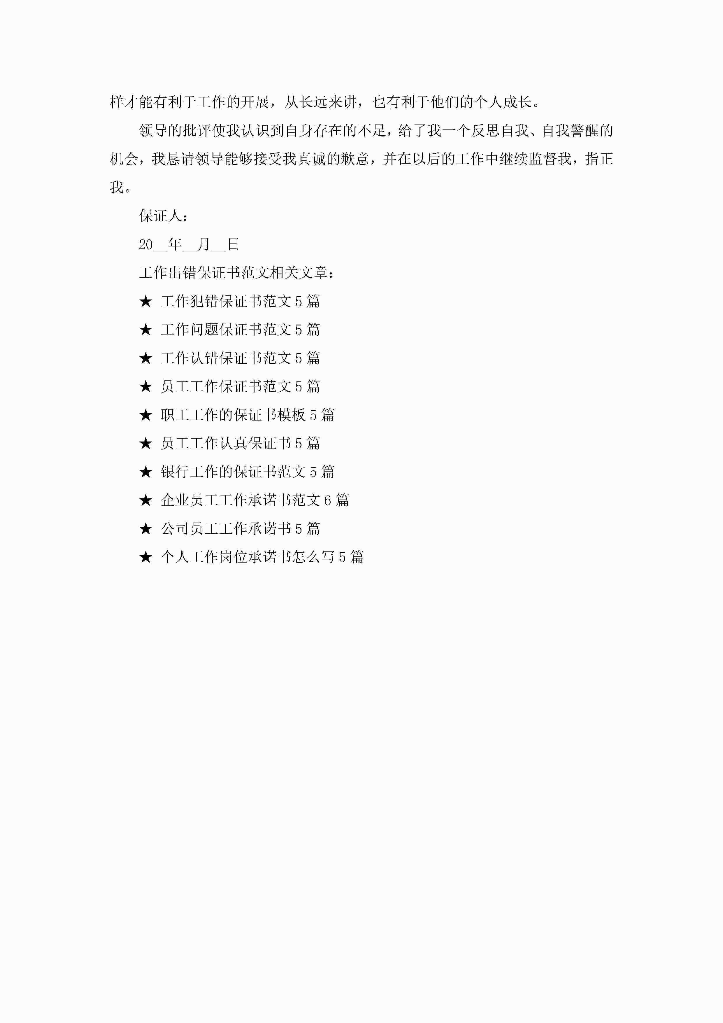 工作出错保证书范文5篇jugei3月22日 16:24发布关注196 工作出错保证书范文5篇此内容为付费资源,请付费后查看¥10.9 单篇文档限时特惠¥15个人会员开通企业会员开通立即下载无需登陆!可直接快捷下载单个模板付费资源© 版权声明THE ENDWord模板# 实用文档# 实用模板# 信函模板# 保证书 如有问题,可点击最底部“联系我们”联系客服 分享QQ空间微博QQ好友海报分享复制链接收藏