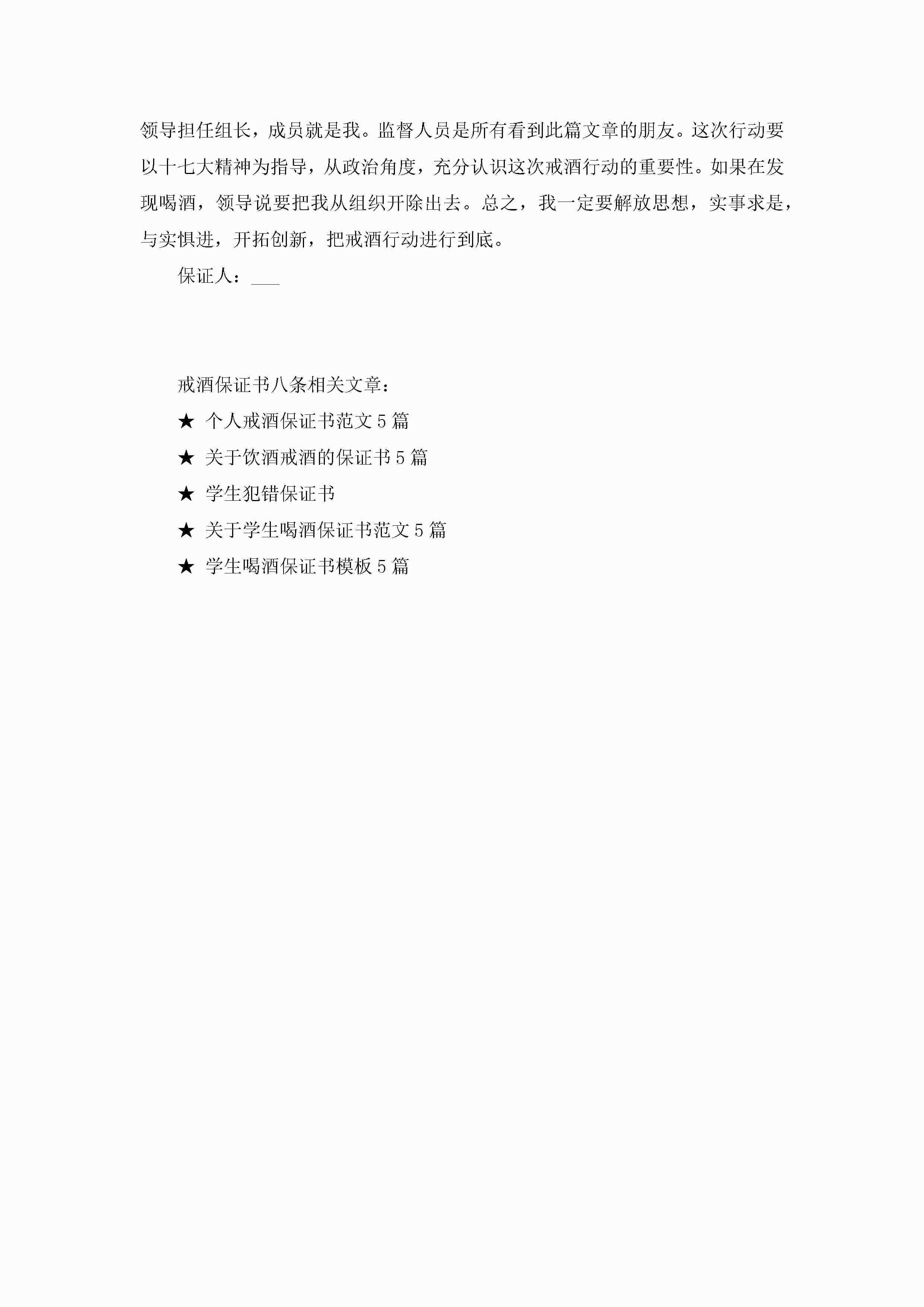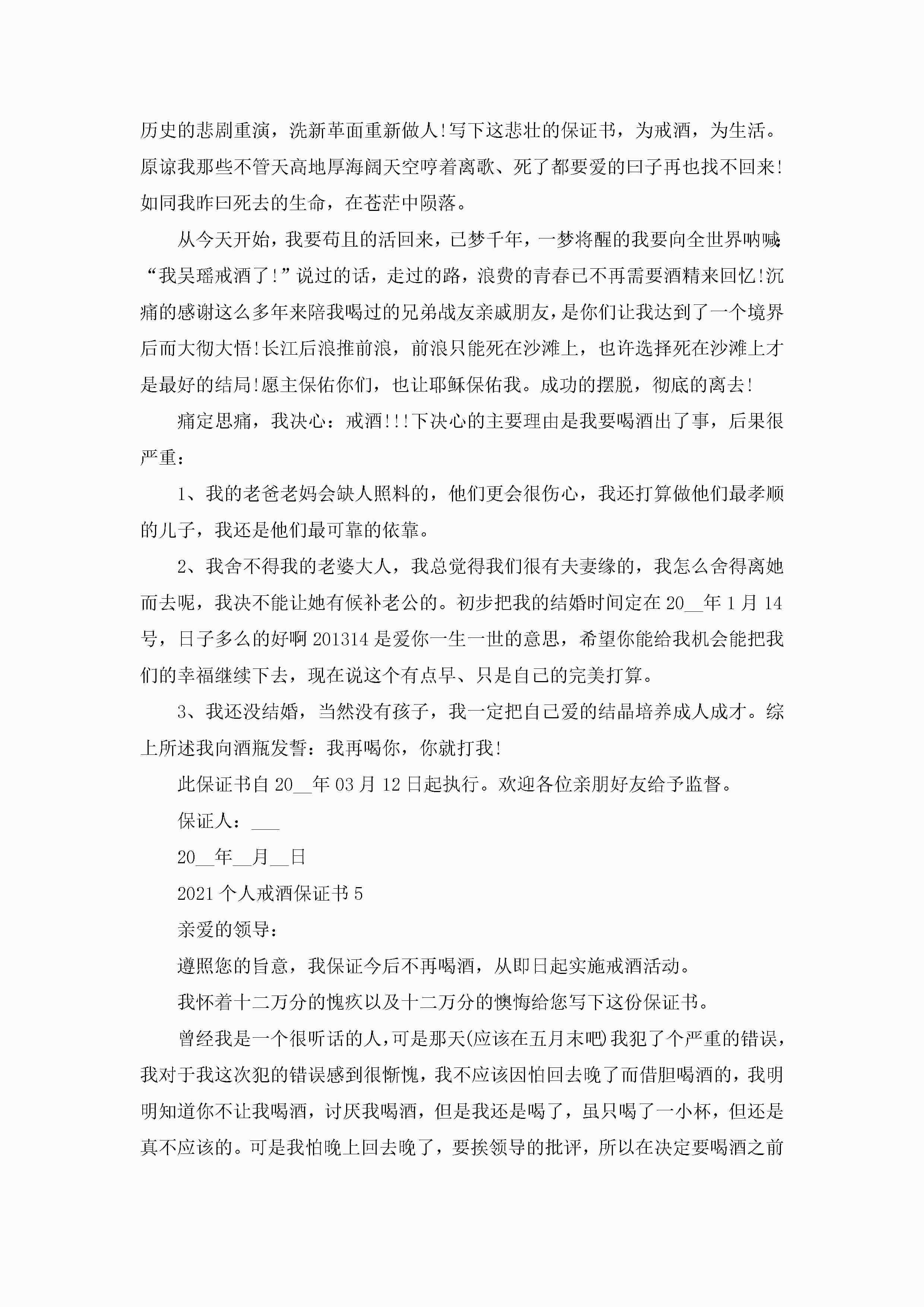 2022个人戒酒保证书5篇jugei3月22日 16:24发布关注199 2022个人戒酒保证书5篇此内容为付费资源,请付费后查看¥10.9 单篇文档限时特惠¥15个人会员开通企业会员开通立即下载无需登陆!可直接快捷下载单个模板付费资源© 版权声明THE ENDWord模板# 实用文档# 实用模板# 信函模板# 保证书 如有问题,可点击最底部“联系我们”联系客服 分享QQ空间微博QQ好友海报分享复制链接收藏