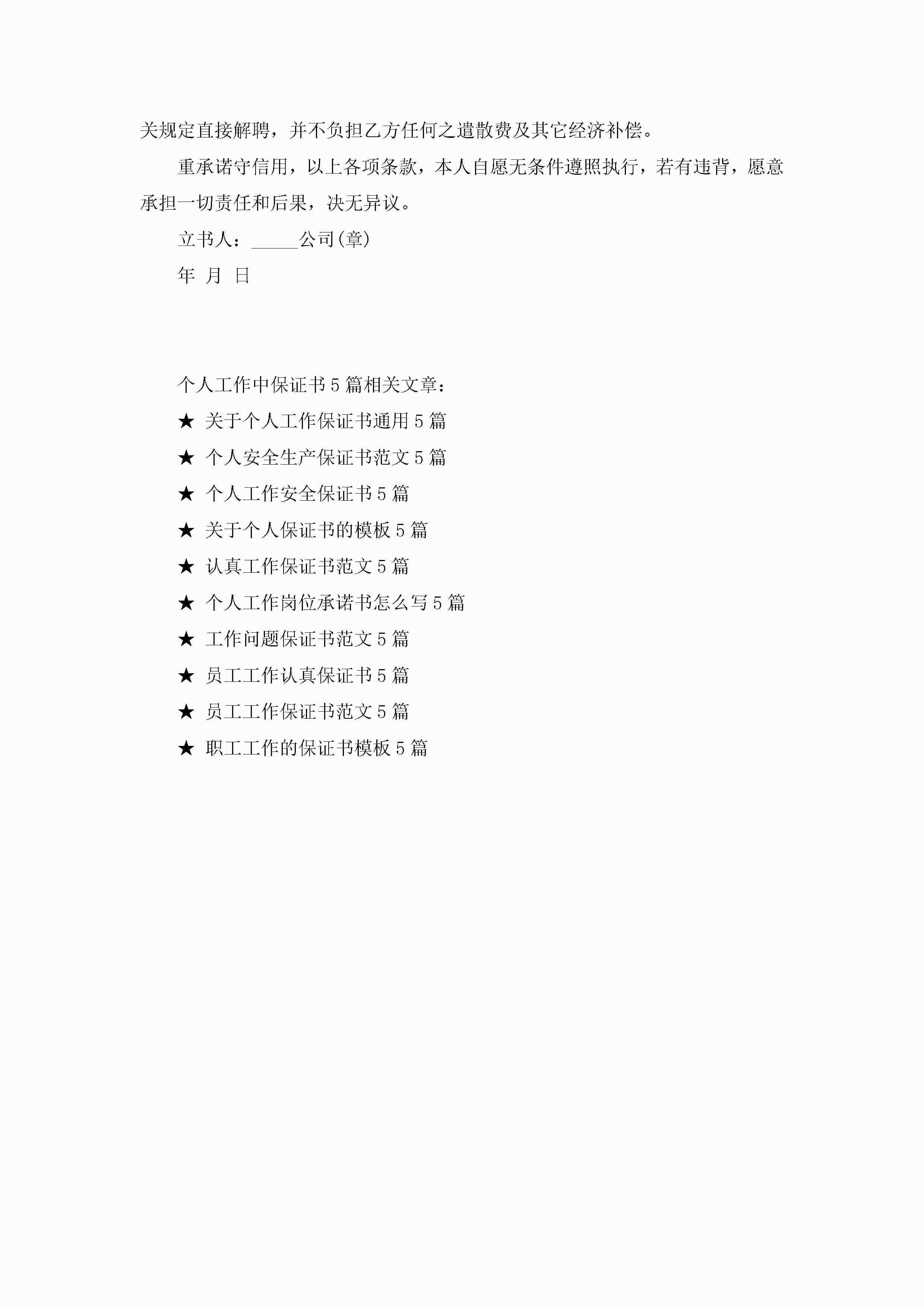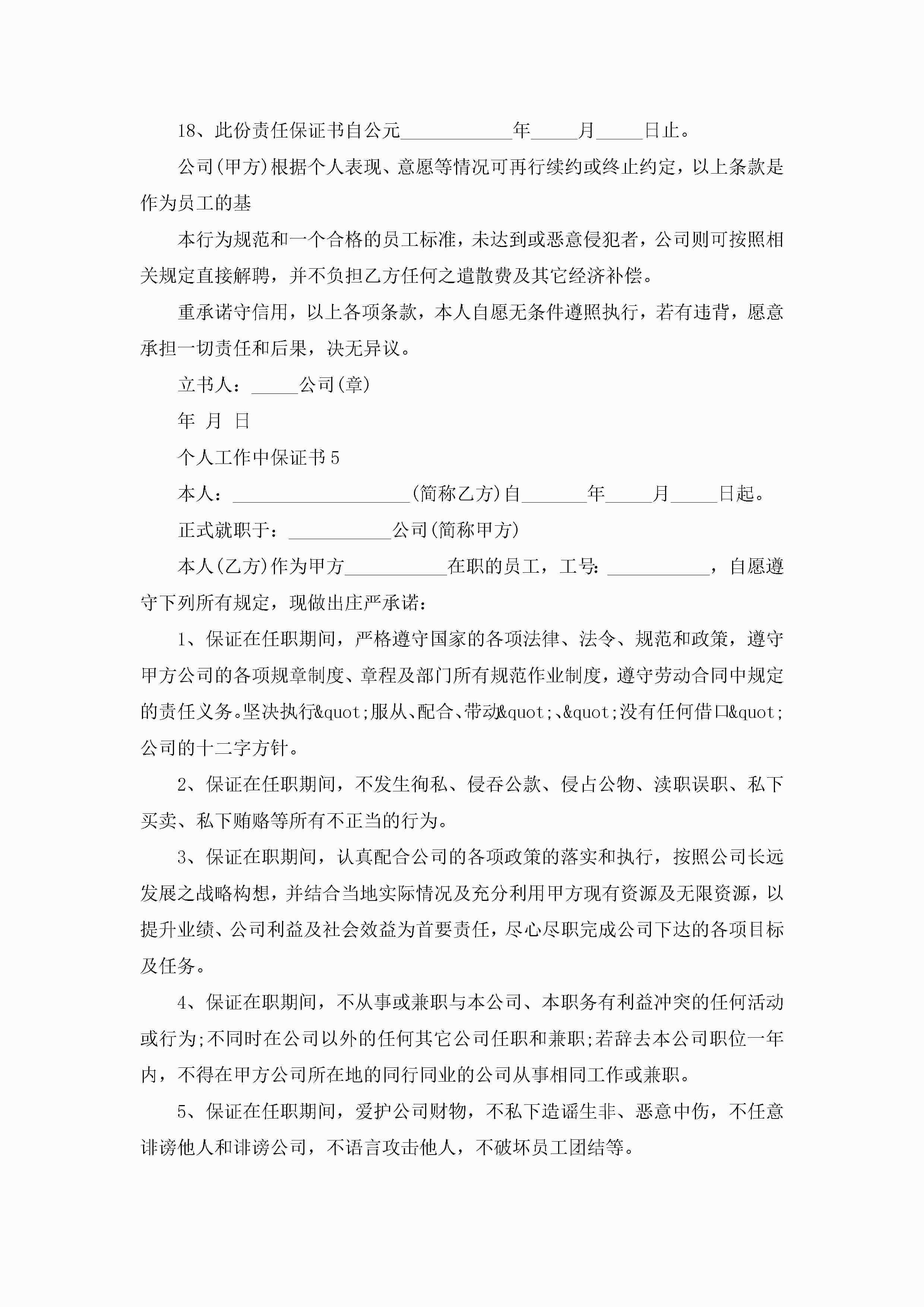 最新个人工作中保证书5篇jugei3月22日 16:24发布关注253 最新个人工作中保证书5篇此内容为付费资源,请付费后查看¥10.9 单篇文档限时特惠¥15个人会员开通企业会员开通立即下载无需登陆!可直接快捷下载单个模板付费资源© 版权声明THE ENDWord模板# 实用文档# 实用模板# 信函模板# 保证书 如有问题,可点击最底部“联系我们”联系客服 分享QQ空间微博QQ好友海报分享复制链接收藏