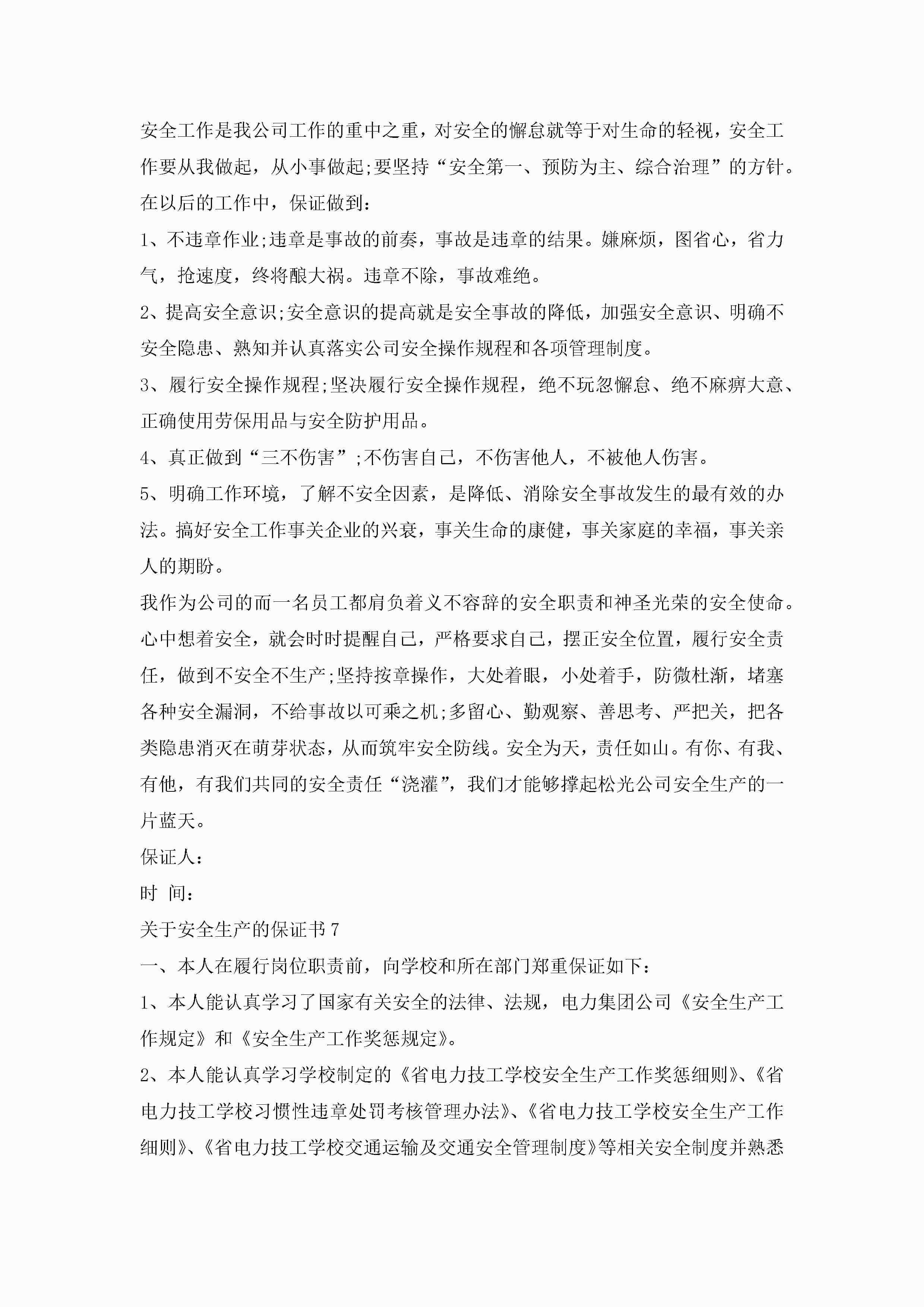 关于安全生产的保证书7篇jugei3月22日 16:24发布关注238 关于安全生产的保证书7篇此内容为付费资源,请付费后查看¥10.9 单篇文档限时特惠¥15个人会员开通企业会员开通立即下载无需登陆!可直接快捷下载单个模板付费资源© 版权声明THE ENDWord模板# 实用文档# 实用模板# 信函模板# 保证书 如有问题,可点击最底部“联系我们”联系客服 分享QQ空间微博QQ好友海报分享复制链接收藏