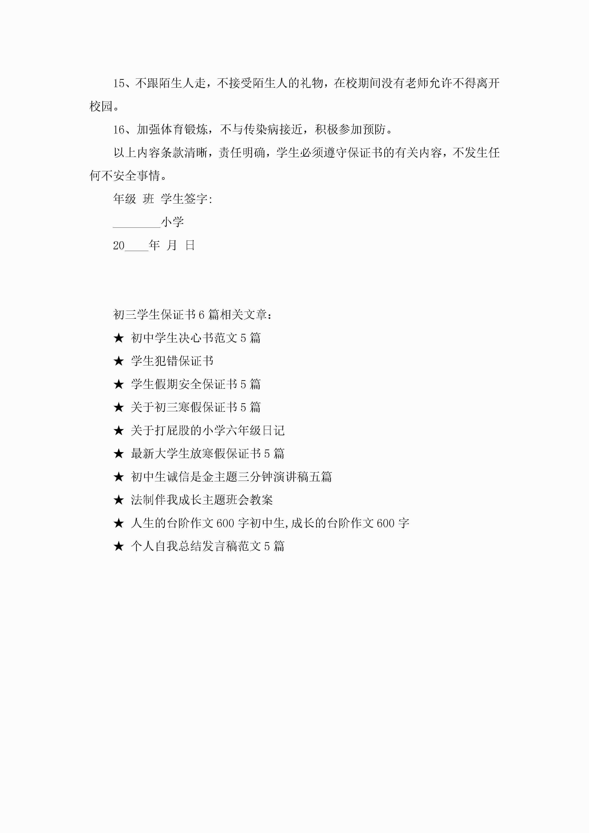 最新初三学生保证书6篇jugei3月22日 16:24发布关注203 最新初三学生保证书6篇此内容为付费资源,请付费后查看¥10.9 单篇文档限时特惠¥15个人会员开通企业会员开通立即下载无需登陆!可直接快捷下载单个模板付费资源© 版权声明THE ENDWord模板# 实用文档# 实用模板# 信函模板# 保证书 如有问题,可点击最底部“联系我们”联系客服 分享QQ空间微博QQ好友海报分享复制链接收藏