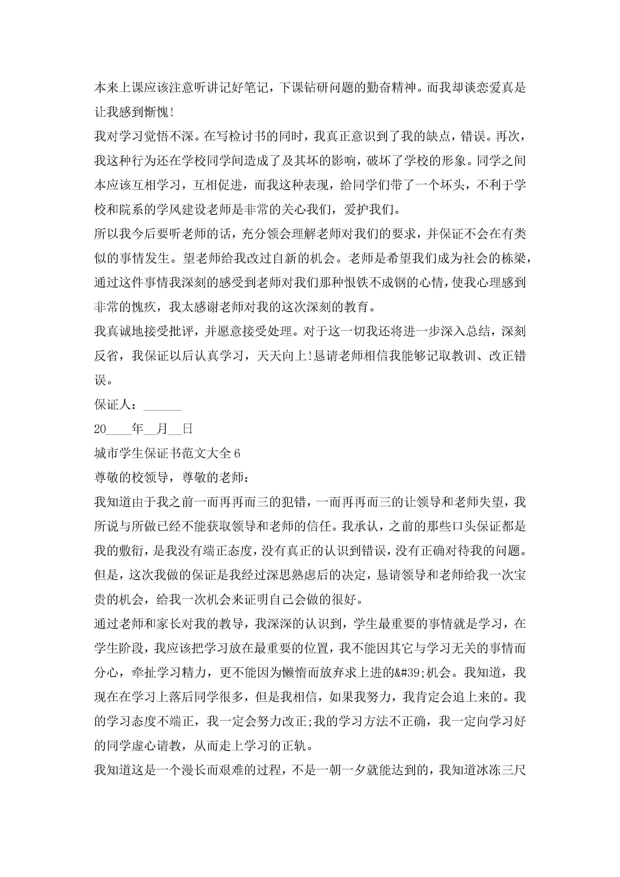 城市学生保证书范文大全7篇jugei3月22日 16:24发布关注195 城市学生保证书范文大全7篇此内容为付费资源,请付费后查看¥10.9 单篇文档限时特惠¥15个人会员开通企业会员开通立即下载无需登陆!可直接快捷下载单个模板付费资源© 版权声明THE ENDWord模板# 实用文档# 实用模板# 信函模板# 保证书 如有问题,可点击最底部“联系我们”联系客服 分享QQ空间微博QQ好友海报分享复制链接收藏