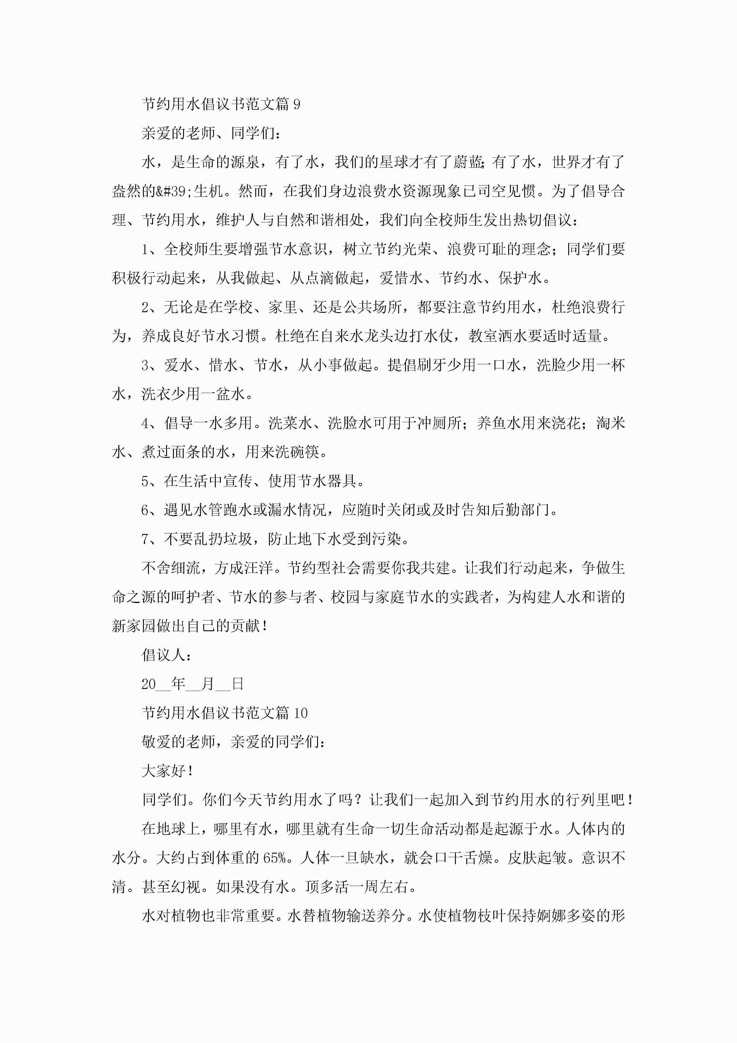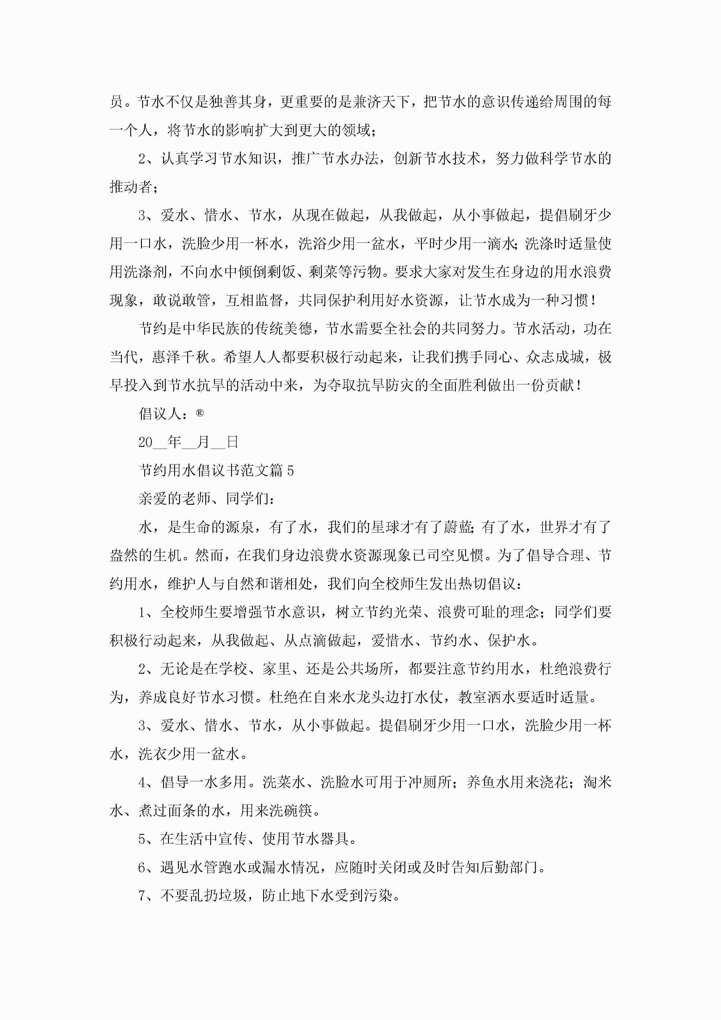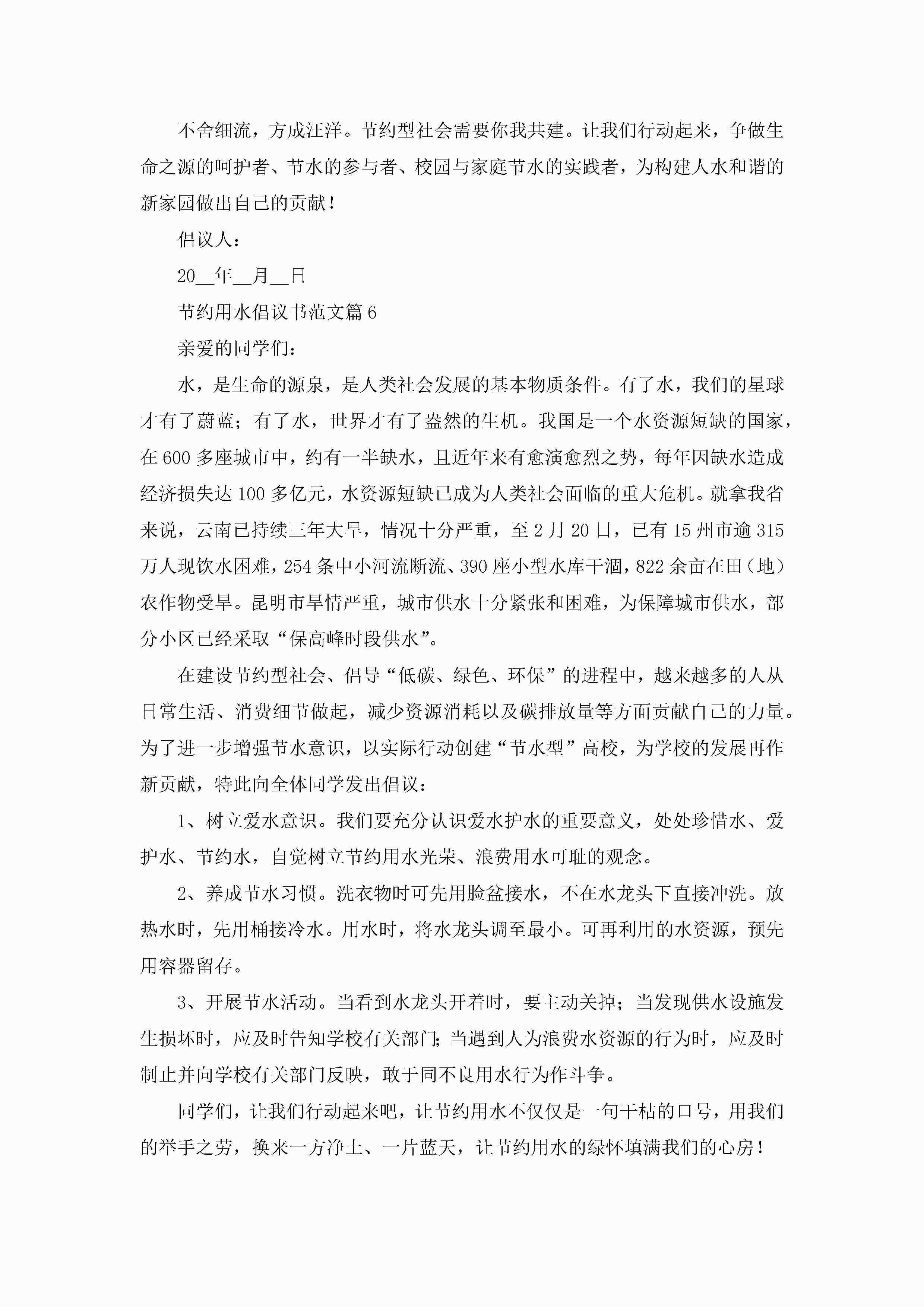 节约用水倡议书范文(十篇)精选jugei3月22日 16:25发布关注192 节约用水倡议书范文(十篇)精选此内容为付费资源,请付费后查看¥10.9 单篇文档限时特惠¥15个人会员开通企业会员开通立即下载无需登陆!可直接快捷下载单个模板付费资源© 版权声明THE ENDWord模板# 实用文档# 信函模板# 倡议书# 节约用水倡议书范文(十篇) 如有问题,可点击最底部“联系我们”联系客服 分享QQ空间微博QQ好友海报分享复制链接收藏