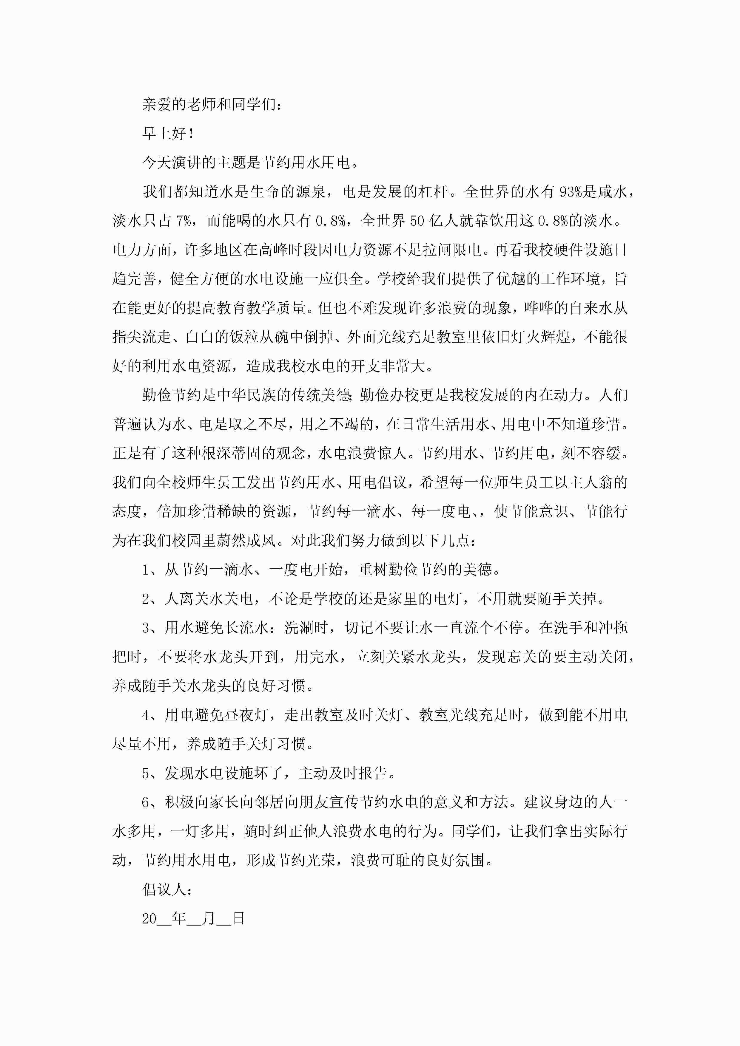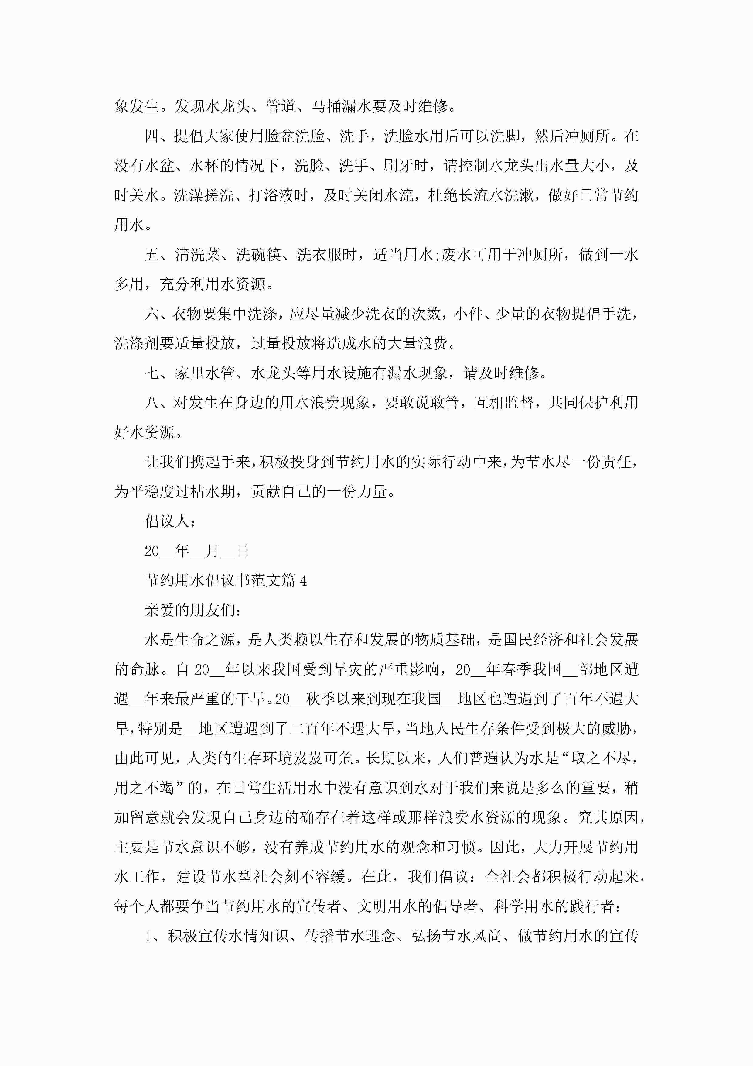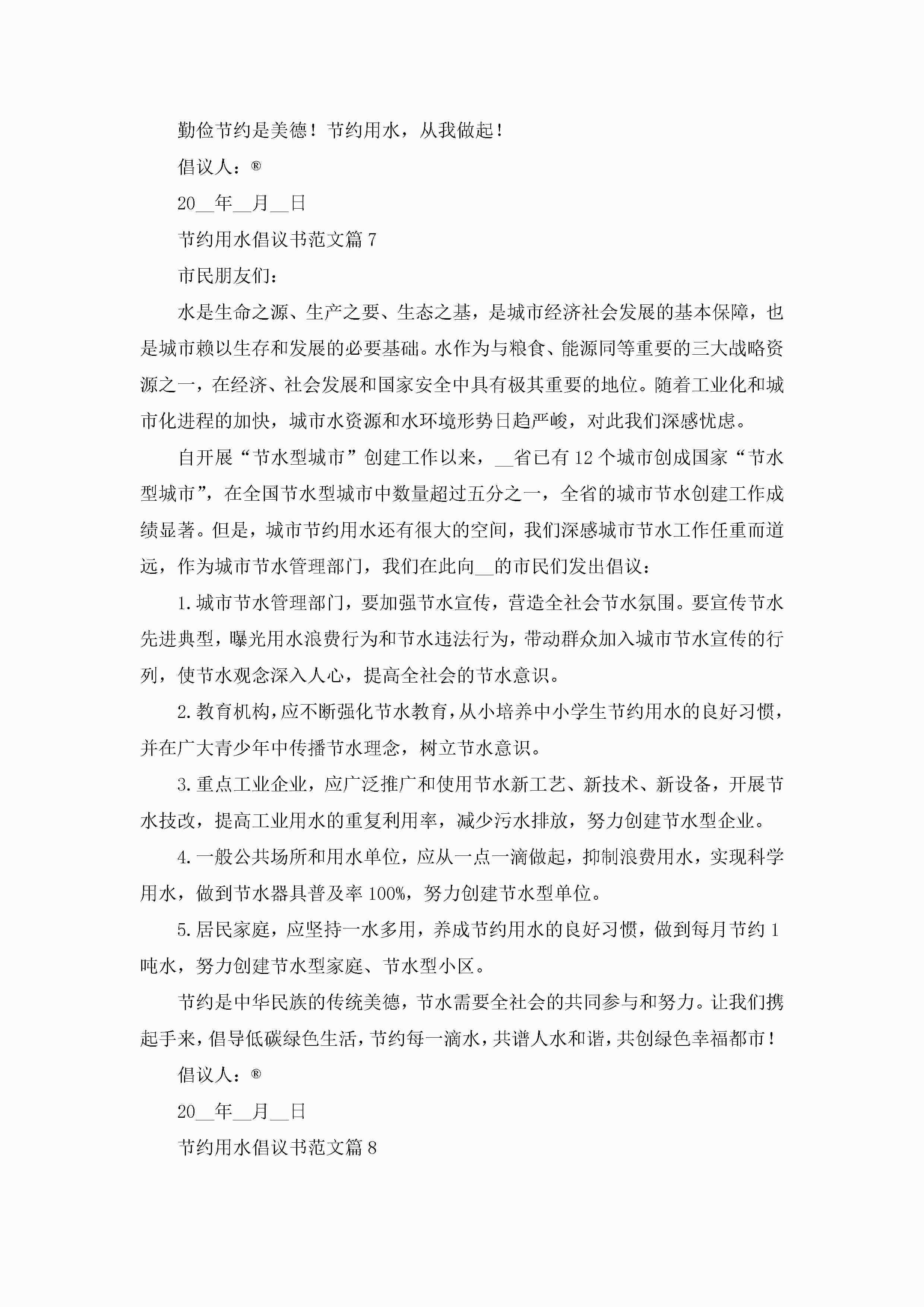 节约用水倡议书范文(十篇)精选jugei3月22日 16:25发布关注192 节约用水倡议书范文(十篇)精选此内容为付费资源,请付费后查看¥10.9 单篇文档限时特惠¥15个人会员开通企业会员开通立即下载无需登陆!可直接快捷下载单个模板付费资源© 版权声明THE ENDWord模板# 实用文档# 信函模板# 倡议书# 节约用水倡议书范文(十篇) 如有问题,可点击最底部“联系我们”联系客服 分享QQ空间微博QQ好友海报分享复制链接收藏