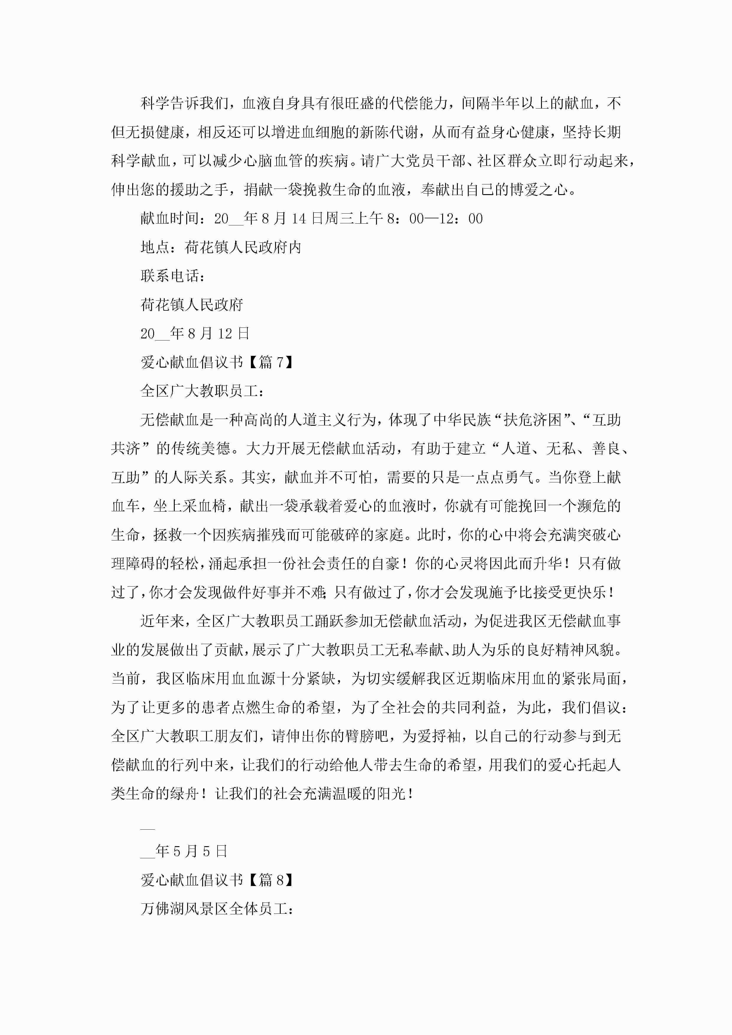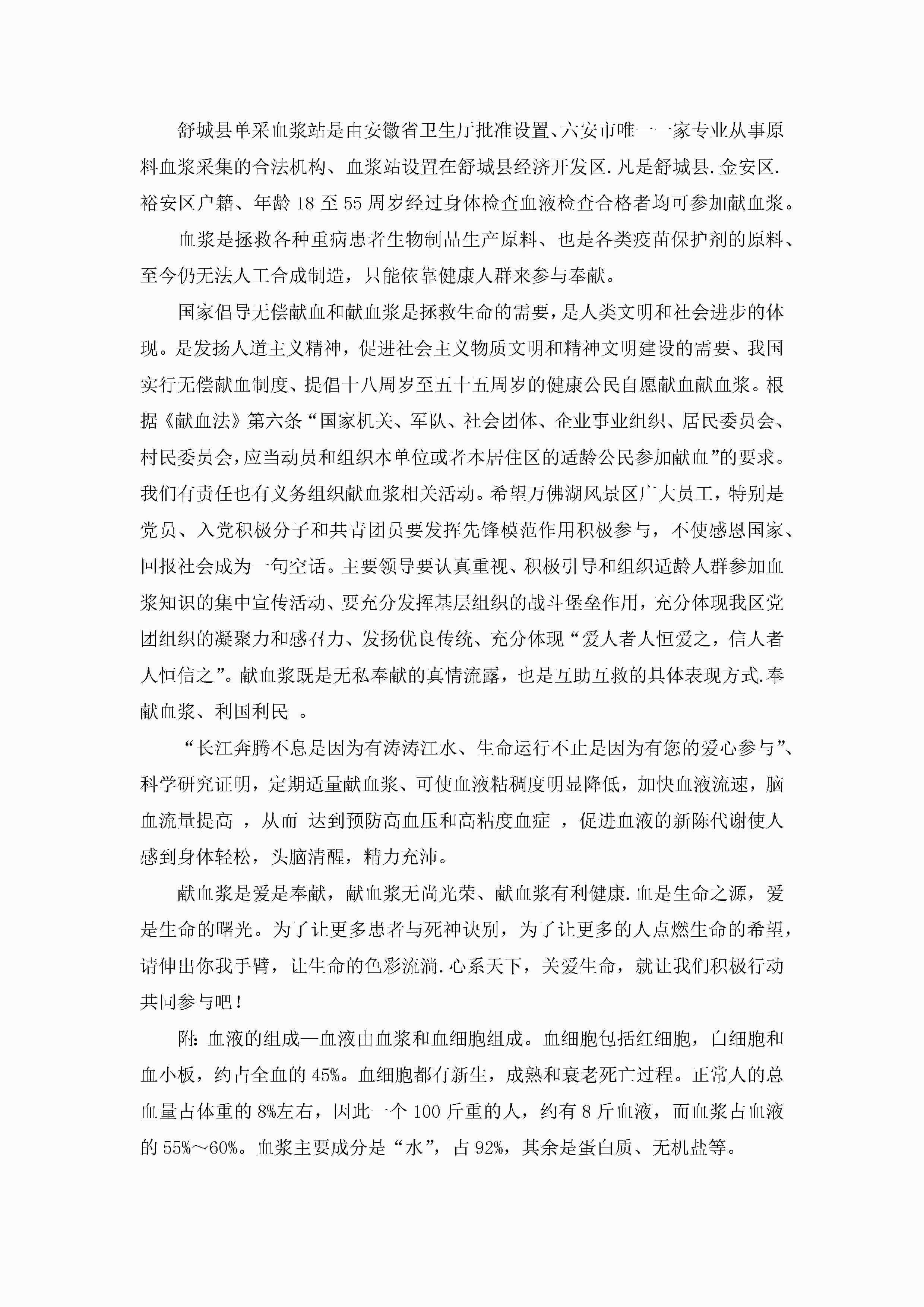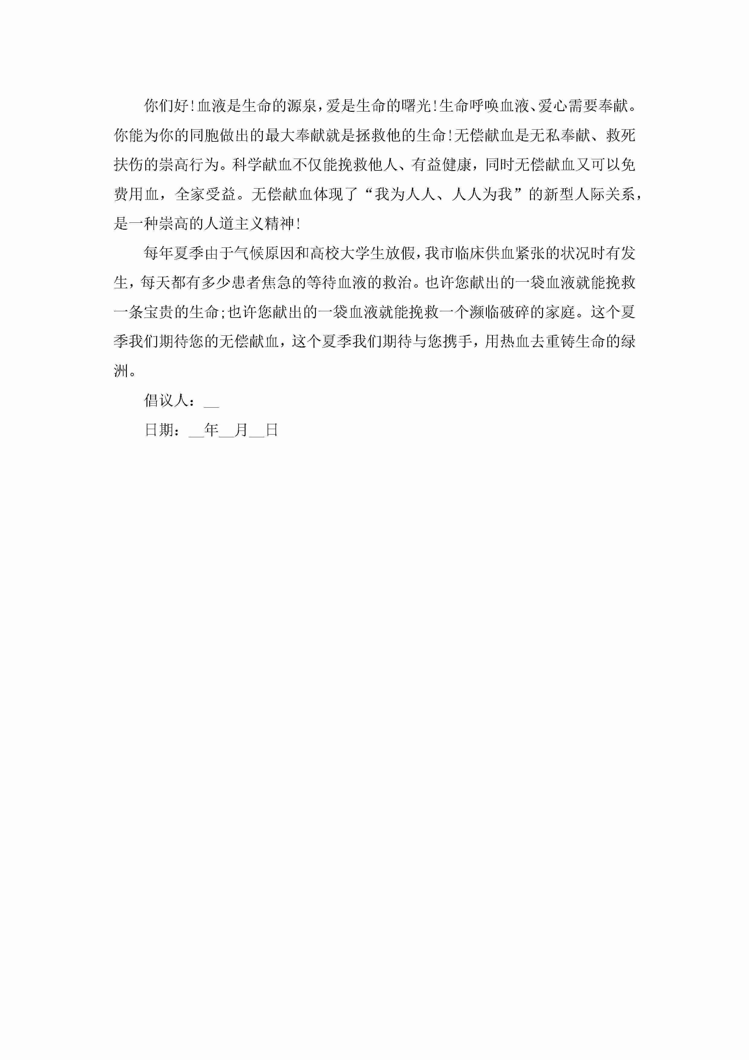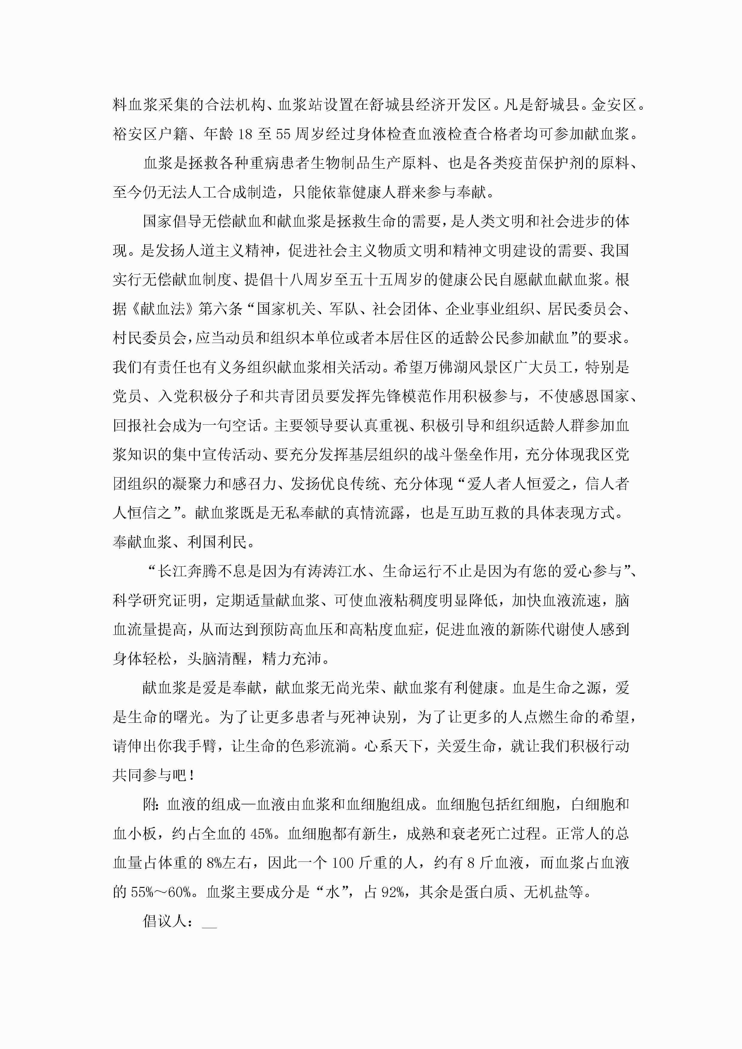 爱心献血倡议书(实用10篇)jugei3月22日 16:25发布关注209 爱心献血倡议书(实用10篇)此内容为付费资源,请付费后查看¥10.9 单篇文档限时特惠¥15个人会员开通企业会员开通立即下载无需登陆!可直接快捷下载单个模板付费资源© 版权声明THE ENDWord模板# 实用文档# 信函模板# 倡议书# 爱心献血倡议书10篇 如有问题,可点击最底部“联系我们”联系客服 分享QQ空间微博QQ好友海报分享复制链接收藏