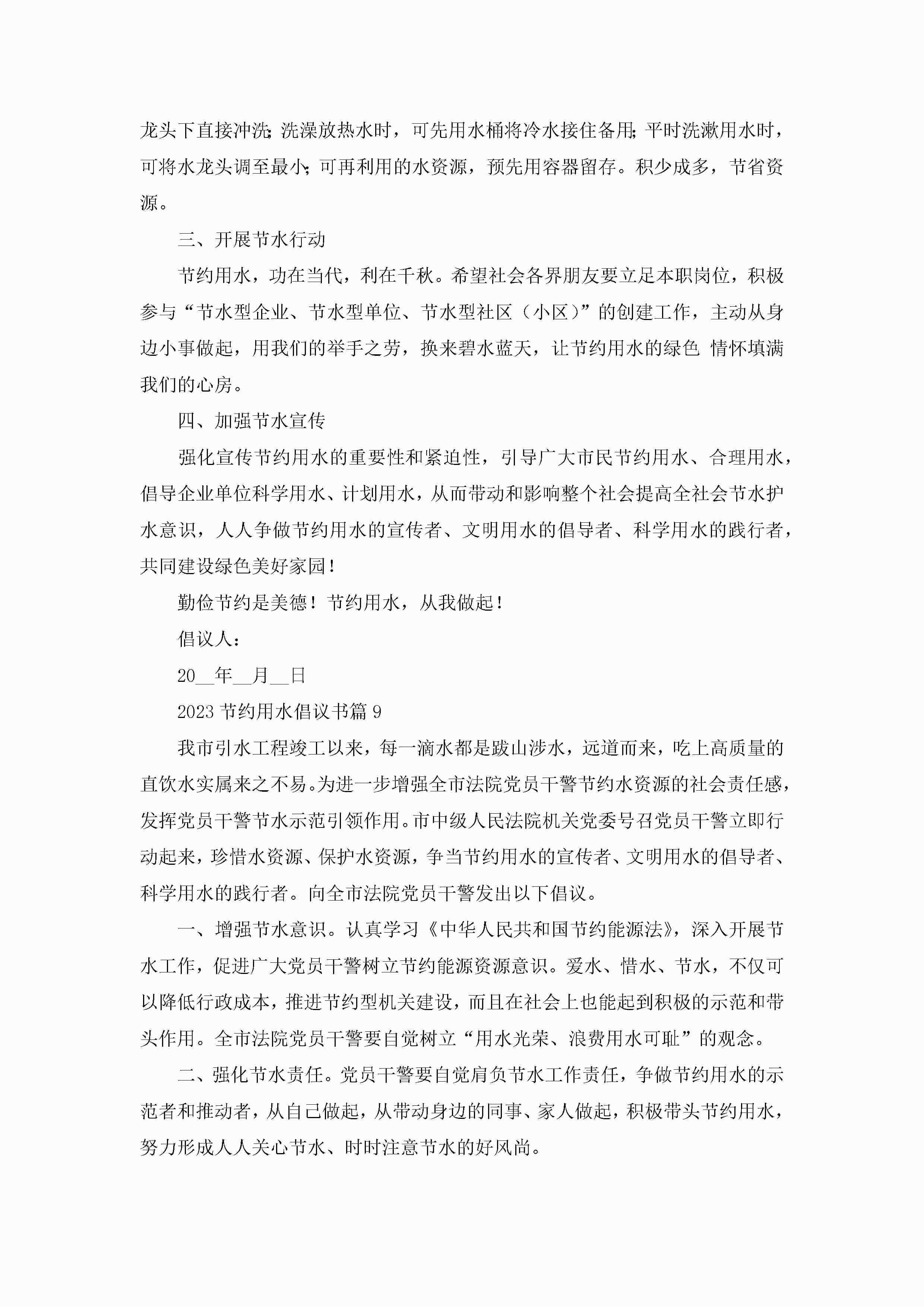 2023节约用水倡议书十篇模板jugei3月22日 16:25发布关注198 2023节约用水倡议书十篇模板此内容为付费资源,请付费后查看¥10.9 单篇文档限时特惠¥15个人会员开通企业会员开通立即下载无需登陆!可直接快捷下载单个模板付费资源© 版权声明THE ENDWord模板# 实用文档# 信函模板# 倡议书# 2023节约用水倡议书十篇 如有问题,可点击最底部“联系我们”联系客服 分享QQ空间微博QQ好友海报分享复制链接收藏