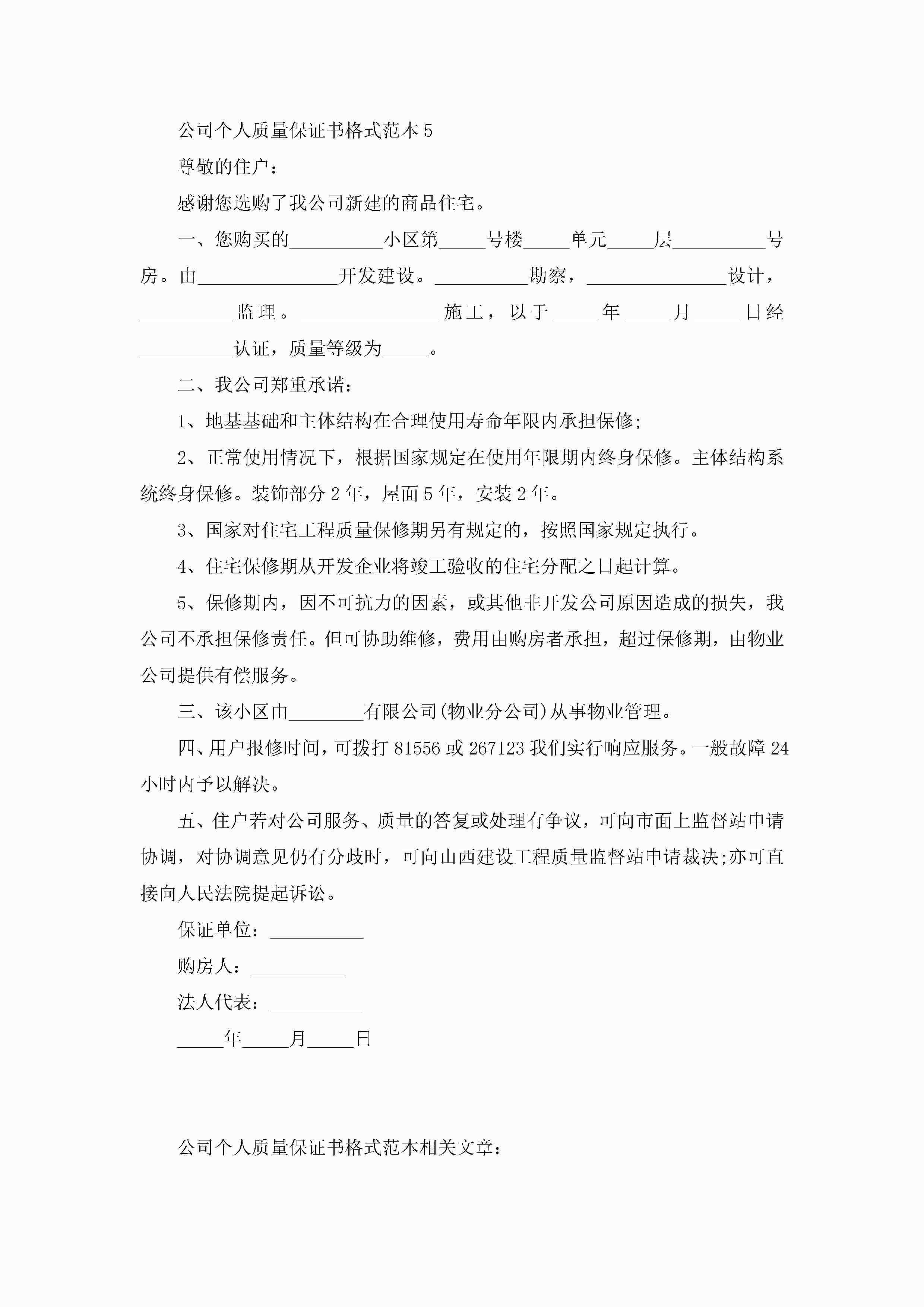 公司个人质量保证书格式范本5篇jugei3月22日 16:25发布关注204 公司个人质量保证书格式范本5篇此内容为付费资源,请付费后查看¥10.9 单篇文档限时特惠¥15个人会员开通企业会员开通立即下载无需登陆!可直接快捷下载单个模板付费资源© 版权声明THE ENDWord模板# 实用文档# 实用模板# 信函模板# 保证书 如有问题,可点击最底部“联系我们”联系客服 分享QQ空间微博QQ好友海报分享复制链接收藏