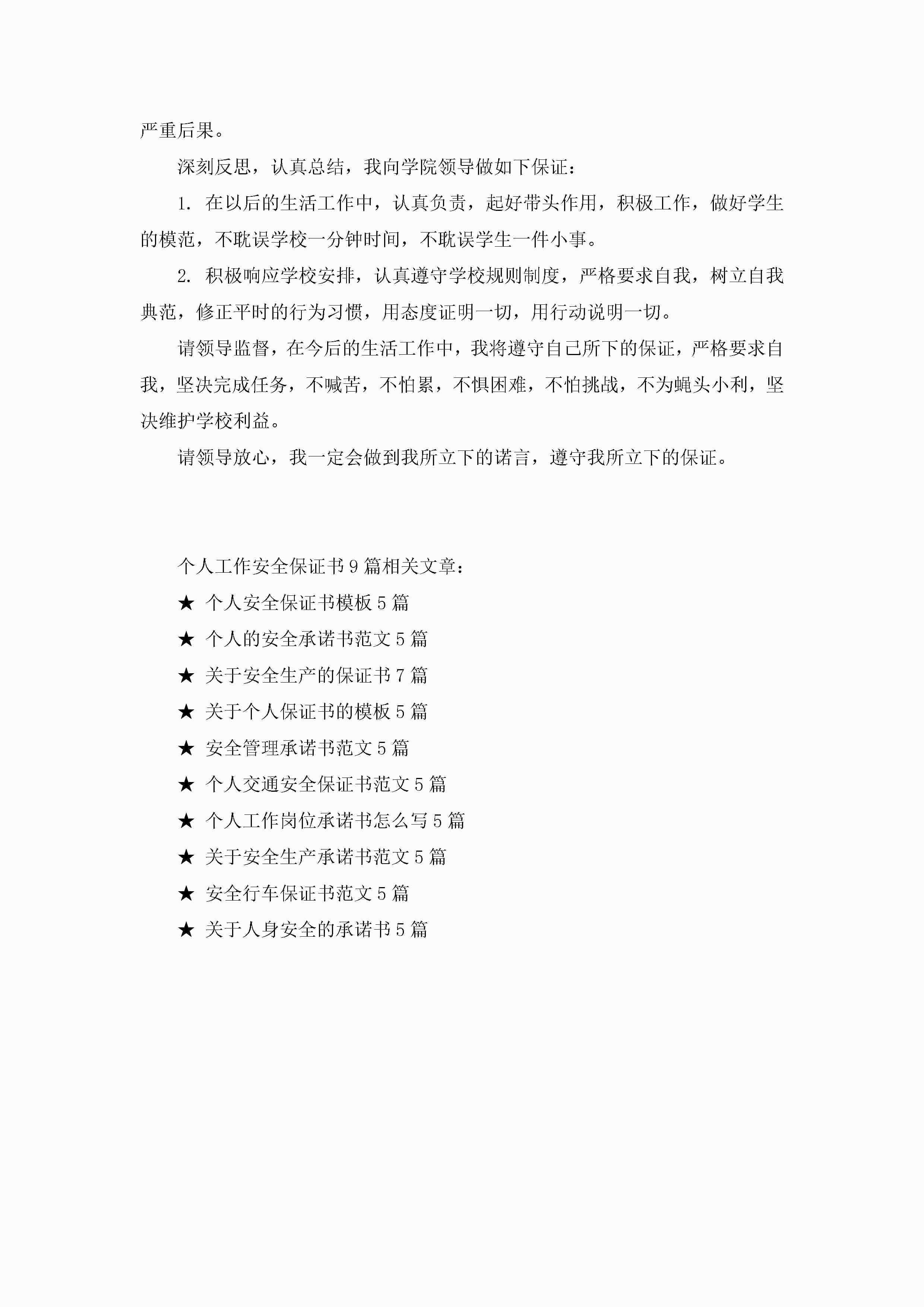 最新个人工作安全保证书9篇jugei3月22日 16:25发布关注288 最新个人工作安全保证书9篇此内容为付费资源,请付费后查看¥10.9 单篇文档限时特惠¥15个人会员开通企业会员开通立即下载无需登陆!可直接快捷下载单个模板付费资源© 版权声明THE ENDWord模板# 实用文档# 实用模板# 信函模板# 保证书 如有问题,可点击最底部“联系我们”联系客服 分享QQ空间微博QQ好友海报分享复制链接收藏