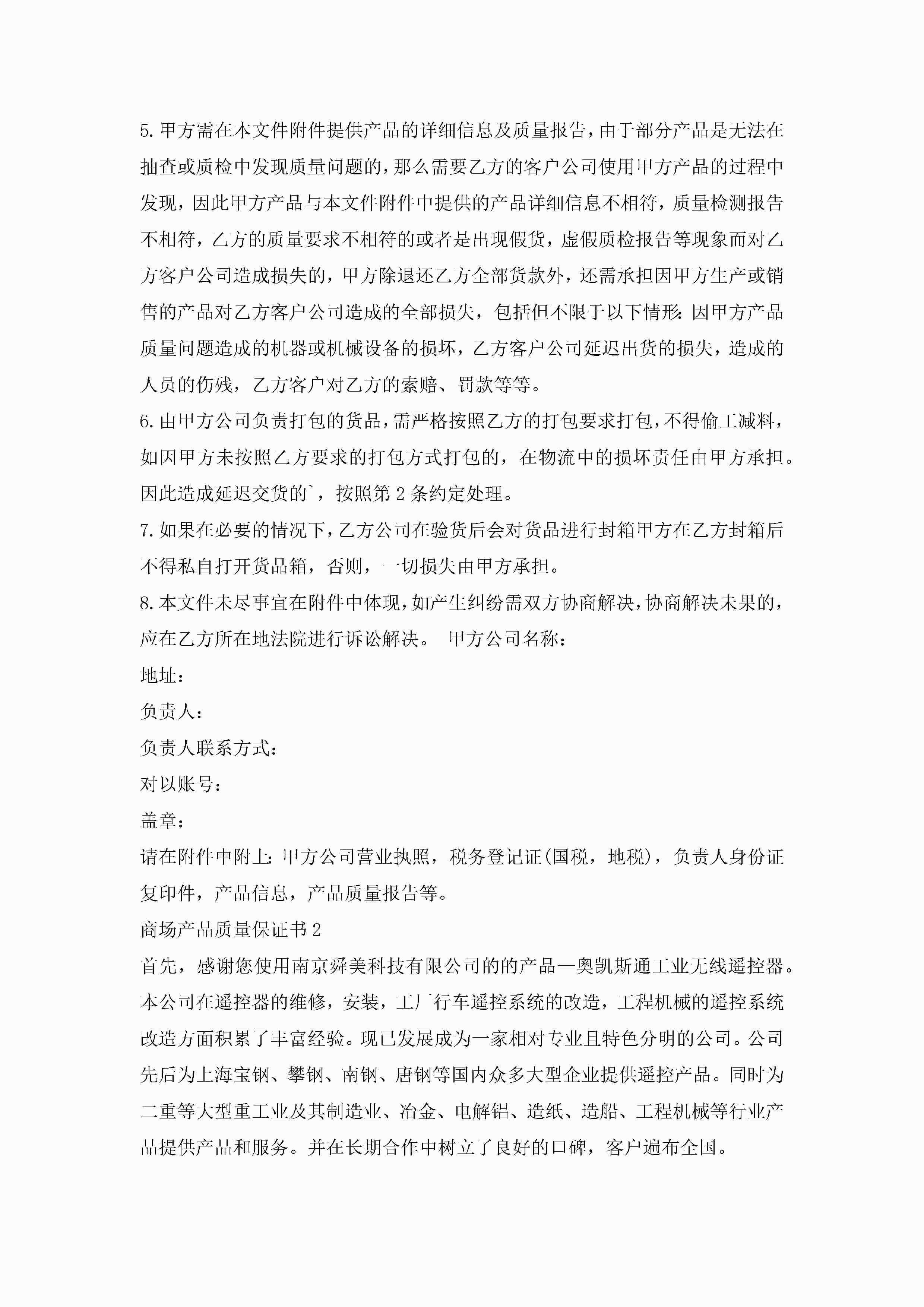 商场产品质量保证书6篇jugei3月22日 16:25发布关注322 商场产品质量保证书6篇此内容为付费资源,请付费后查看¥10.9 单篇文档限时特惠¥15个人会员开通企业会员开通立即下载无需登陆!可直接快捷下载单个模板付费资源© 版权声明THE ENDWord模板# 实用文档# 实用模板# 信函模板# 保证书 如有问题,可点击最底部“联系我们”联系客服 分享QQ空间微博QQ好友海报分享复制链接收藏