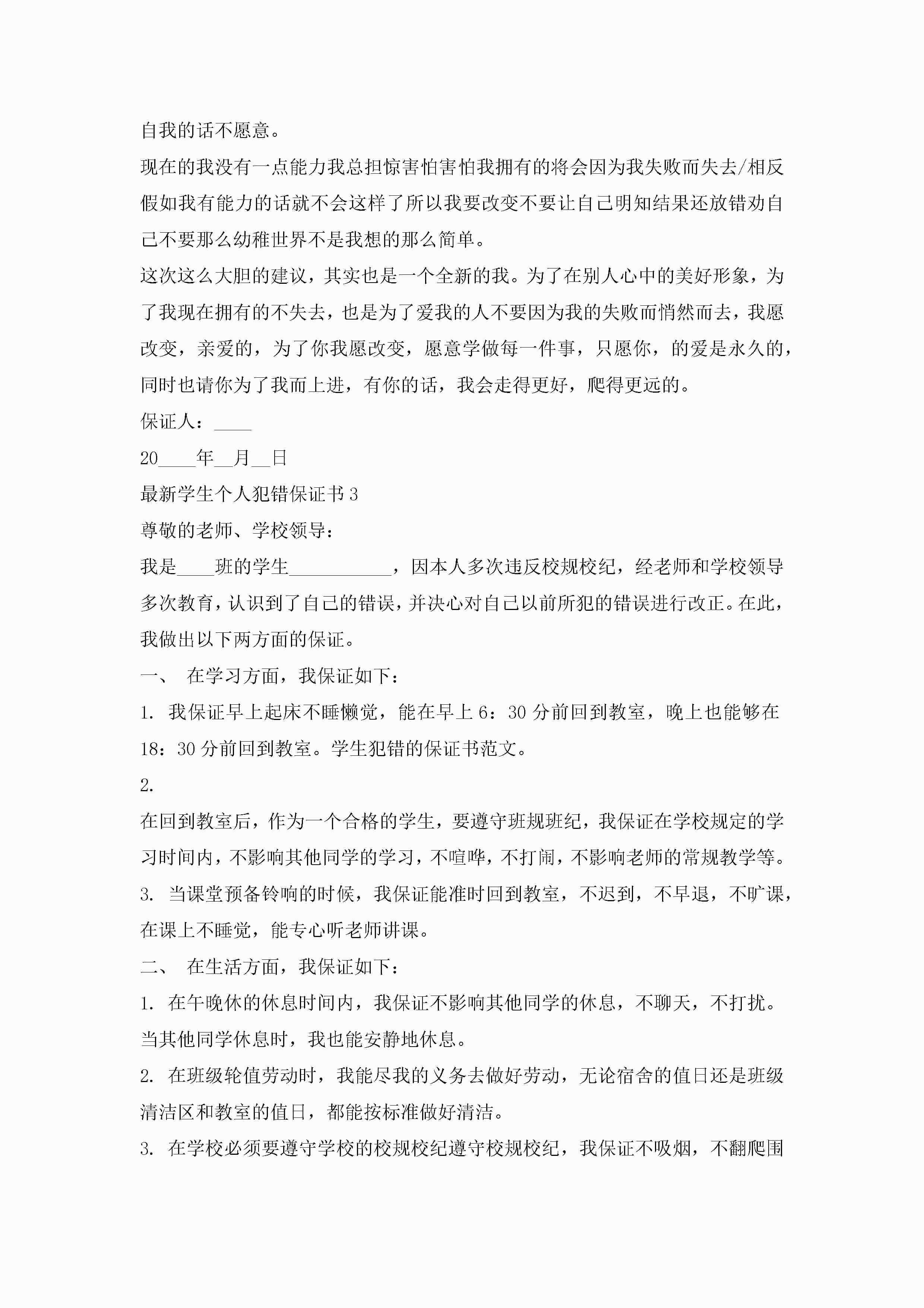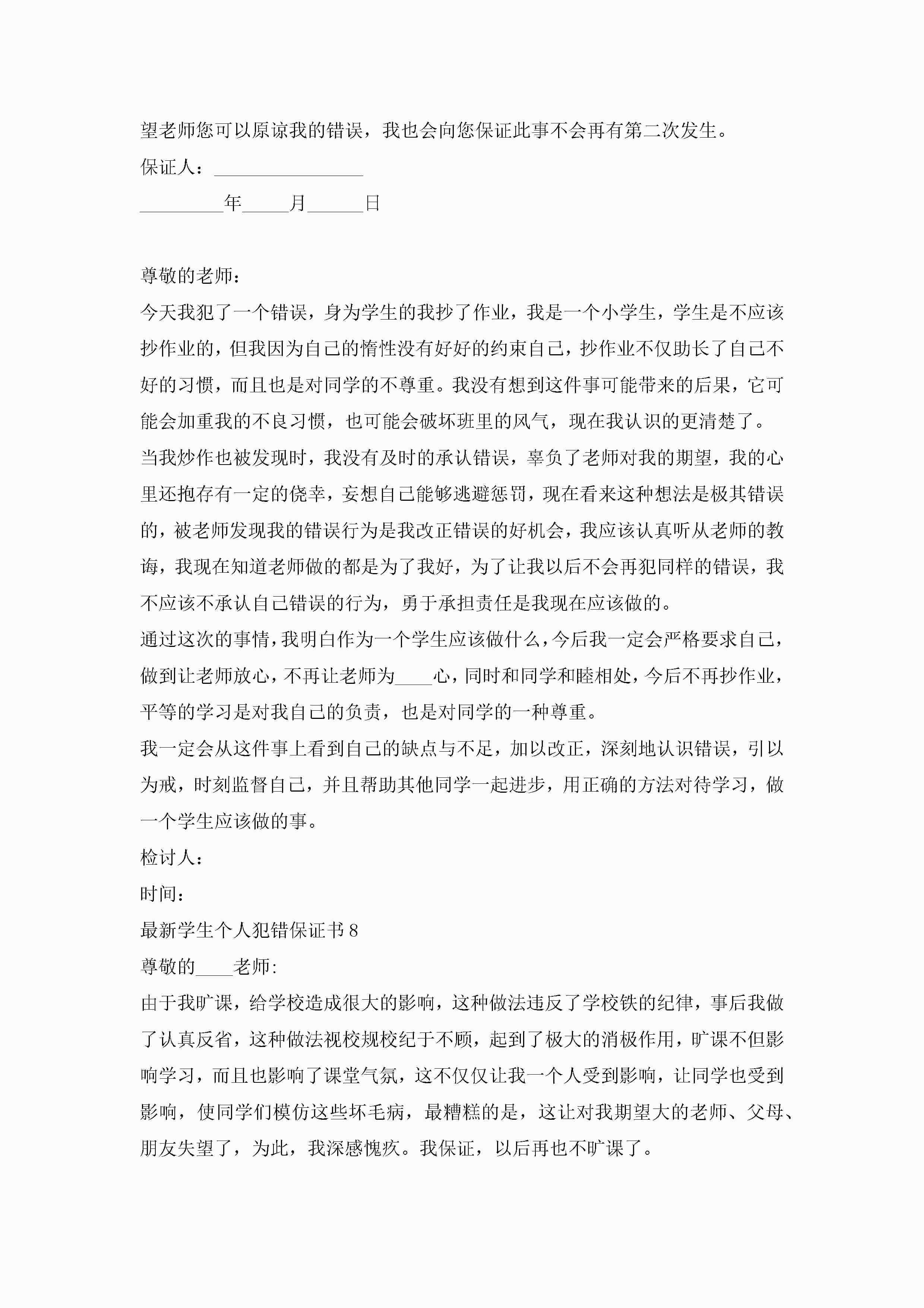 最新学生个人犯错保证书8篇jugei3月22日 16:25发布关注199 最新学生个人犯错保证书8篇此内容为付费资源,请付费后查看¥10.9 单篇文档限时特惠¥15个人会员开通企业会员开通立即下载无需登陆!可直接快捷下载单个模板付费资源© 版权声明THE ENDWord模板# 实用文档# 实用模板# 信函模板# 保证书 如有问题,可点击最底部“联系我们”联系客服 分享QQ空间微博QQ好友海报分享复制链接收藏