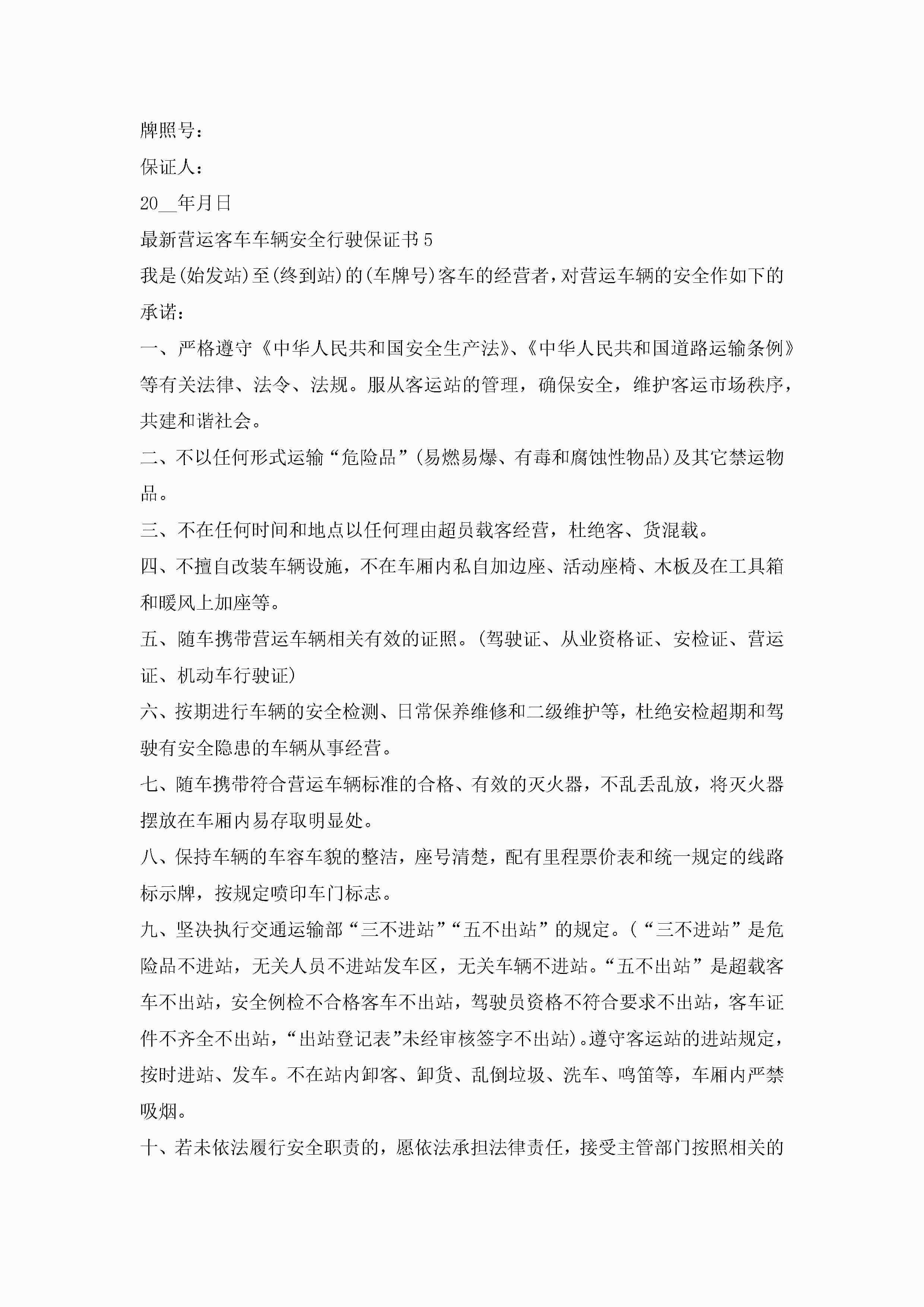 最新营运客车车辆安全行驶保证书范文5篇jugei3月22日 16:25发布关注195 最新营运客车车辆安全行驶保证书范文5篇此内容为付费资源,请付费后查看¥10.9 单篇文档限时特惠¥15个人会员开通企业会员开通立即下载无需登陆!可直接快捷下载单个模板付费资源© 版权声明THE ENDWord模板# 实用文档# 实用模板# 信函模板# 保证书 如有问题,可点击最底部“联系我们”联系客服 分享QQ空间微博QQ好友海报分享复制链接收藏