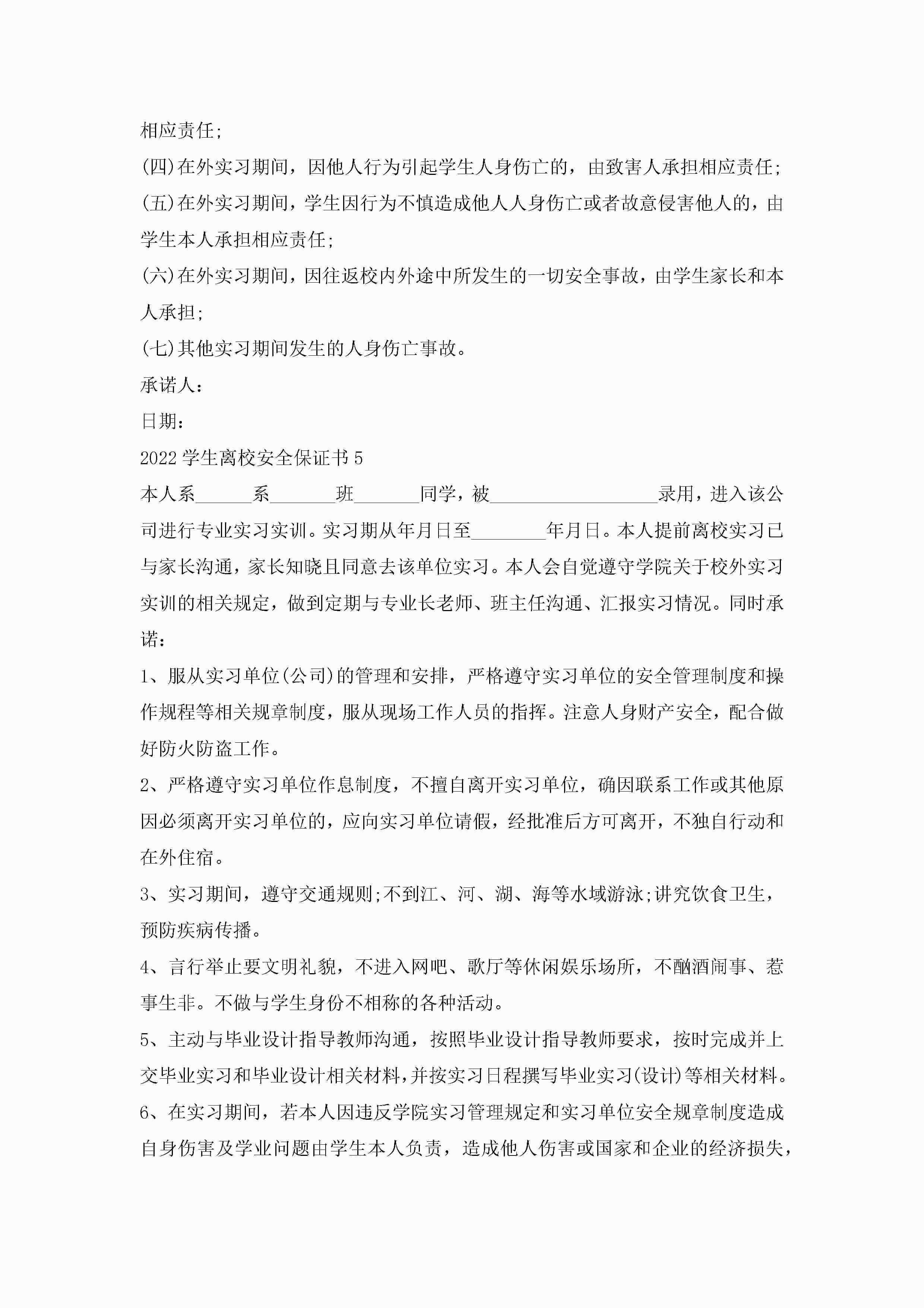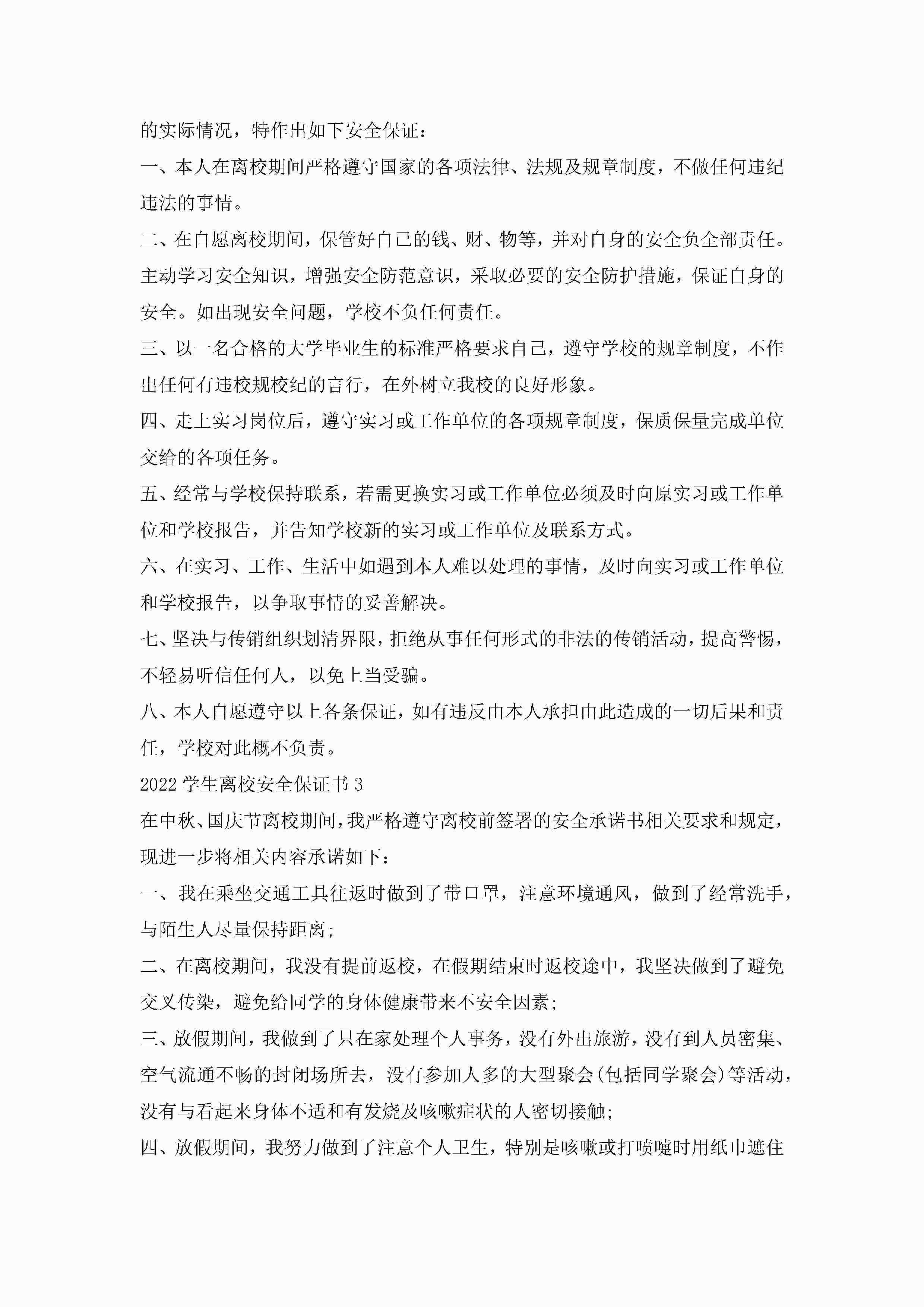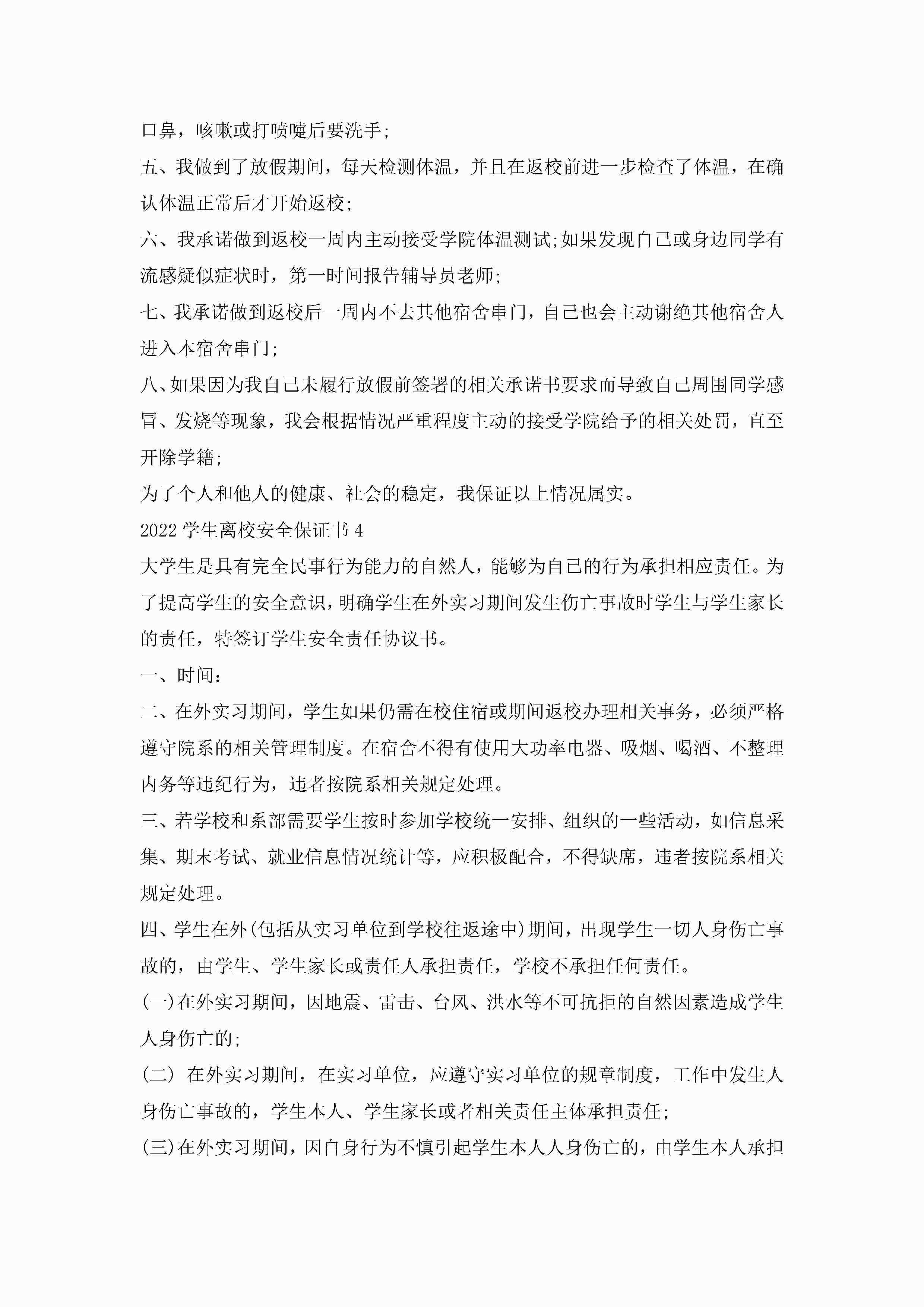 2022学生离校安全保证书5篇jugei3月22日 16:25发布关注261 2022学生离校安全保证书5篇此内容为付费资源,请付费后查看¥10.9 单篇文档限时特惠¥15个人会员开通企业会员开通立即下载无需登陆!可直接快捷下载单个模板付费资源© 版权声明THE ENDWord模板# 实用文档# 实用模板# 信函模板# 保证书 如有问题,可点击最底部“联系我们”联系客服 分享QQ空间微博QQ好友海报分享复制链接收藏