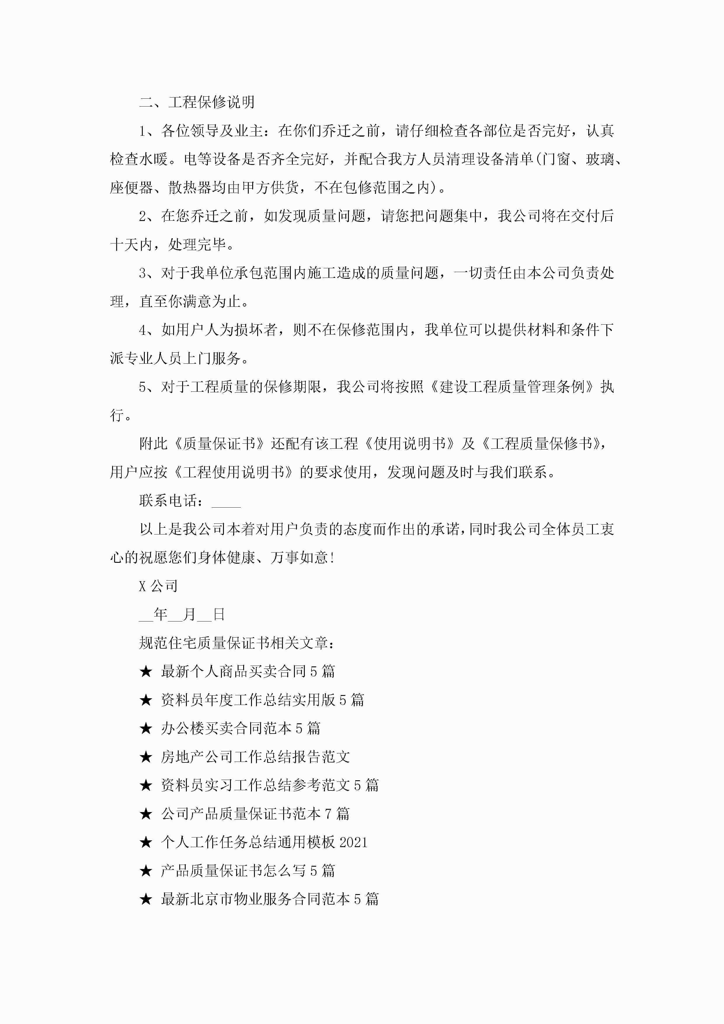 规范住宅质量保证书5篇jugei3月22日 16:25发布关注271 规范住宅质量保证书5篇此内容为付费资源,请付费后查看¥10.9 单篇文档限时特惠¥15个人会员开通企业会员开通立即下载无需登陆!可直接快捷下载单个模板付费资源© 版权声明THE ENDWord模板# 实用文档# 实用模板# 信函模板# 保证书 如有问题,可点击最底部“联系我们”联系客服 分享QQ空间微博QQ好友海报分享复制链接收藏