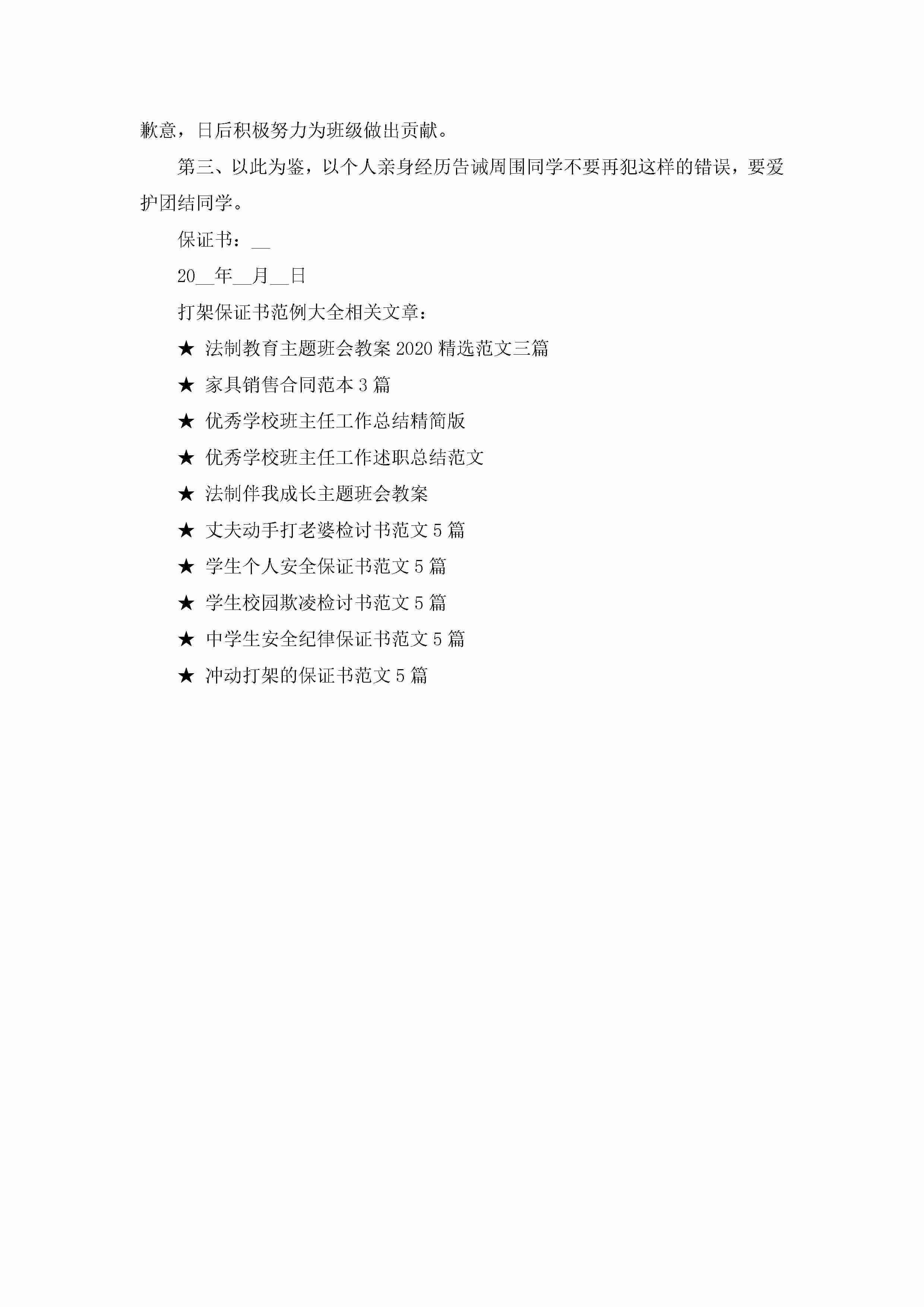 打架保证书范例大全5篇jugei3月22日 16:25发布关注319 打架保证书范例大全5篇此内容为付费资源,请付费后查看¥10.9 单篇文档限时特惠¥15个人会员开通企业会员开通立即下载无需登陆!可直接快捷下载单个模板付费资源© 版权声明THE ENDWord模板# 实用文档# 实用模板# 信函模板# 保证书 如有问题,可点击最底部“联系我们”联系客服 分享QQ空间微博QQ好友海报分享复制链接收藏