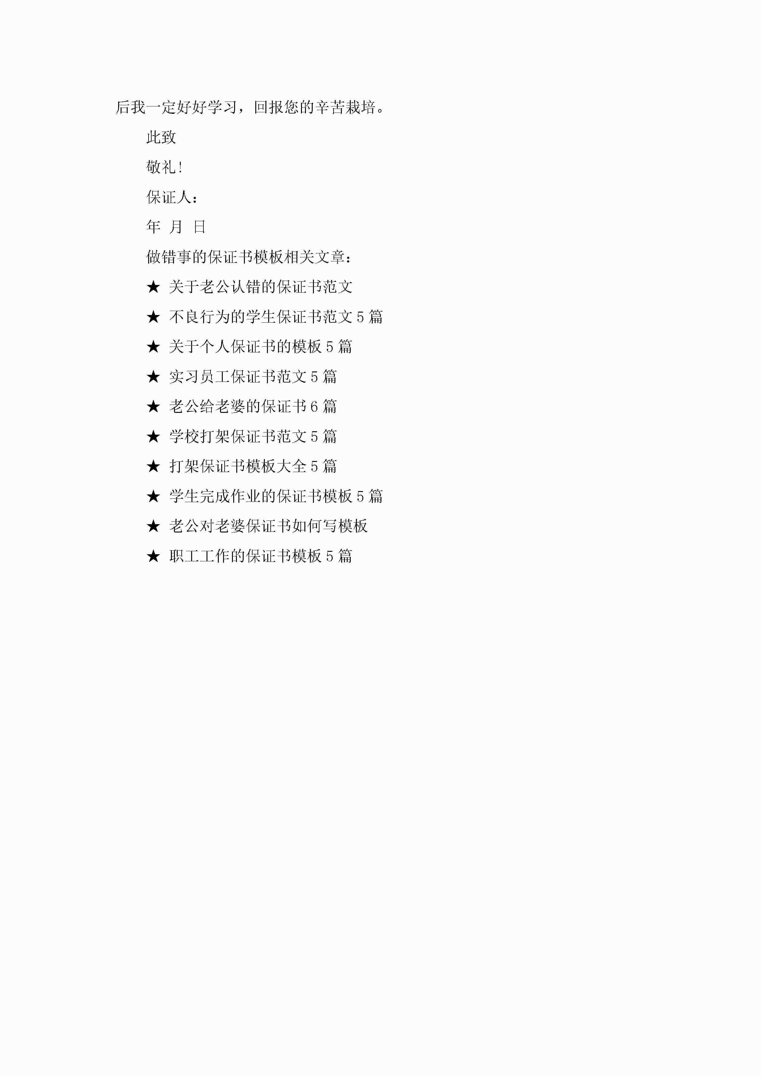 做错事的保证书模板5篇jugei3月22日 16:25发布关注219 做错事的保证书模板5篇此内容为付费资源,请付费后查看¥10.9 单篇文档限时特惠¥15个人会员开通企业会员开通立即下载无需登陆!可直接快捷下载单个模板付费资源© 版权声明THE ENDWord模板# 实用文档# 实用模板# 信函模板# 保证书 如有问题,可点击最底部“联系我们”联系客服 分享QQ空间微博QQ好友海报分享复制链接收藏