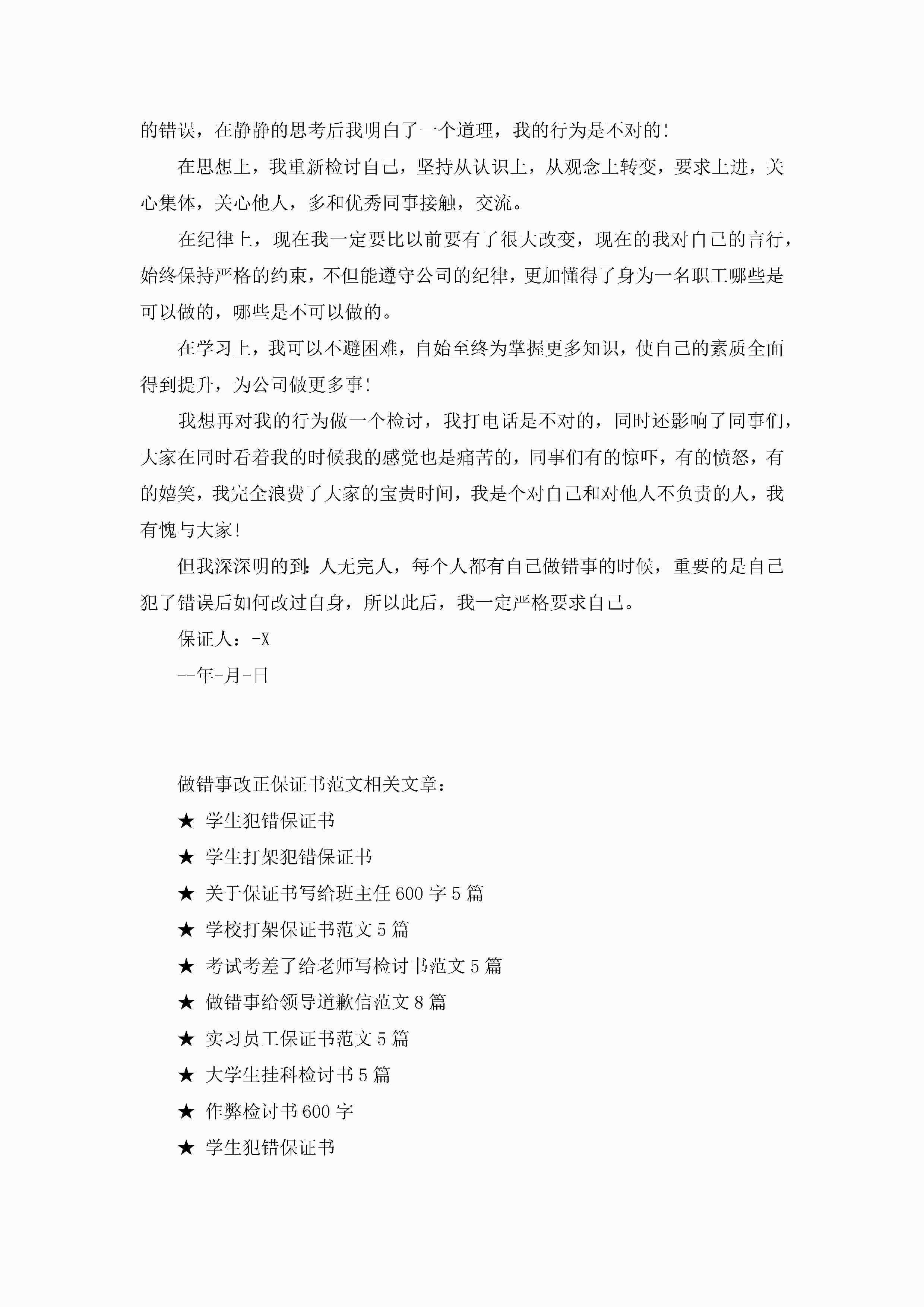 做错事改正保证书范文8篇jugei3月22日 16:25发布关注286 做错事改正保证书范文8篇此内容为付费资源,请付费后查看¥10.9 单篇文档限时特惠¥15个人会员开通企业会员开通立即下载无需登陆!可直接快捷下载单个模板付费资源© 版权声明THE ENDWord模板# 实用文档# 实用模板# 信函模板# 保证书 如有问题,可点击最底部“联系我们”联系客服 分享QQ空间微博QQ好友海报分享复制链接收藏