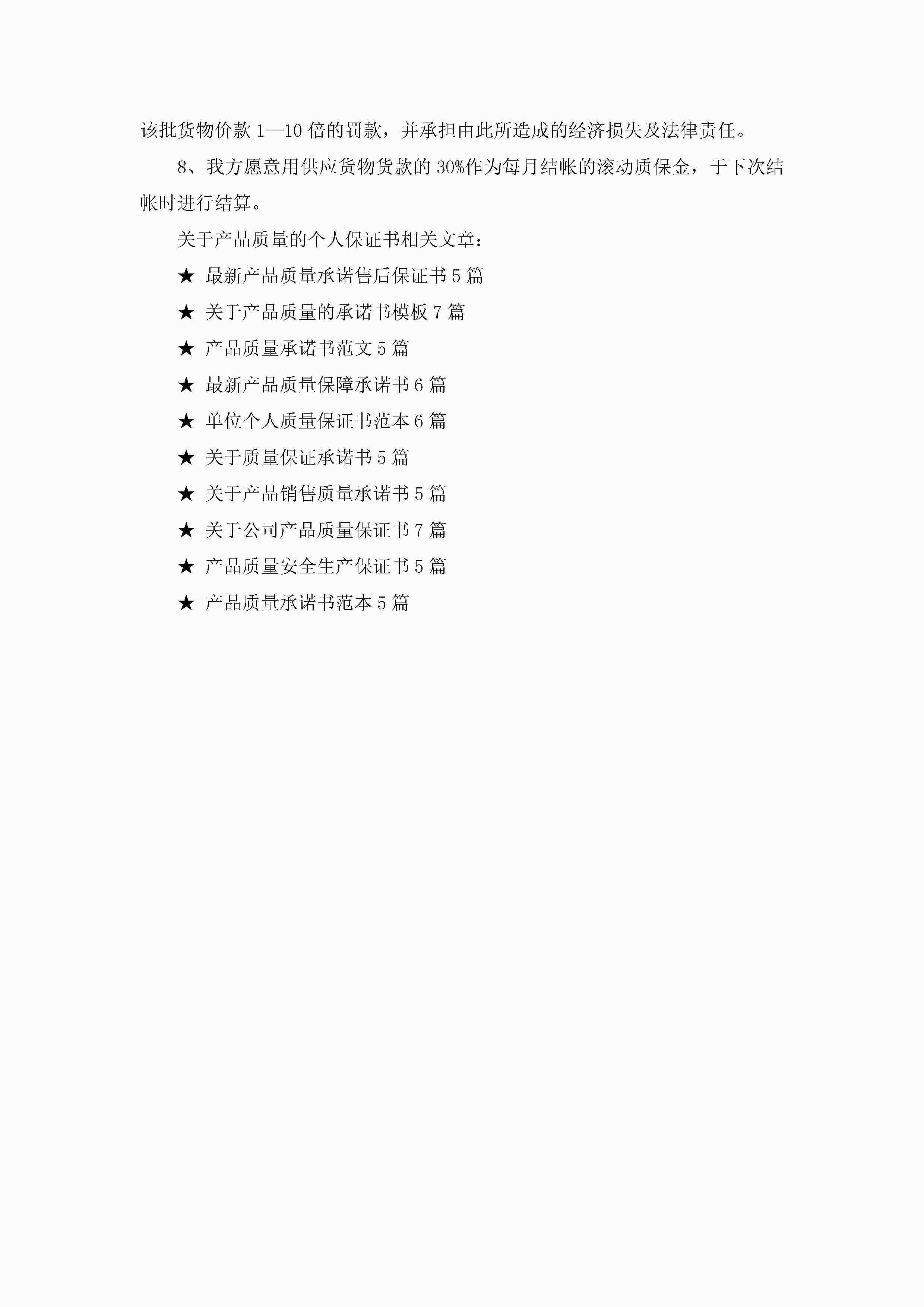 关于产品质量的个人保证书5篇jugei3月22日 16:25发布关注226 关于产品质量的个人保证书5篇此内容为付费资源,请付费后查看¥10.9 单篇文档限时特惠¥15个人会员开通企业会员开通立即下载无需登陆!可直接快捷下载单个模板付费资源© 版权声明THE ENDWord模板# 实用文档# 信函模板# 保证书# 关于产品质量的个人保证书 如有问题,可点击最底部“联系我们”联系客服 分享QQ空间微博QQ好友海报分享复制链接收藏