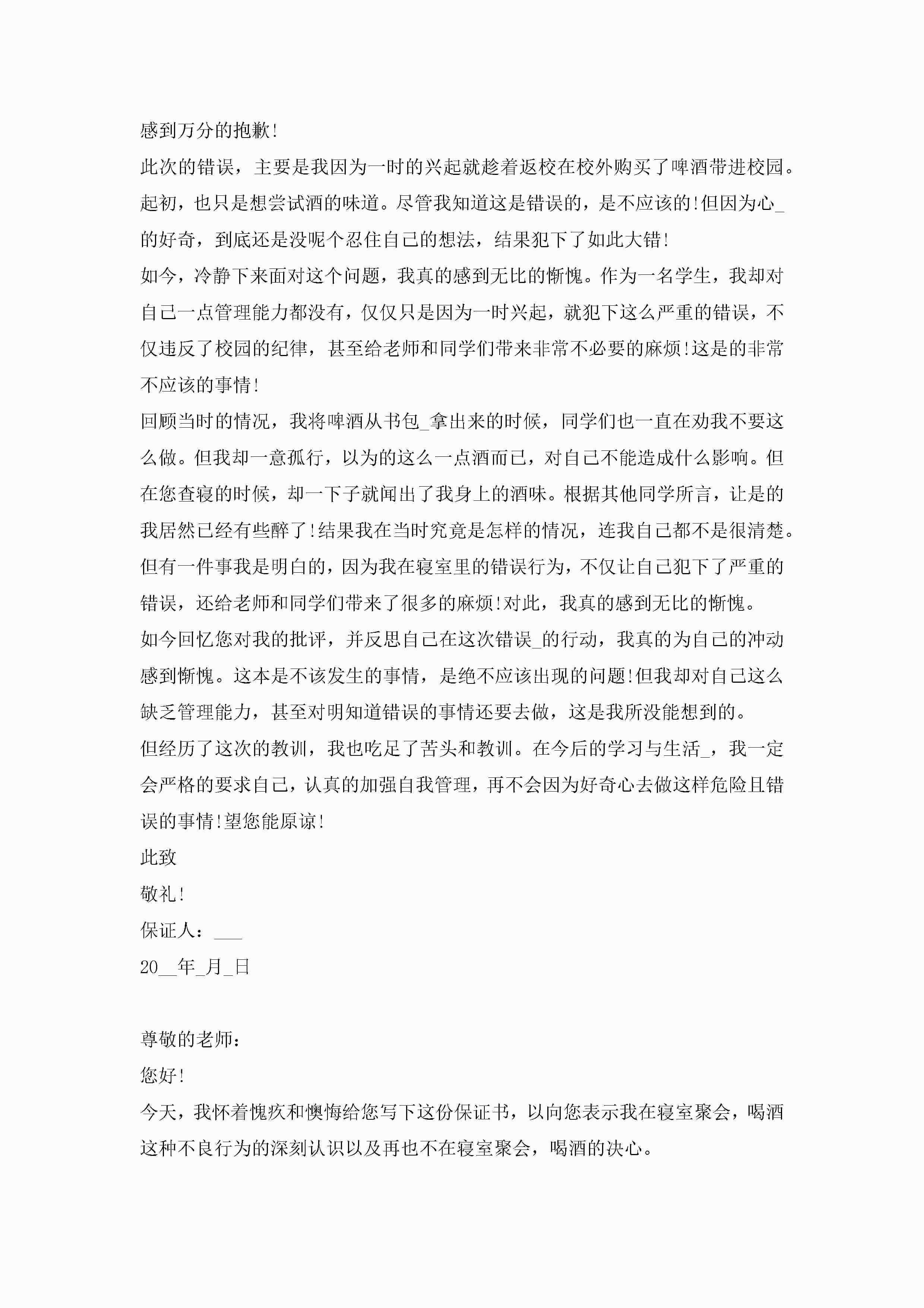 大学生喝酒保证书范文5篇jugei3月22日 16:25发布关注228 大学生喝酒保证书范文5篇此内容为付费资源,请付费后查看¥10.9 单篇文档限时特惠¥15个人会员开通企业会员开通立即下载无需登陆!可直接快捷下载单个模板付费资源© 版权声明THE ENDWord模板# 实用文档# 实用模板# 信函模板# 保证书 如有问题,可点击最底部“联系我们”联系客服 分享QQ空间微博QQ好友海报分享复制链接收藏