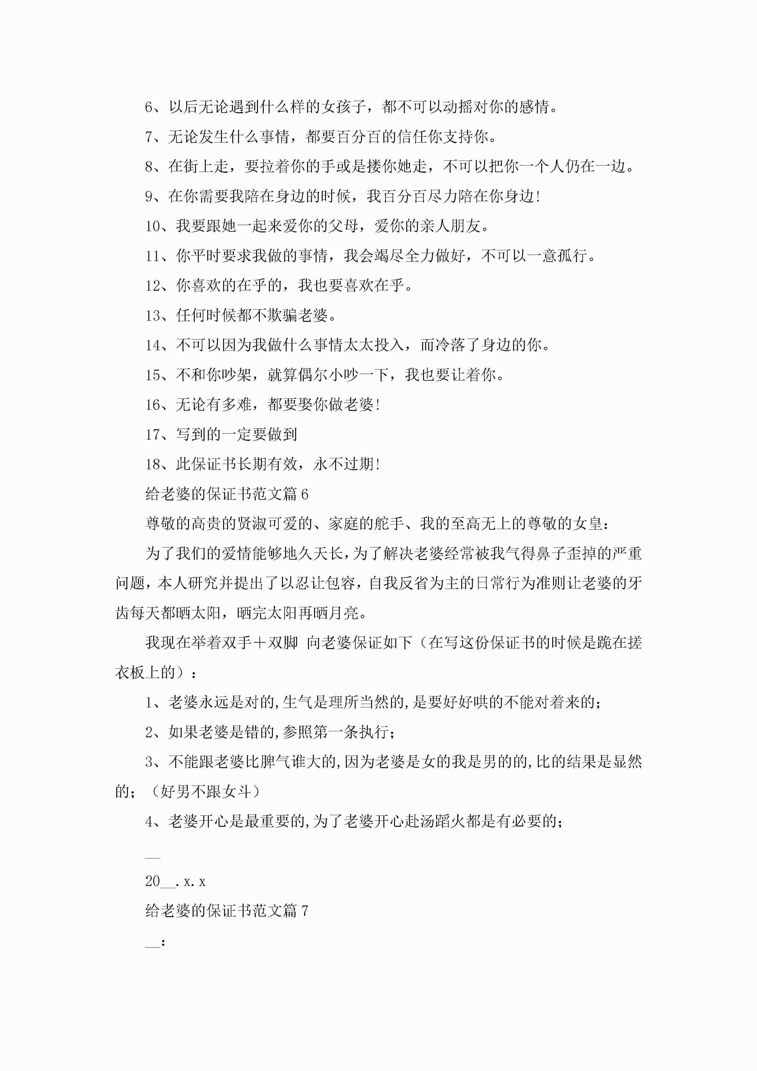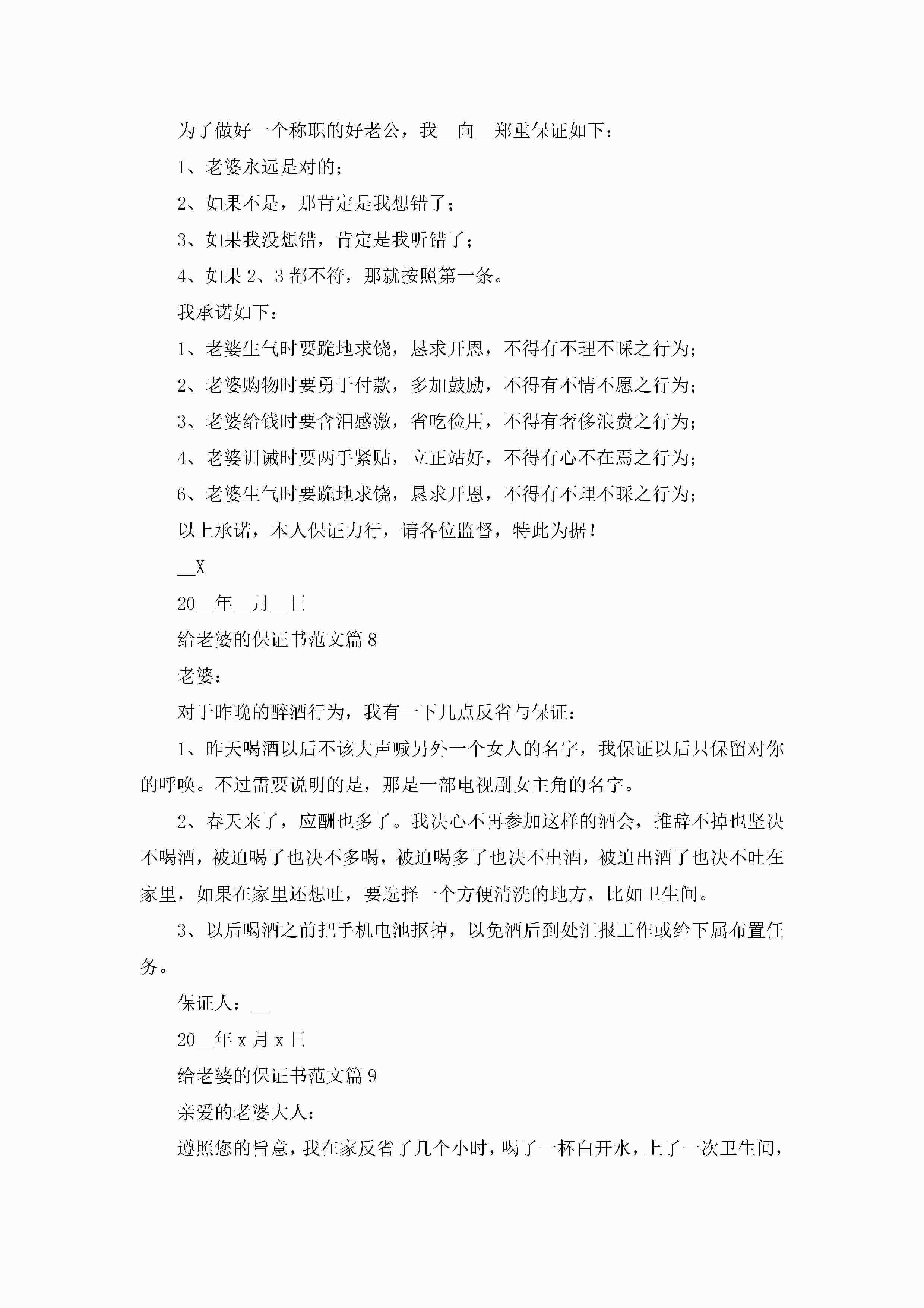 给老婆的保证书范文【精选10篇】jugei3月22日 16:25发布关注224 给老婆的保证书范文【精选10篇】此内容为付费资源,请付费后查看¥10.9 单篇文档限时特惠¥15个人会员开通企业会员开通立即下载无需登陆!可直接快捷下载单个模板付费资源© 版权声明THE ENDWord模板# 实用文档# 实用模板# 信函模板# 保证书 如有问题,可点击最底部“联系我们”联系客服 分享QQ空间微博QQ好友海报分享复制链接收藏