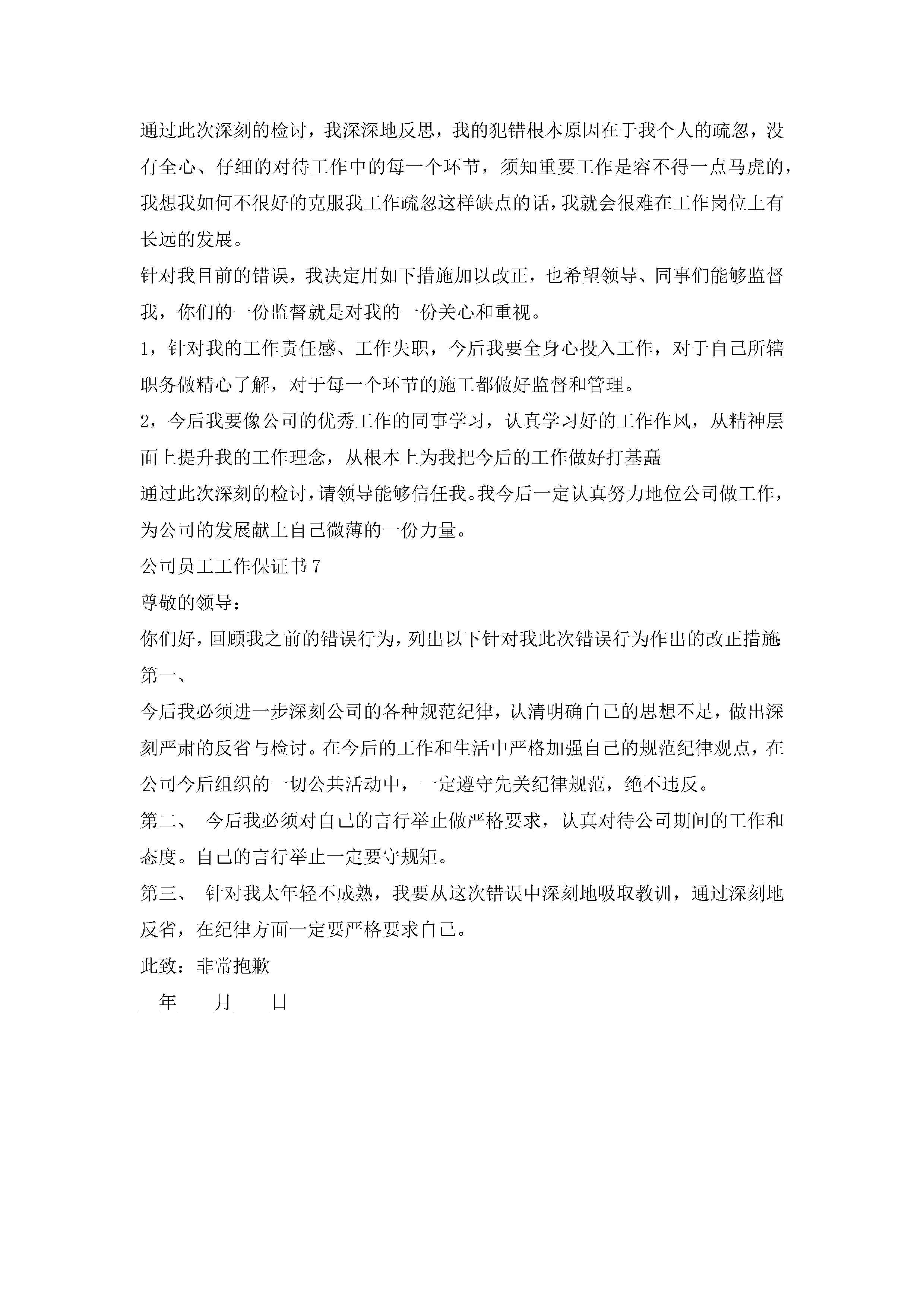 关于公司员工工作保证书7篇jugei3月22日 16:25发布关注223 关于公司员工工作保证书7篇此内容为付费资源,请付费后查看¥10.9 单篇文档限时特惠¥15个人会员开通企业会员开通立即下载无需登陆!可直接快捷下载单个模板付费资源© 版权声明THE ENDWord模板# 实用文档# 实用模板# 信函模板# 保证书 如有问题,可点击最底部“联系我们”联系客服 分享QQ空间微博QQ好友海报分享复制链接收藏