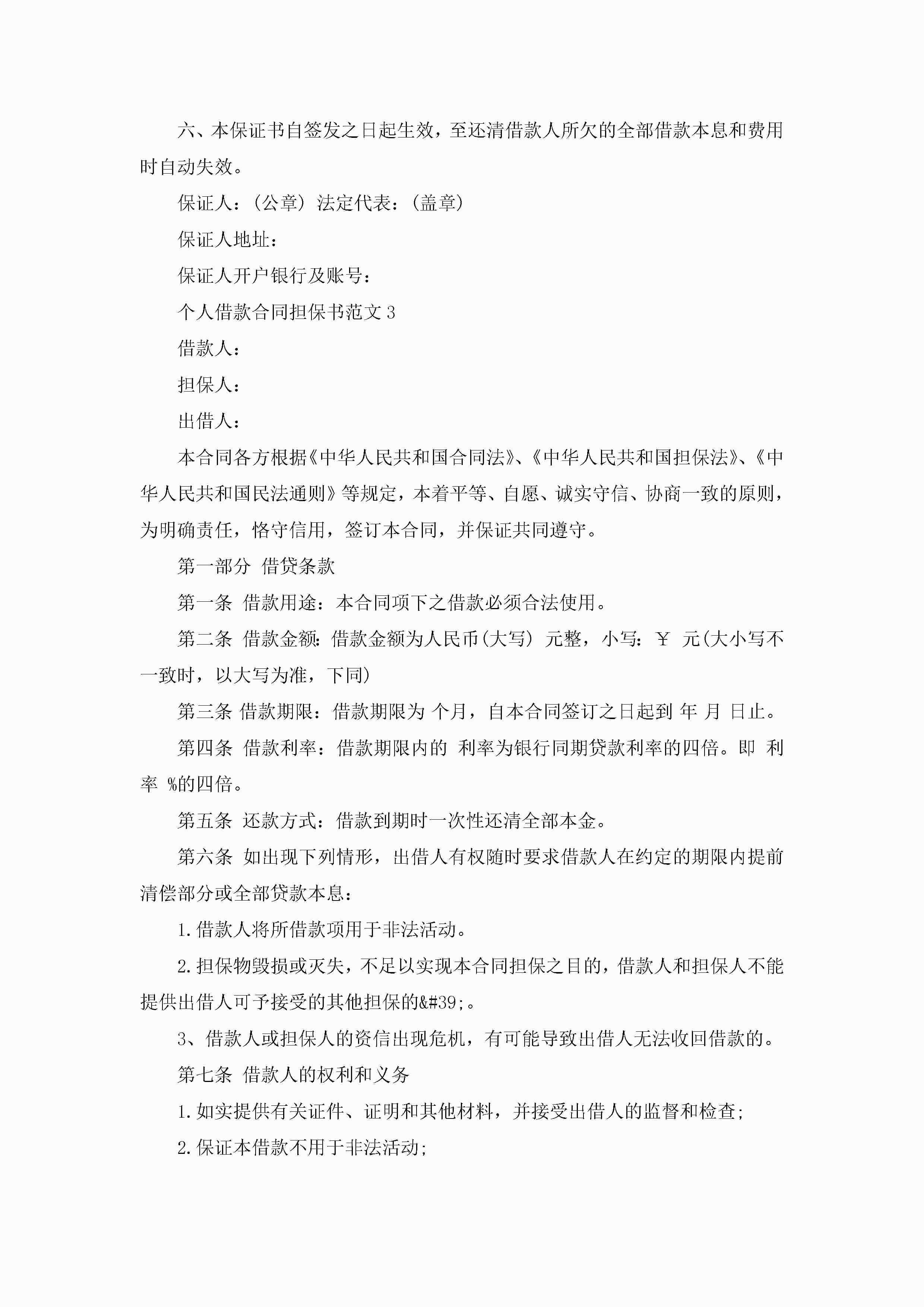 个人借款合同担保书范文5篇jugei3月22日 16:25发布关注238 个人借款合同担保书范文5篇此内容为付费资源,请付费后查看¥10.9 单篇文档限时特惠¥15个人会员开通企业会员开通立即下载无需登陆!可直接快捷下载单个模板付费资源© 版权声明THE ENDWord模板# 实用文档# 实用模板# 信函模板# 担保书 如有问题,可点击最底部“联系我们”联系客服 分享QQ空间微博QQ好友海报分享复制链接收藏
