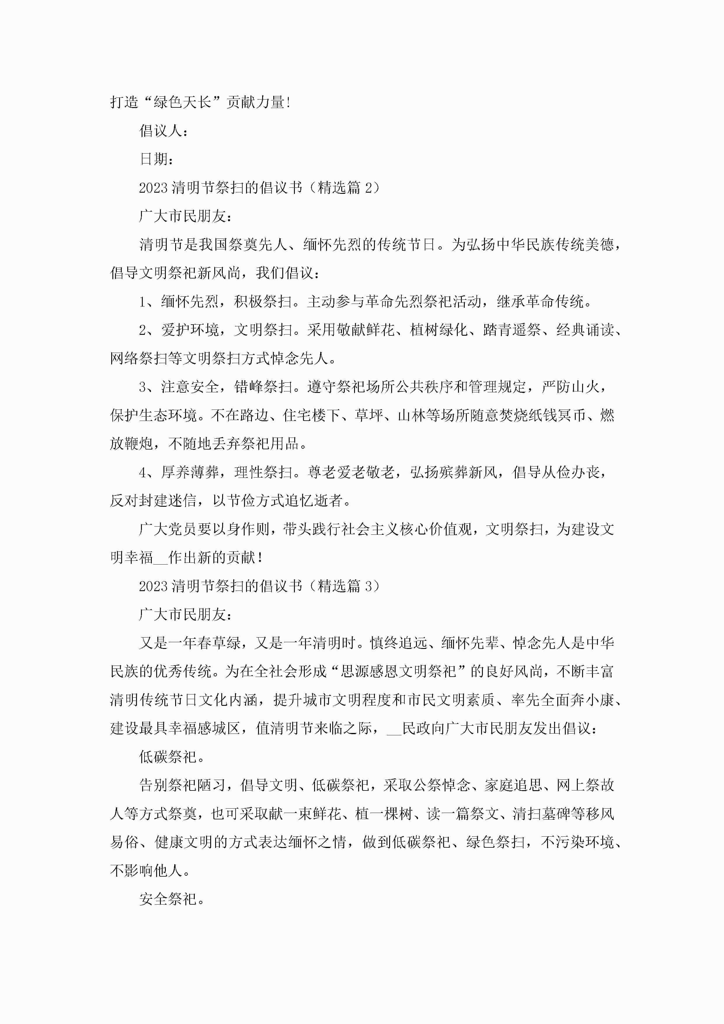 2023清明节祭扫的倡议书5篇jugei3月22日 16:25发布关注199 2023清明节祭扫的倡议书5篇此内容为付费资源,请付费后查看¥10.9 单篇文档限时特惠¥15个人会员开通企业会员开通立即下载无需登陆!可直接快捷下载单个模板付费资源© 版权声明THE ENDWord模板# 实用文档# 信函模板# 倡议书# 2023清明节祭扫的倡议书 如有问题,可点击最底部“联系我们”联系客服 分享QQ空间微博QQ好友海报分享复制链接收藏