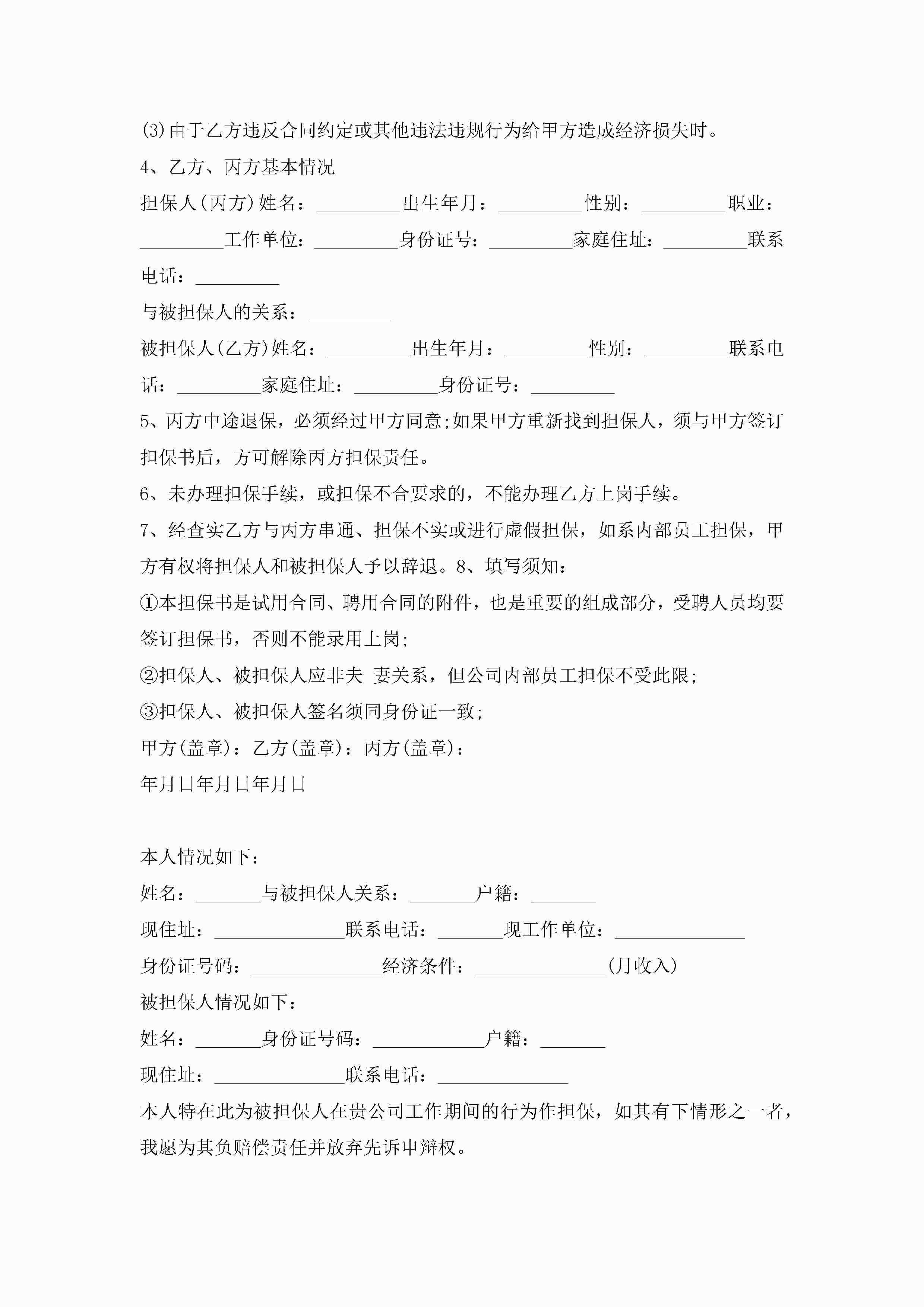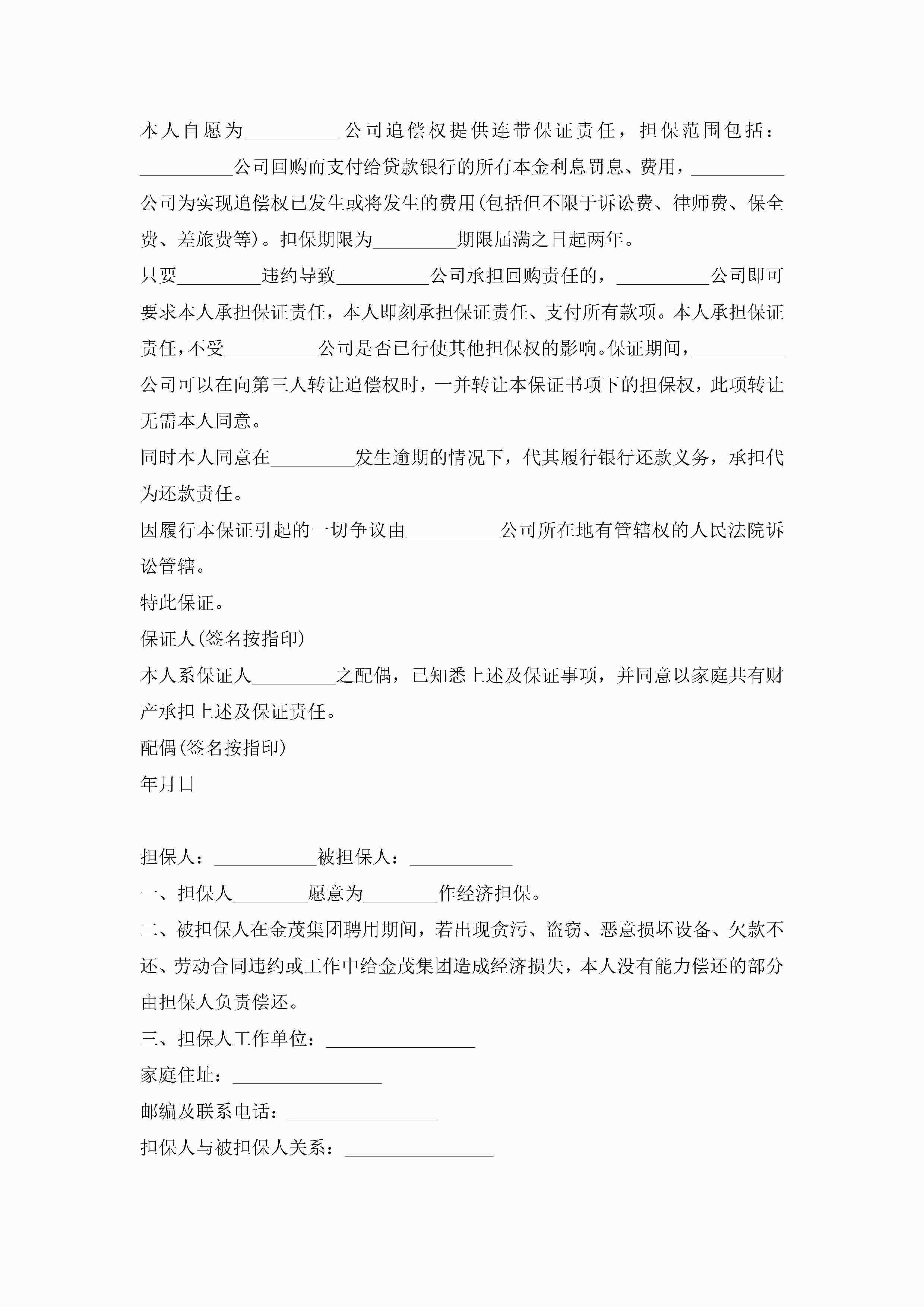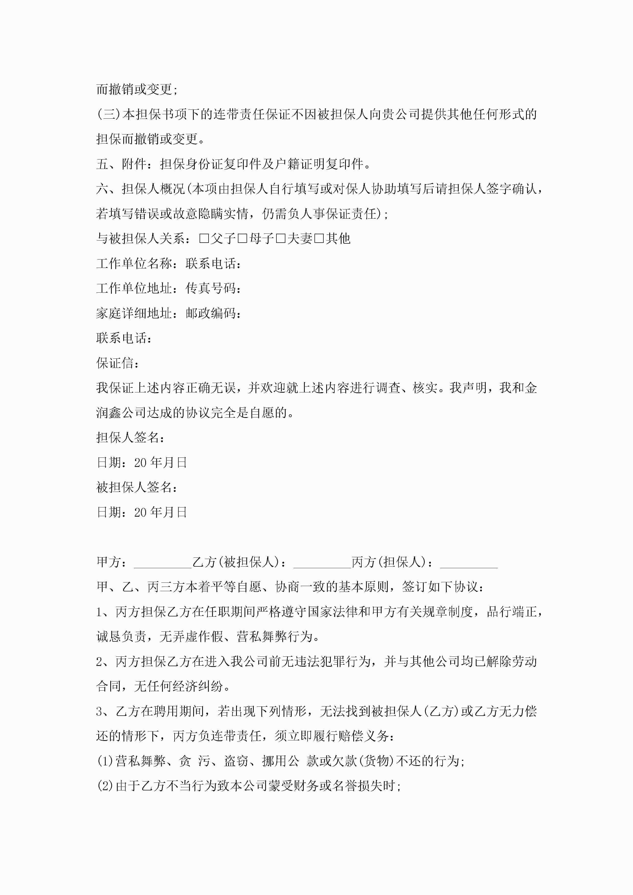 员工责任担保书范文5篇jugei3月22日 16:25发布关注236 员工责任担保书范文5篇此内容为付费资源,请付费后查看¥10.9 单篇文档限时特惠¥15个人会员开通企业会员开通立即下载无需登陆!可直接快捷下载单个模板付费资源© 版权声明THE ENDWord模板# 实用文档# 实用模板# 信函模板# 担保书 如有问题,可点击最底部“联系我们”联系客服 分享QQ空间微博QQ好友海报分享复制链接收藏