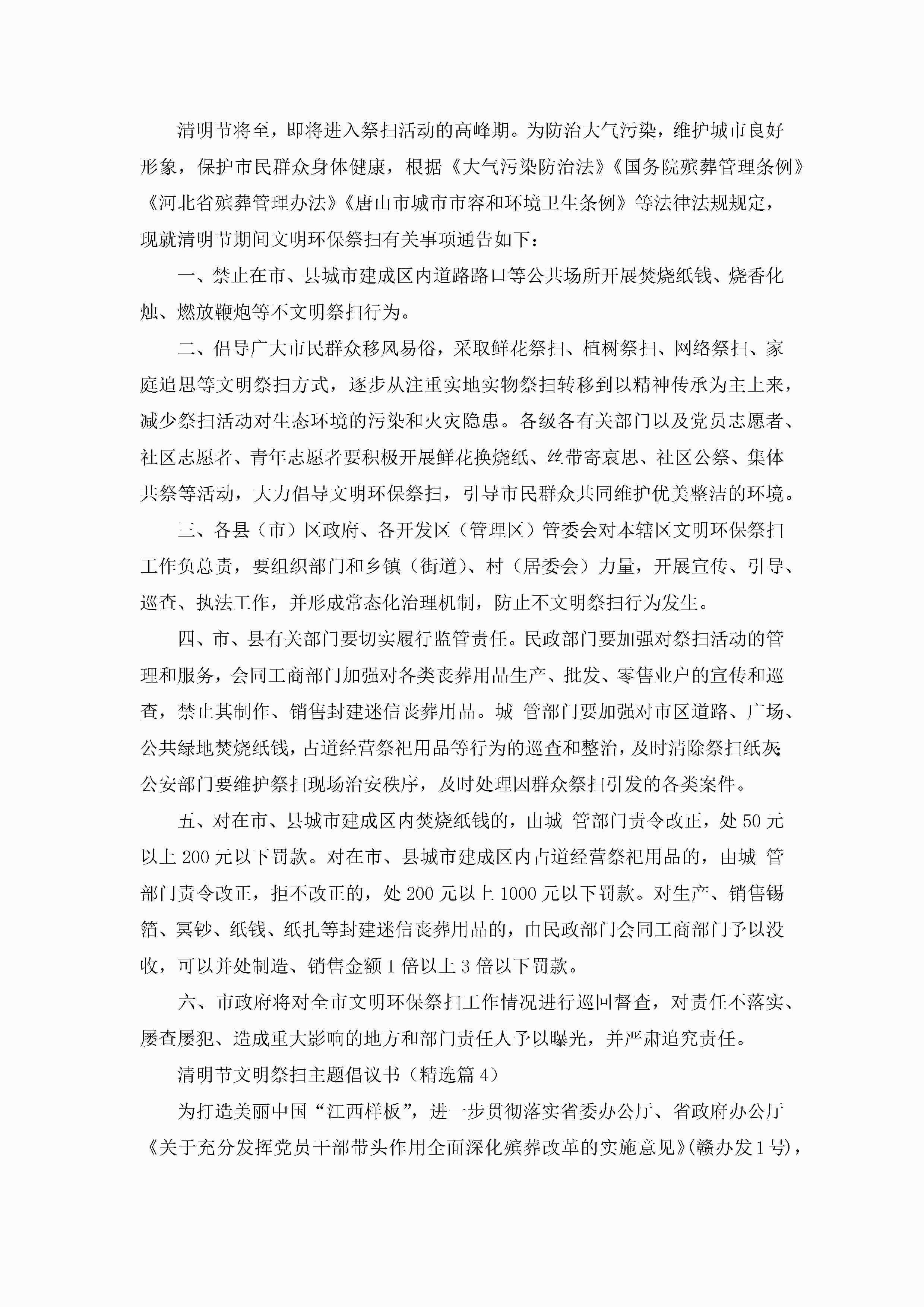 清明节文明祭扫主题倡议书范文jugei3月22日 16:25发布关注198 清明节文明祭扫主题倡议书范文此内容为付费资源,请付费后查看¥10.9 单篇文档限时特惠¥15个人会员开通企业会员开通立即下载无需登陆!可直接快捷下载单个模板付费资源© 版权声明THE ENDWord模板# 实用文档# 信函模板# 倡议书# 清明节文明祭扫主题倡议书 如有问题,可点击最底部“联系我们”联系客服 分享QQ空间微博QQ好友海报分享复制链接收藏