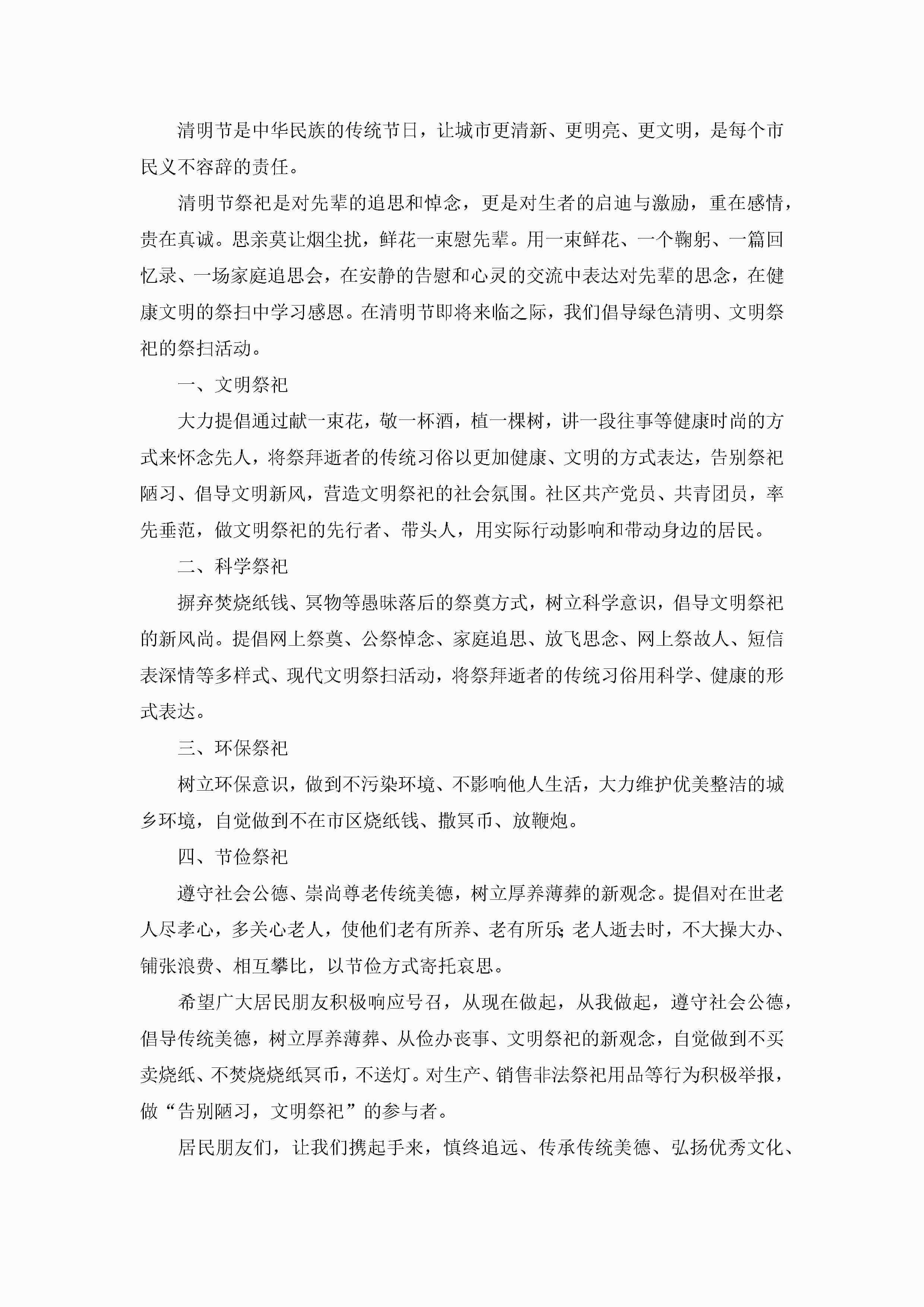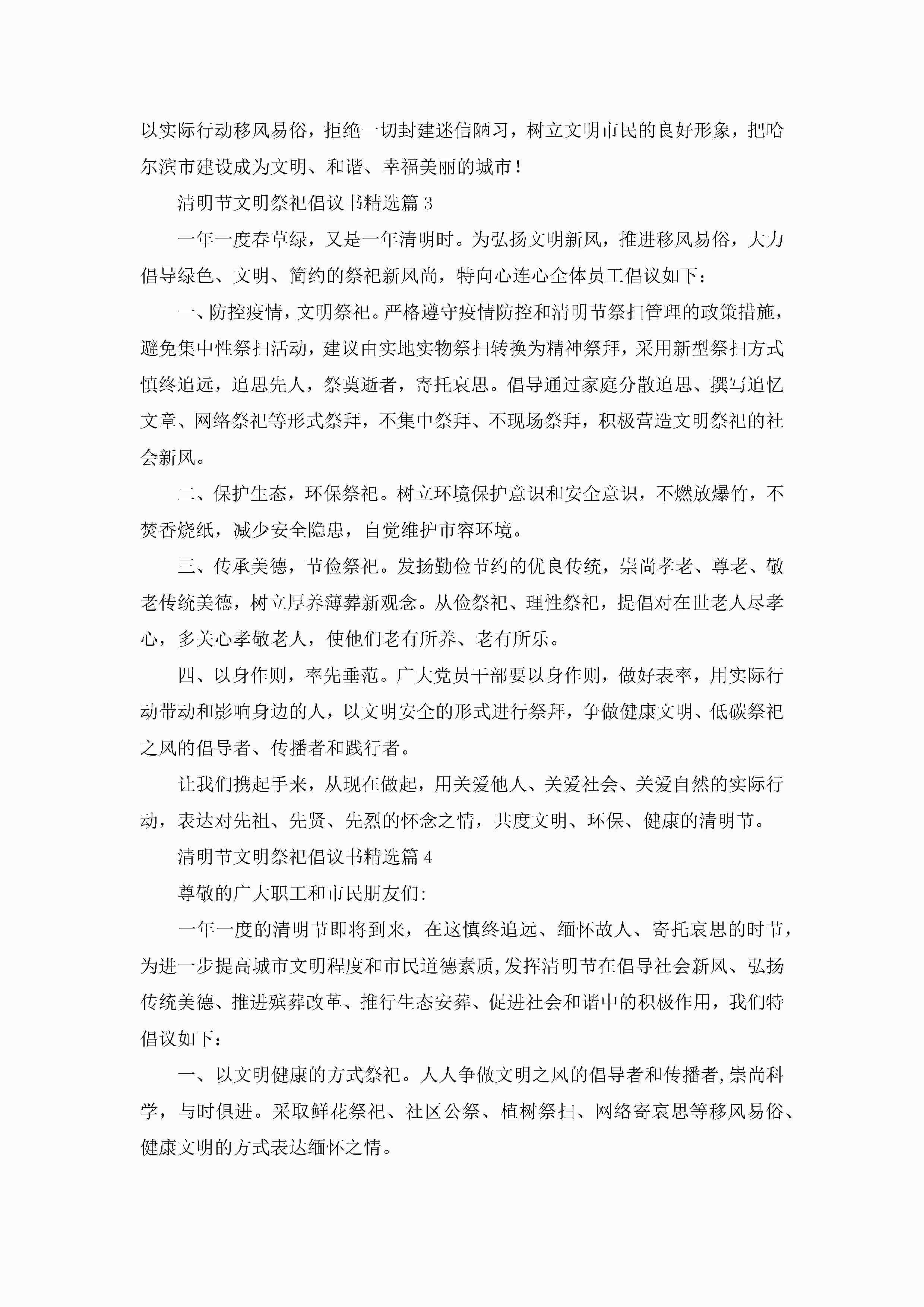 2023清明节文明祭祀倡议书怎么写模板jugei3月22日 16:25发布关注252 2023清明节文明祭祀倡议书怎么写模板此内容为付费资源,请付费后查看¥10.9 单篇文档限时特惠¥15个人会员开通企业会员开通立即下载无需登陆!可直接快捷下载单个模板付费资源© 版权声明THE ENDWord模板# 实用文档# 信函模板# 倡议书# 清明节文明祭祀倡议书 如有问题,可点击最底部“联系我们”联系客服 分享QQ空间微博QQ好友海报分享复制链接收藏