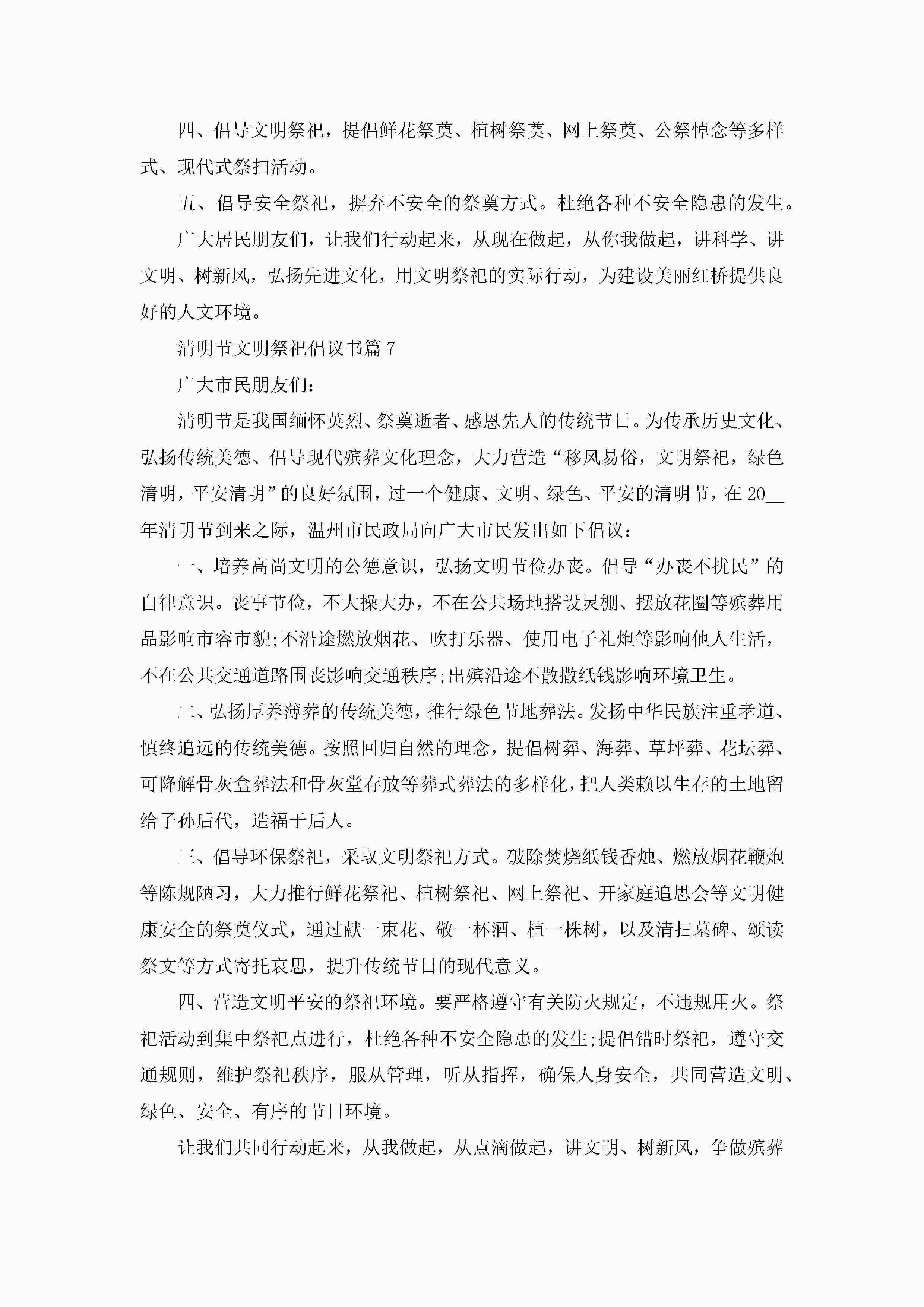 清明节文明祭祀倡议书精选七篇jugei3月22日 16:25发布关注198 清明节文明祭祀倡议书精选七篇此内容为付费资源,请付费后查看¥10.9 单篇文档限时特惠¥15个人会员开通企业会员开通立即下载无需登陆!可直接快捷下载单个模板付费资源© 版权声明THE ENDWord模板# 实用文档# 信函模板# 倡议书# 清明节文明祭祀倡议书七篇 如有问题,可点击最底部“联系我们”联系客服 分享QQ空间微博QQ好友海报分享复制链接收藏