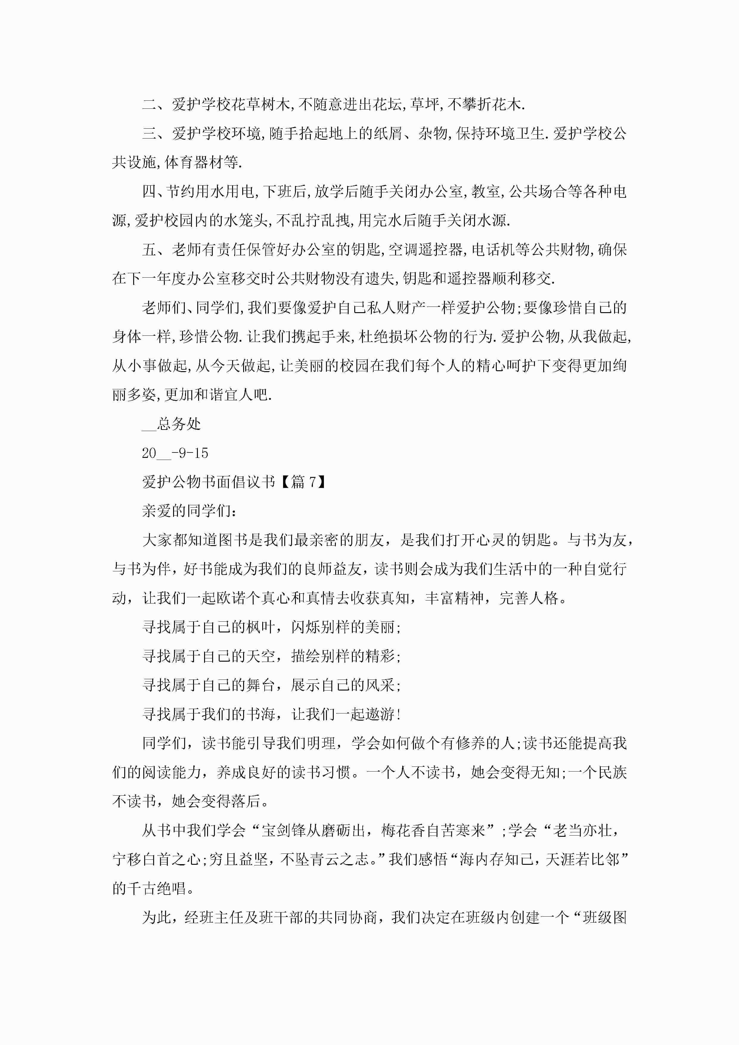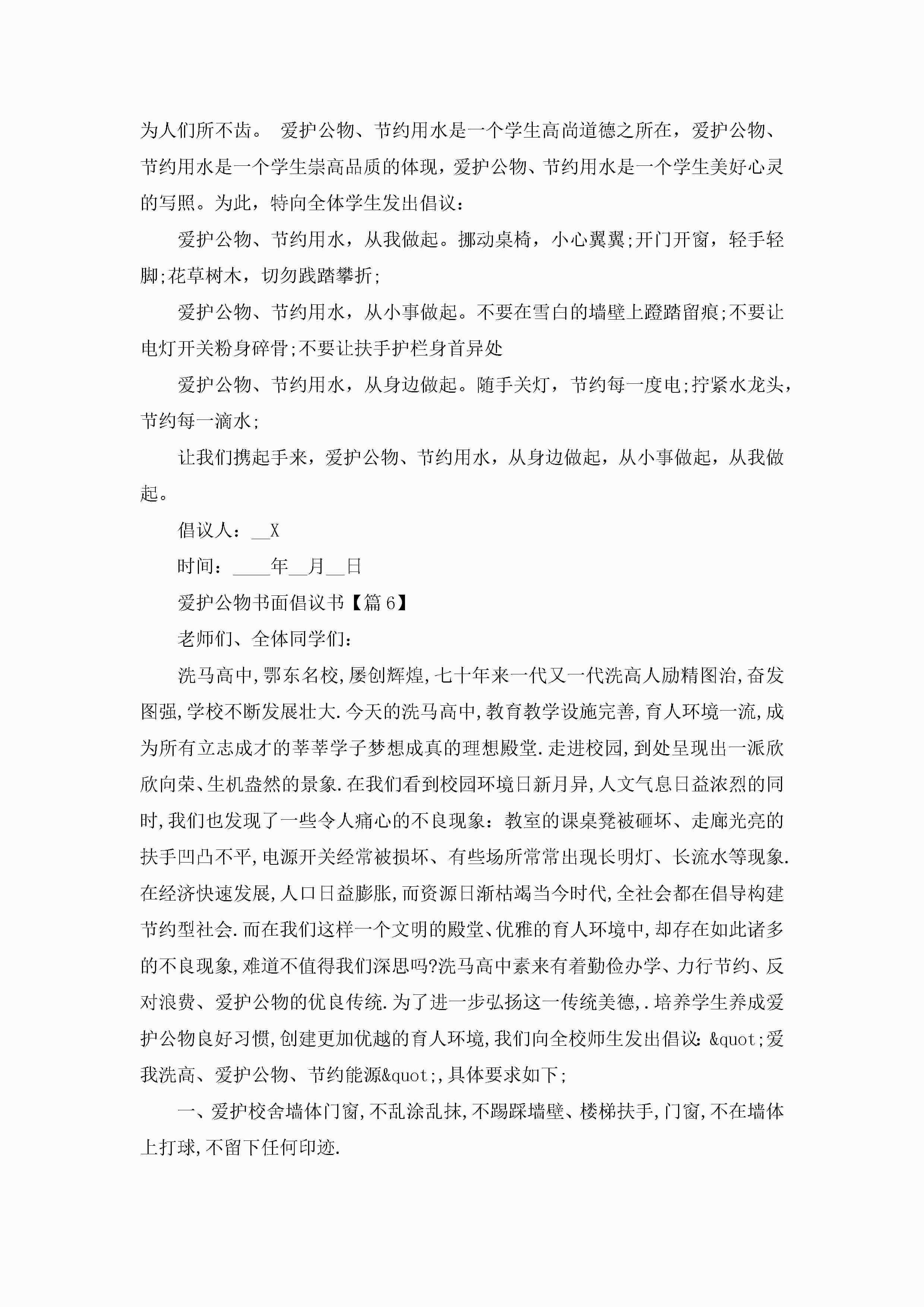 爱护公物书面倡议书8篇jugei3月22日 16:25发布关注207 爱护公物书面倡议书8篇此内容为付费资源,请付费后查看¥10.9 单篇文档限时特惠¥15个人会员开通企业会员开通立即下载无需登陆!可直接快捷下载单个模板付费资源© 版权声明THE ENDWord模板# 实用文档# 信函模板# 倡议书# 爱护公物书面倡议书 如有问题,可点击最底部“联系我们”联系客服 分享QQ空间微博QQ好友海报分享复制链接收藏