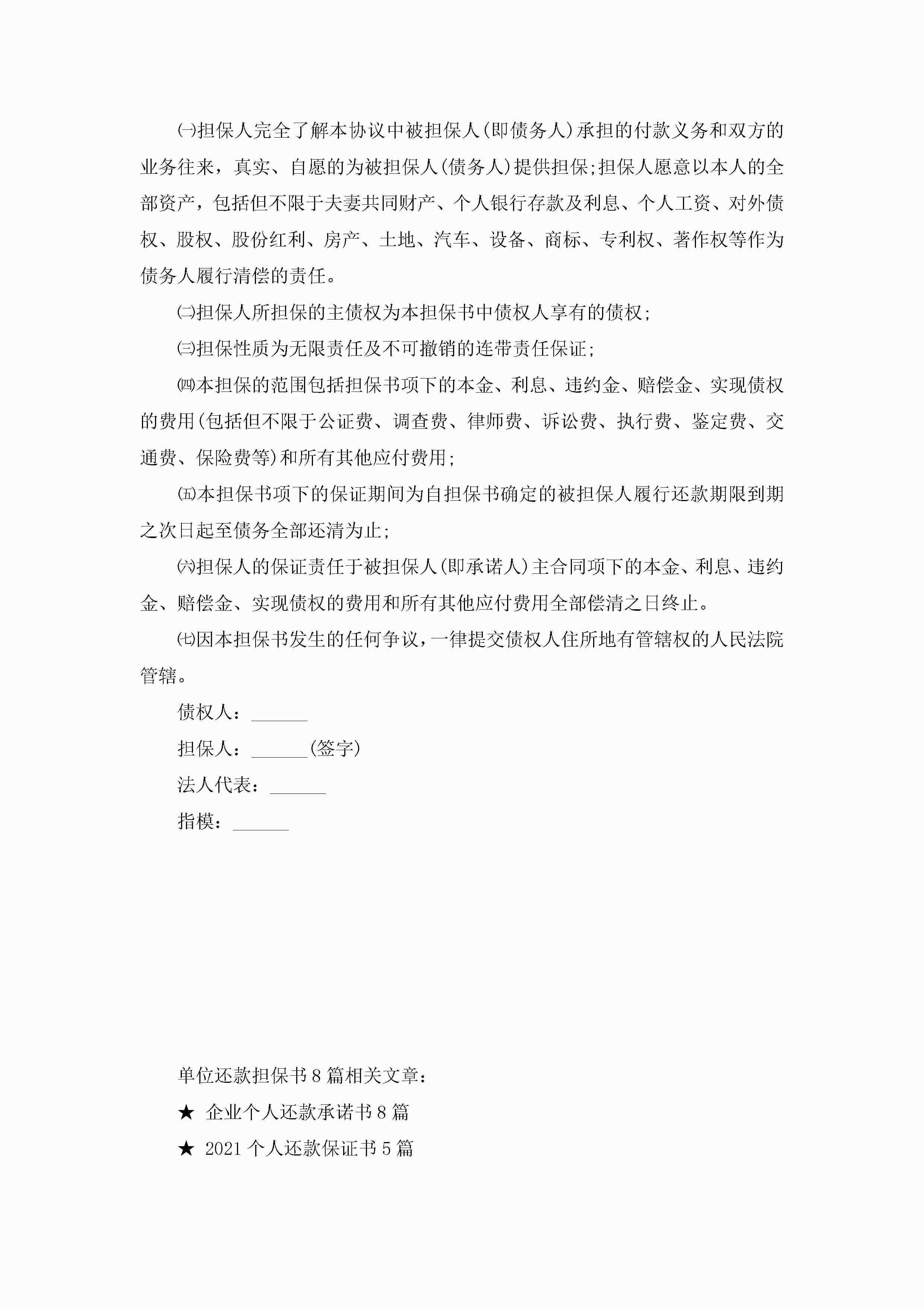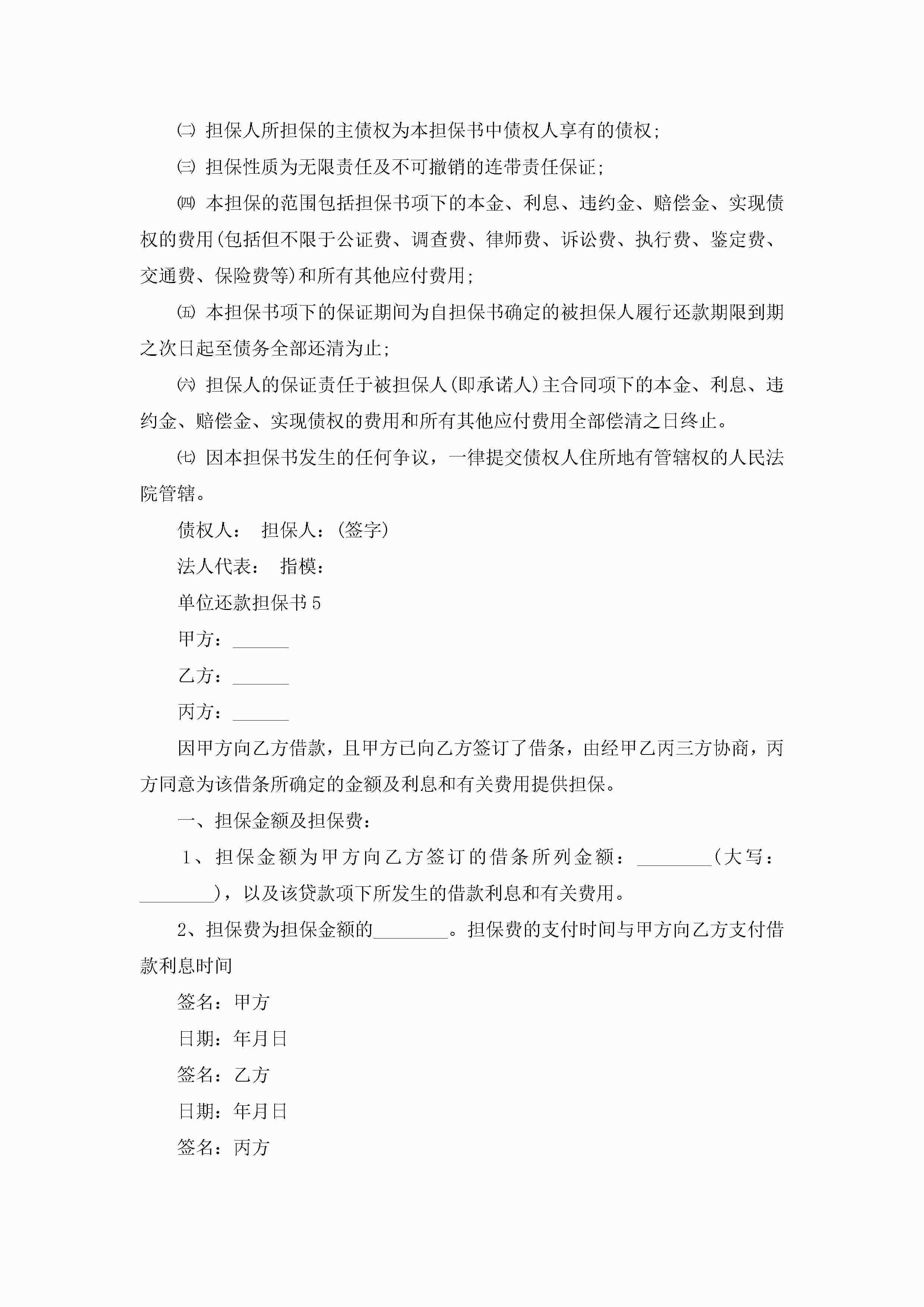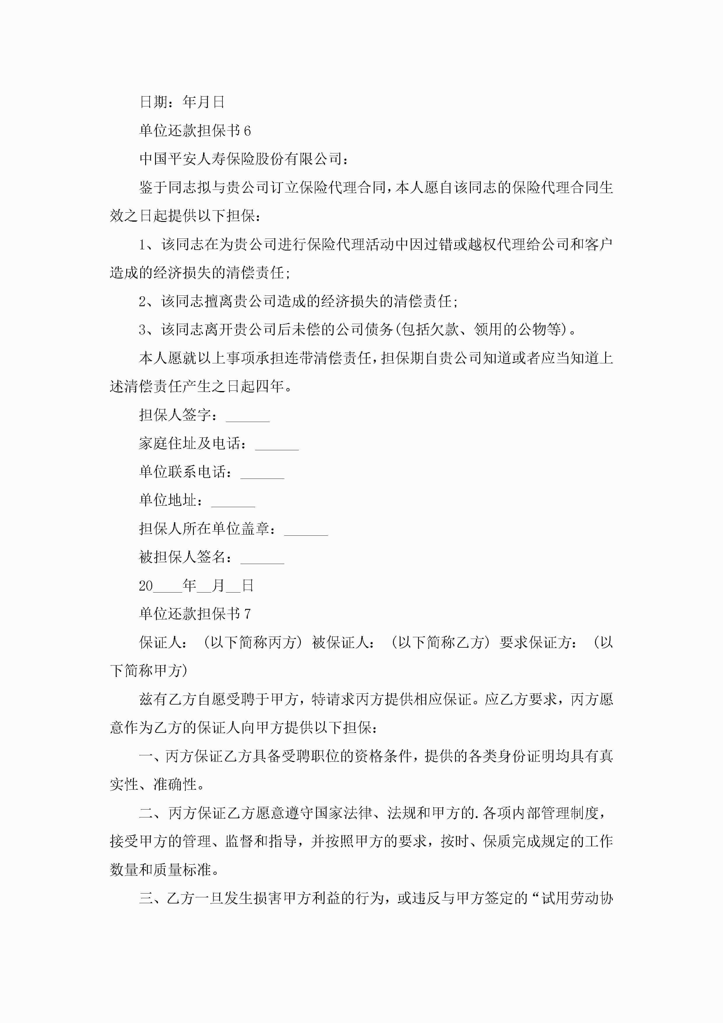 关于单位还款担保书8篇jugei3月22日 16:25发布关注208 关于单位还款担保书8篇此内容为付费资源,请付费后查看¥10.9 单篇文档限时特惠¥15个人会员开通企业会员开通立即下载无需登陆!可直接快捷下载单个模板付费资源© 版权声明THE ENDWord模板# 实用文档# 实用模板# 信函模板# 担保书 如有问题,可点击最底部“联系我们”联系客服 分享QQ空间微博QQ好友海报分享复制链接收藏