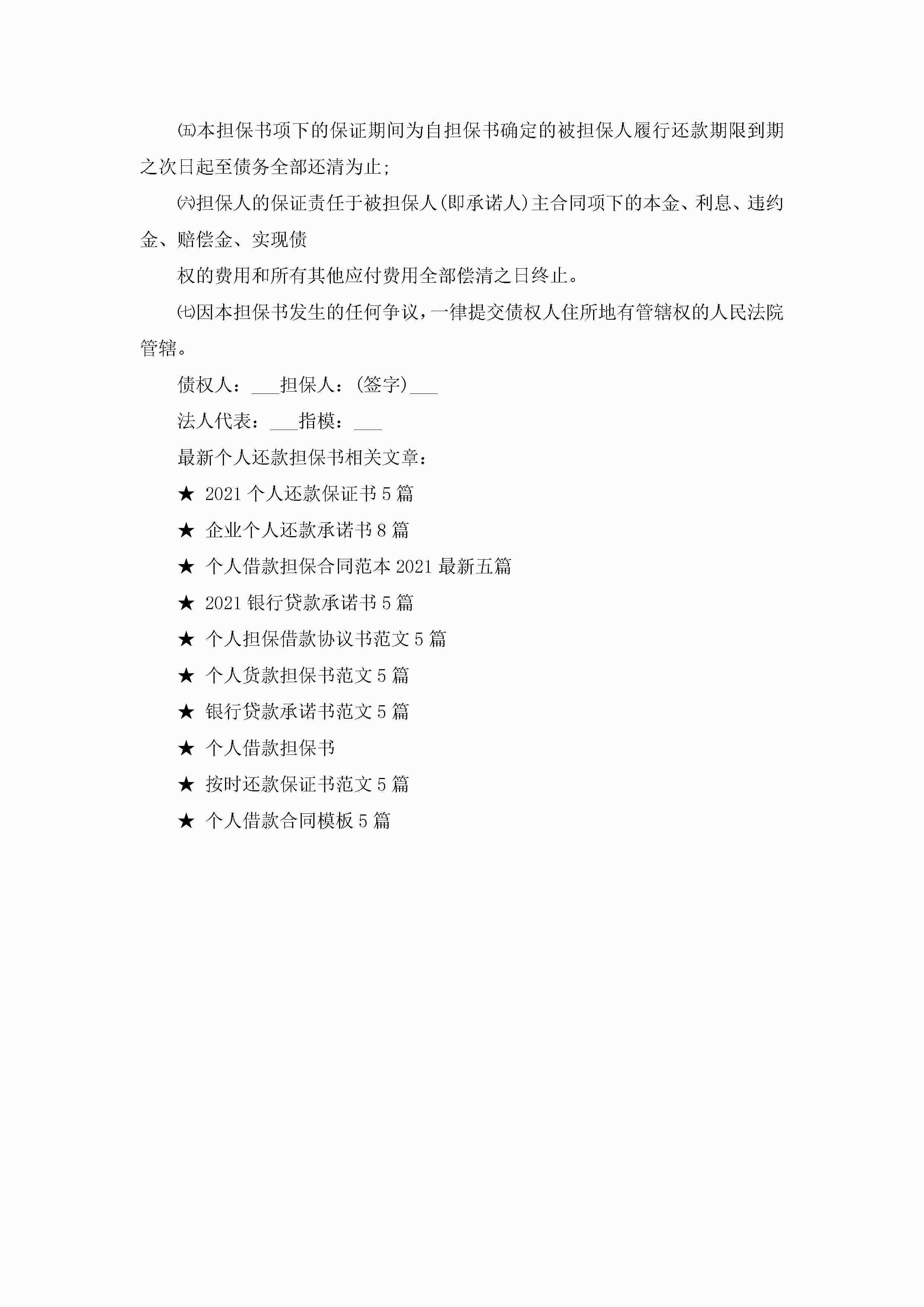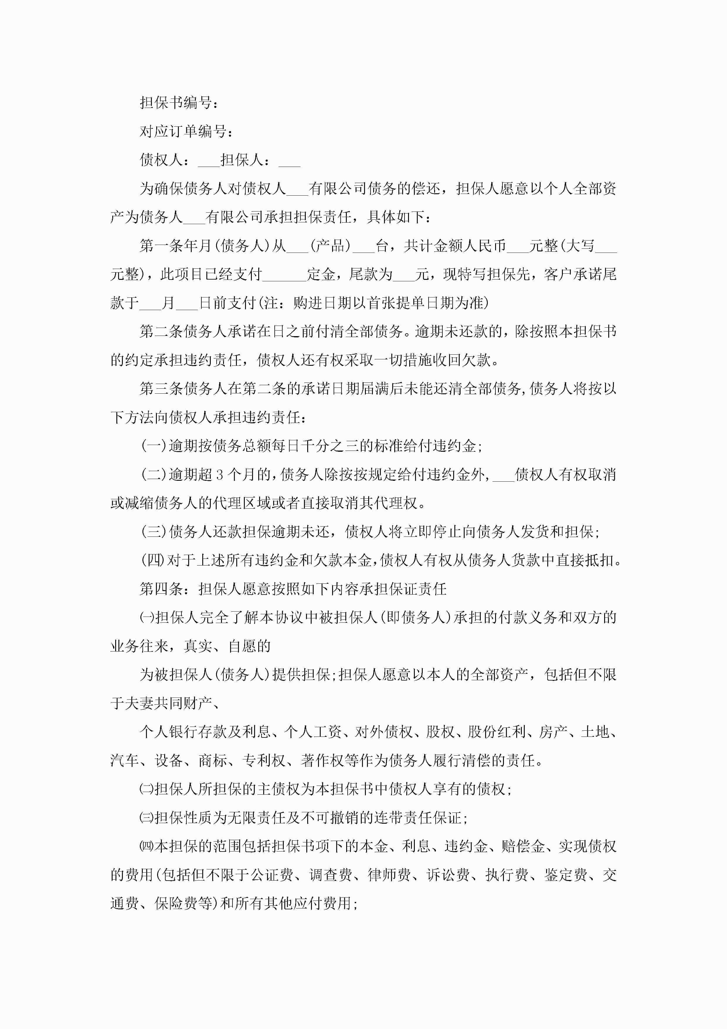 最新个人还款担保书5篇jugei3月22日 16:25发布关注218 最新个人还款担保书5篇此内容为付费资源,请付费后查看¥10.9 单篇文档限时特惠¥15个人会员开通企业会员开通立即下载无需登陆!可直接快捷下载单个模板付费资源© 版权声明THE ENDWord模板# 实用文档# 实用模板# 信函模板# 担保书 如有问题,可点击最底部“联系我们”联系客服 分享QQ空间微博QQ好友海报分享复制链接收藏