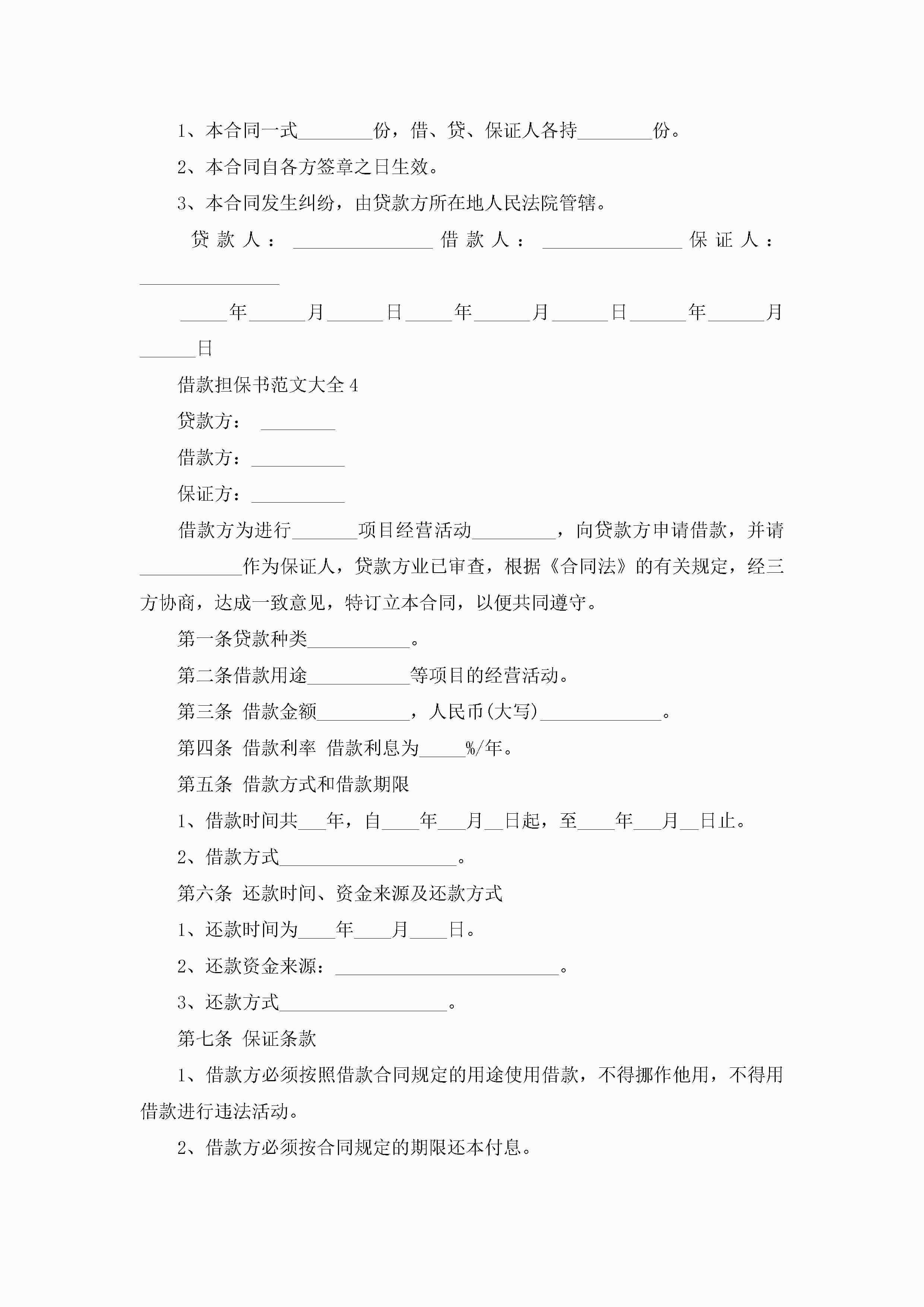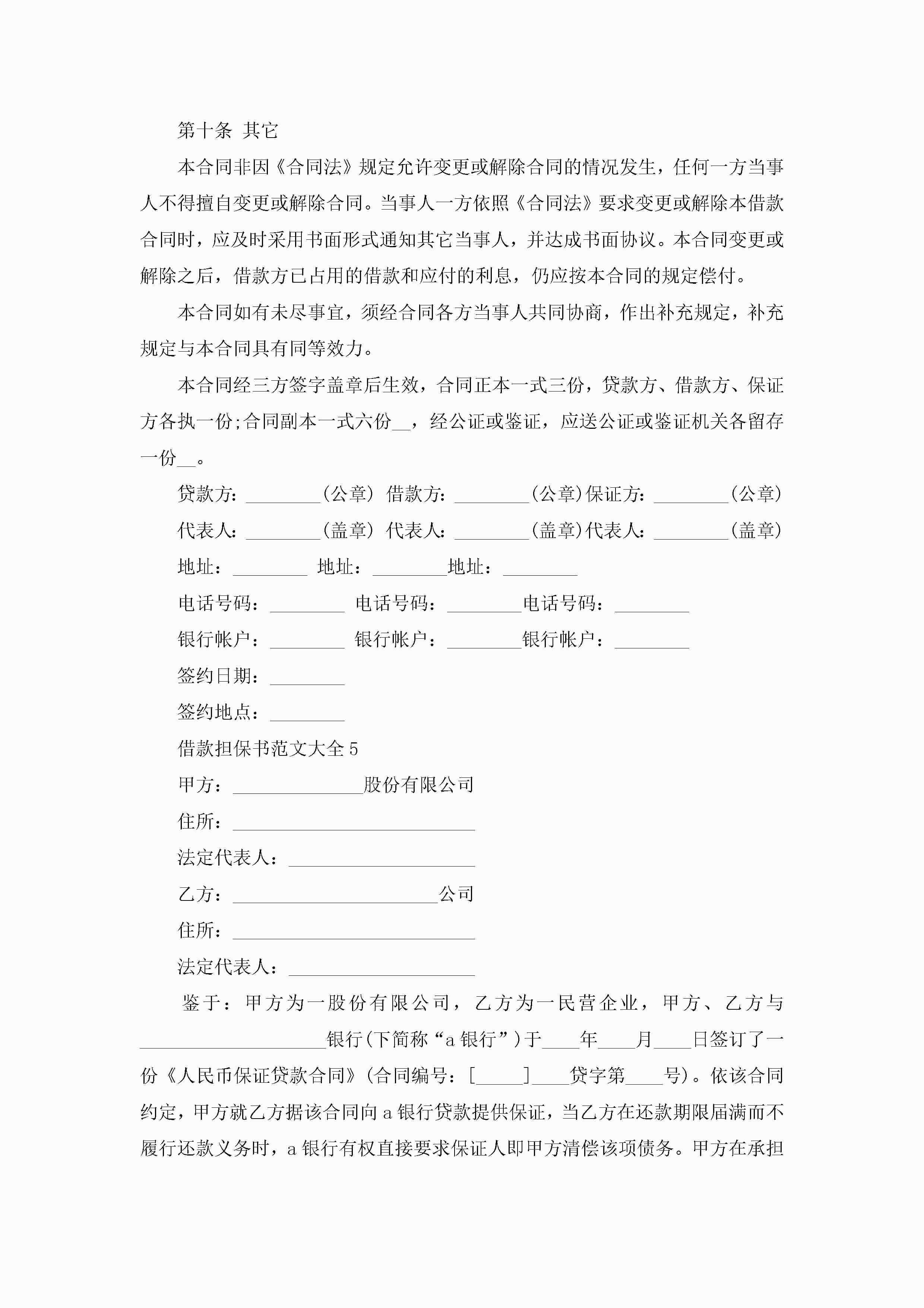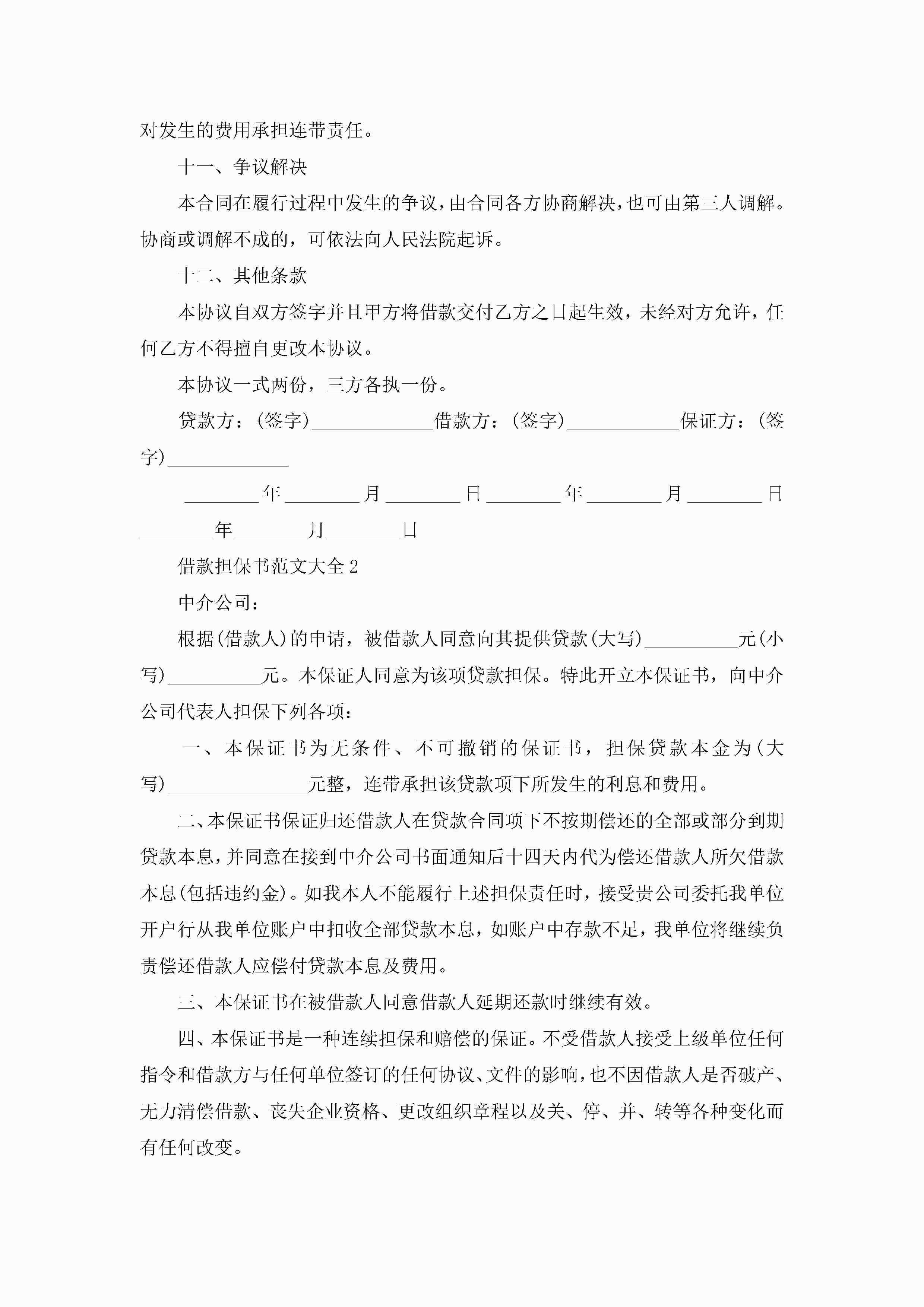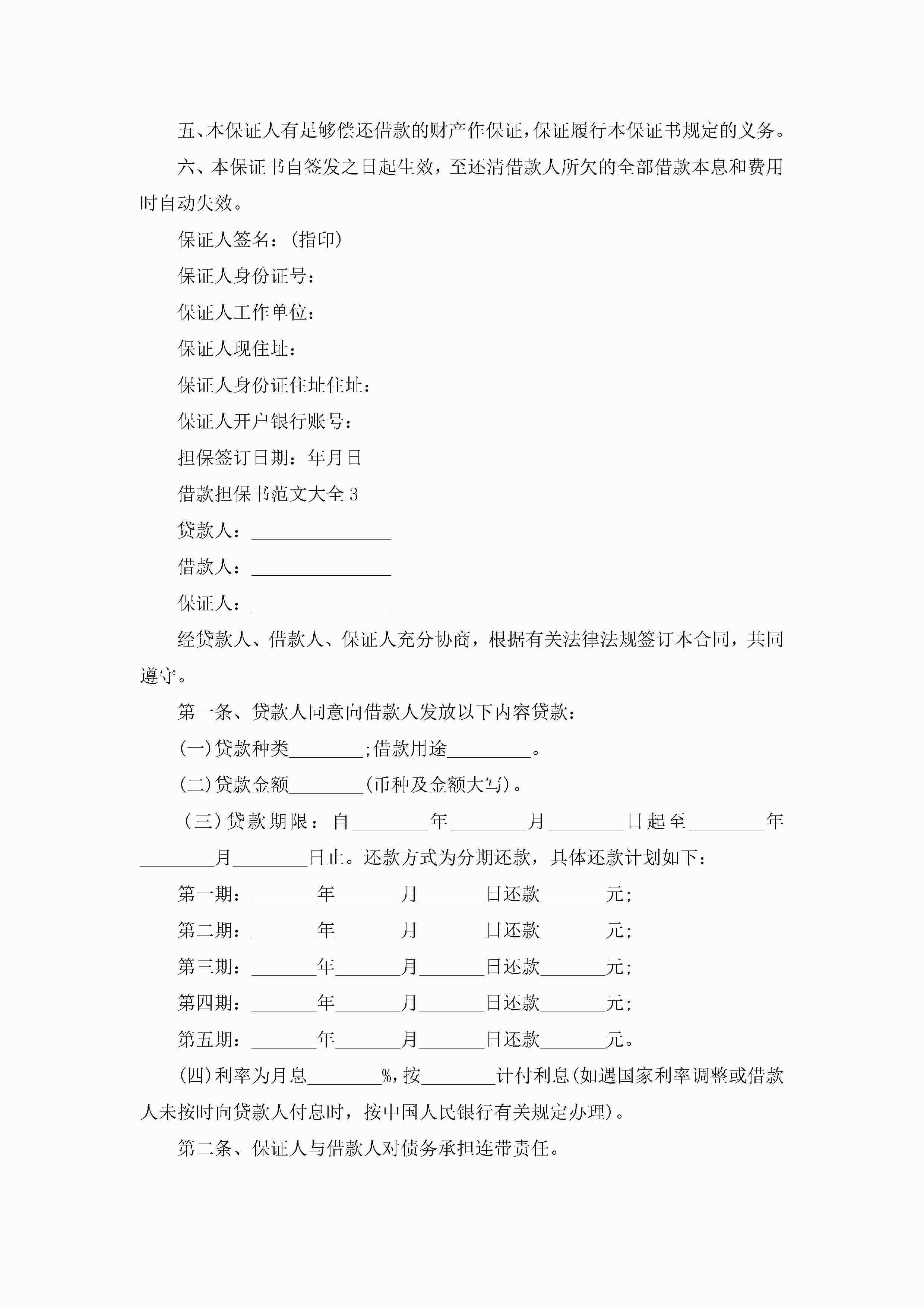 借款担保书范文大全5篇jugei3月22日 16:25发布关注254 借款担保书范文大全5篇此内容为付费资源,请付费后查看¥10.9 单篇文档限时特惠¥15个人会员开通企业会员开通立即下载无需登陆!可直接快捷下载单个模板付费资源© 版权声明THE ENDWord模板# 实用文档# 实用模板# 信函模板# 担保书 如有问题,可点击最底部“联系我们”联系客服 分享QQ空间微博QQ好友海报分享复制链接收藏