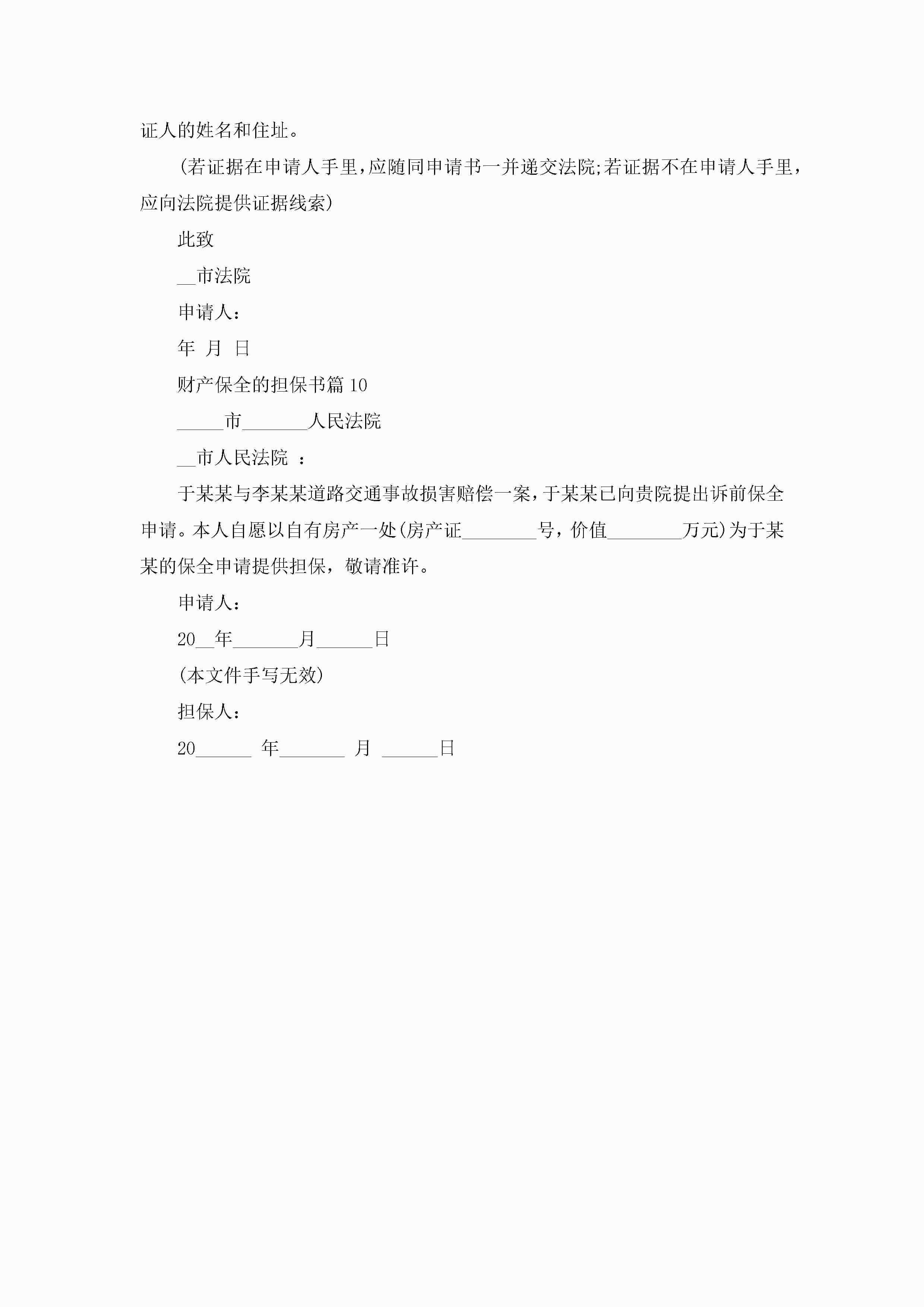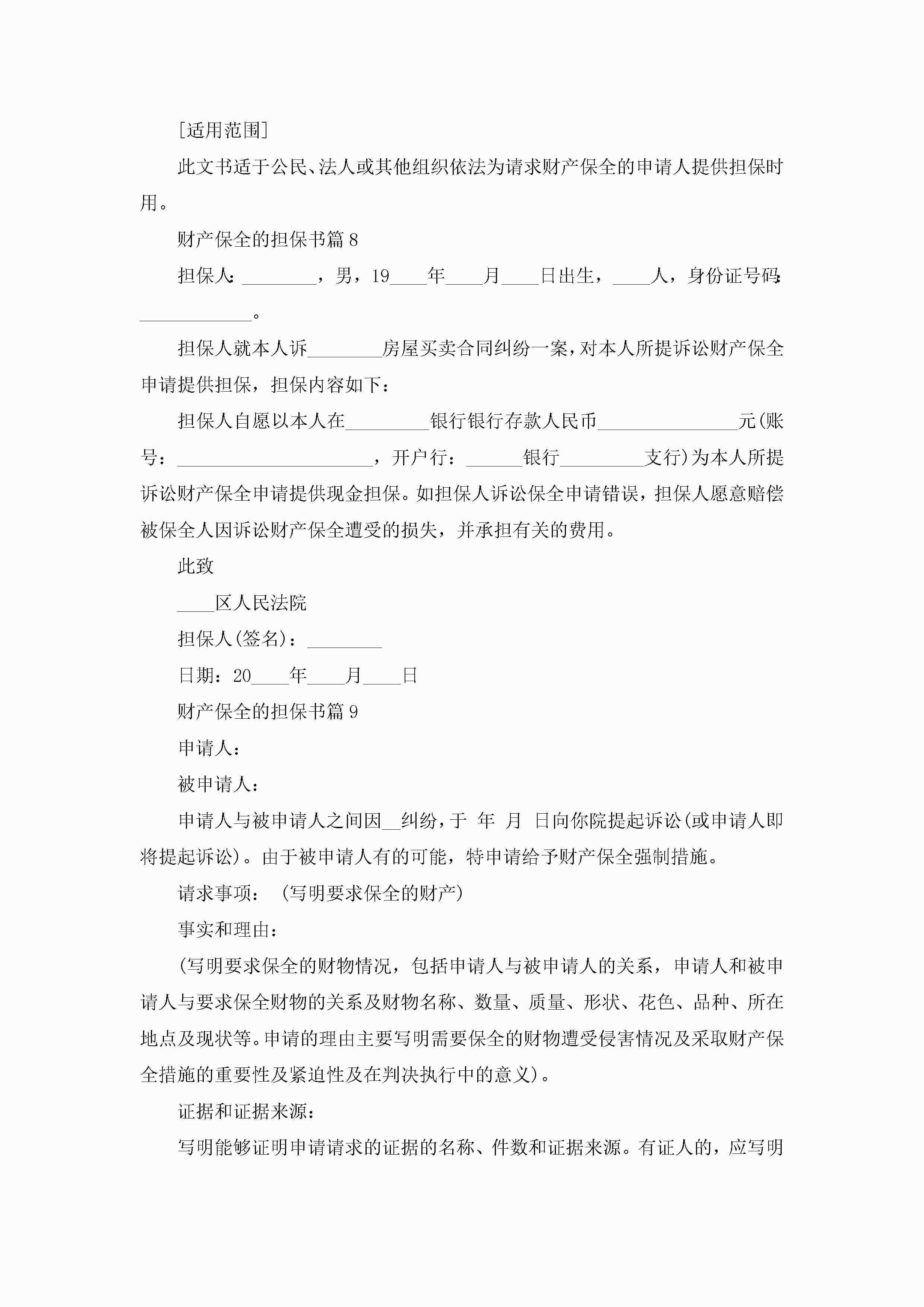 财产保全的担保书10篇(精选)jugei3月22日 16:25发布关注217 财产保全的担保书10篇(精选)此内容为付费资源,请付费后查看¥10.9 单篇文档限时特惠¥15个人会员开通企业会员开通立即下载无需登陆!可直接快捷下载单个模板付费资源© 版权声明THE ENDWord模板# 实用文档# 实用模板# 信函模板# 担保书 如有问题,可点击最底部“联系我们”联系客服 分享QQ空间微博QQ好友海报分享复制链接收藏
