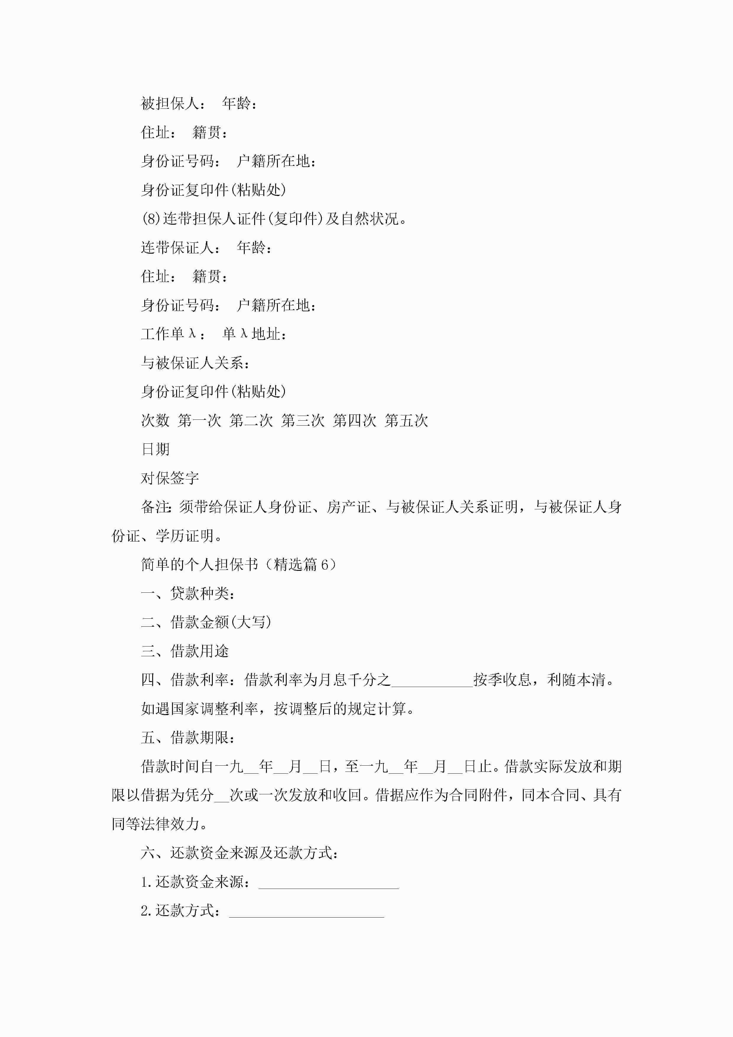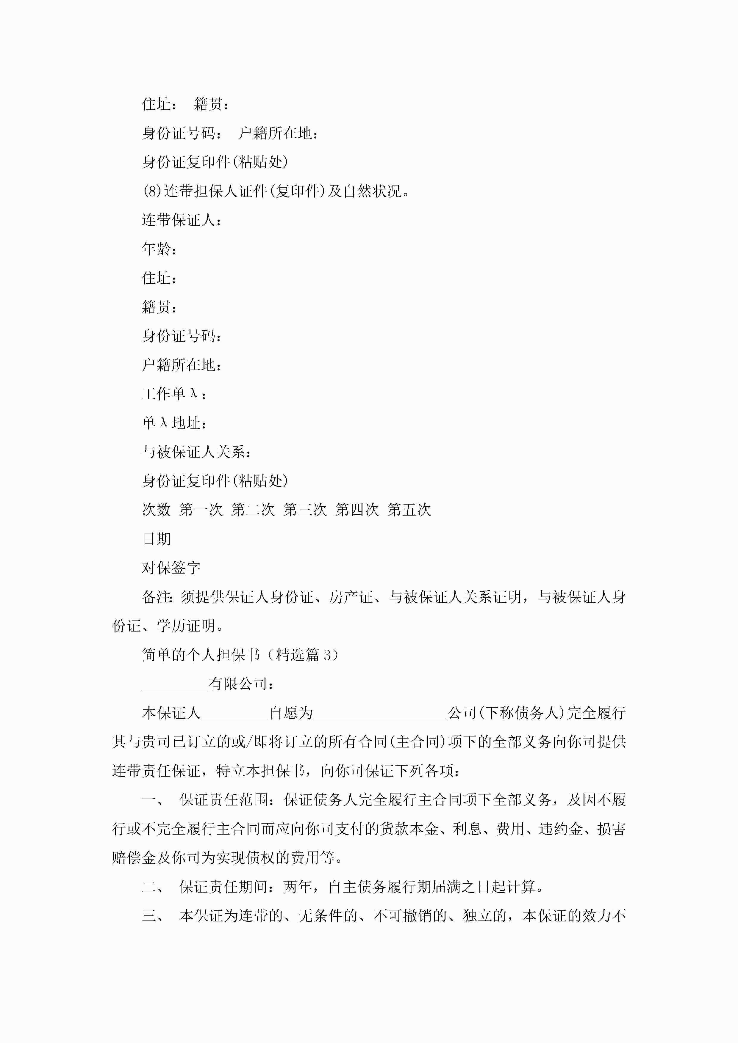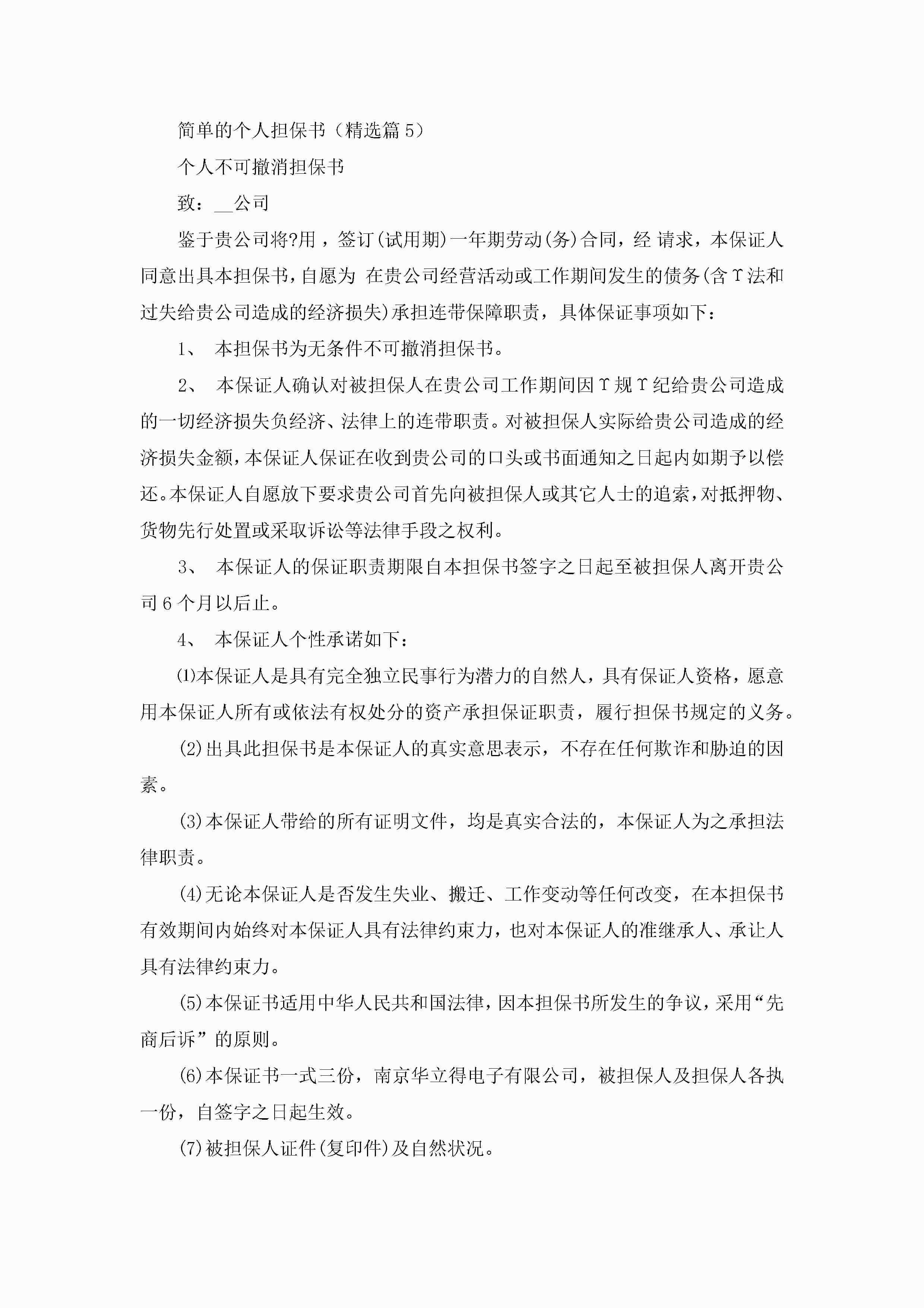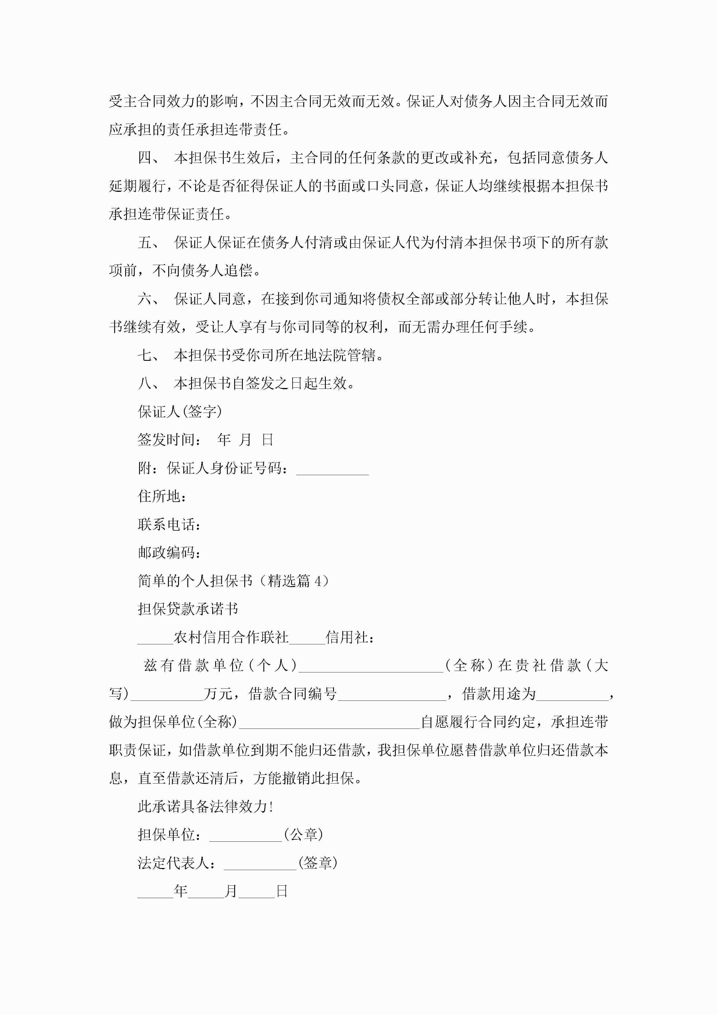 简单的个人担保书范文jugei3月22日 16:25发布关注253 简单的个人担保书范文此内容为付费资源,请付费后查看¥10.9 单篇文档限时特惠¥15个人会员开通企业会员开通立即下载无需登陆!可直接快捷下载单个模板付费资源© 版权声明THE ENDWord模板# 实用文档# 实用模板# 信函模板# 担保书 如有问题,可点击最底部“联系我们”联系客服 分享QQ空间微博QQ好友海报分享复制链接收藏