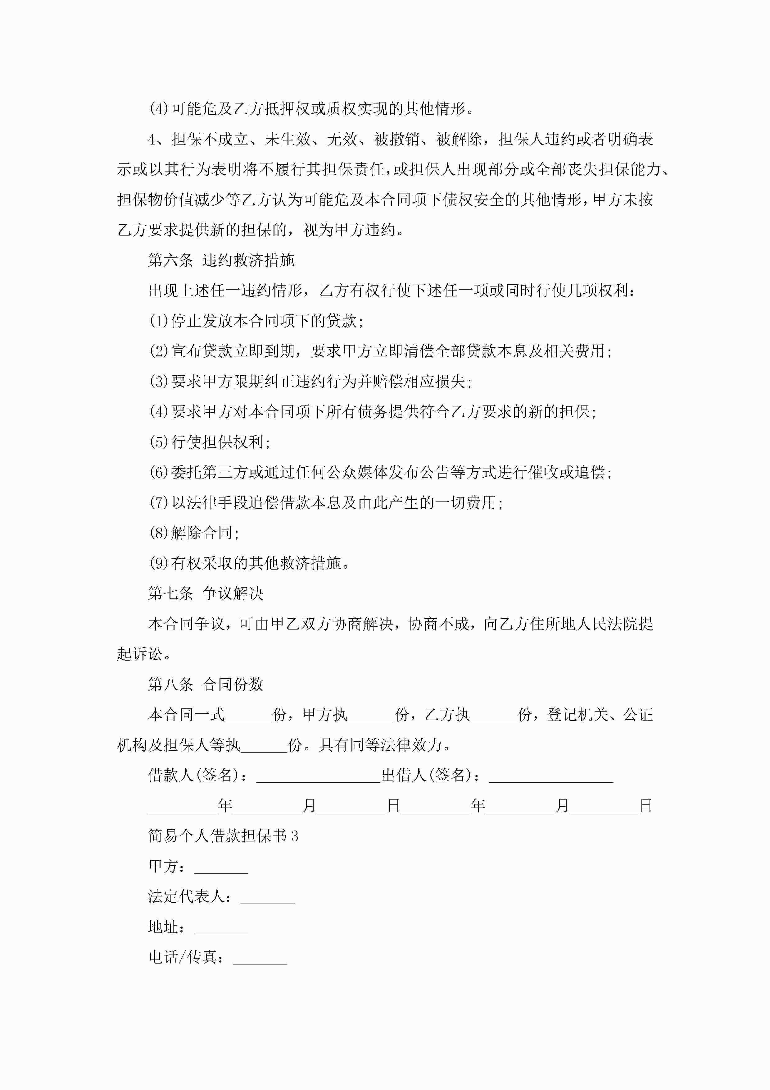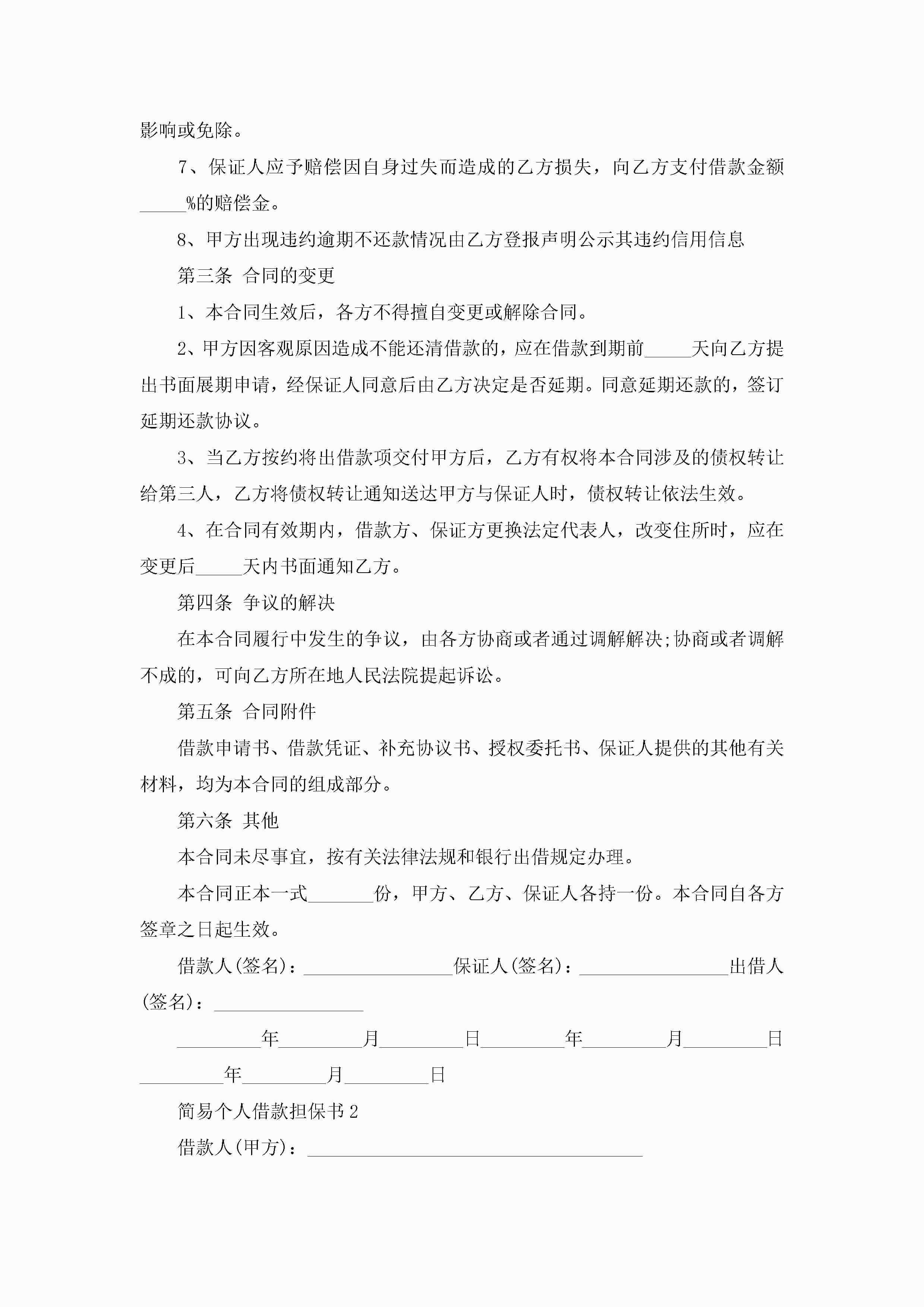 简易个人借款担保书5篇jugei3月22日 16:25发布关注253 简易个人借款担保书5篇此内容为付费资源,请付费后查看¥10.9 单篇文档限时特惠¥15个人会员开通企业会员开通立即下载无需登陆!可直接快捷下载单个模板付费资源© 版权声明THE ENDWord模板# 实用文档# 实用模板# 信函模板# 担保书 如有问题,可点击最底部“联系我们”联系客服 分享QQ空间微博QQ好友海报分享复制链接收藏