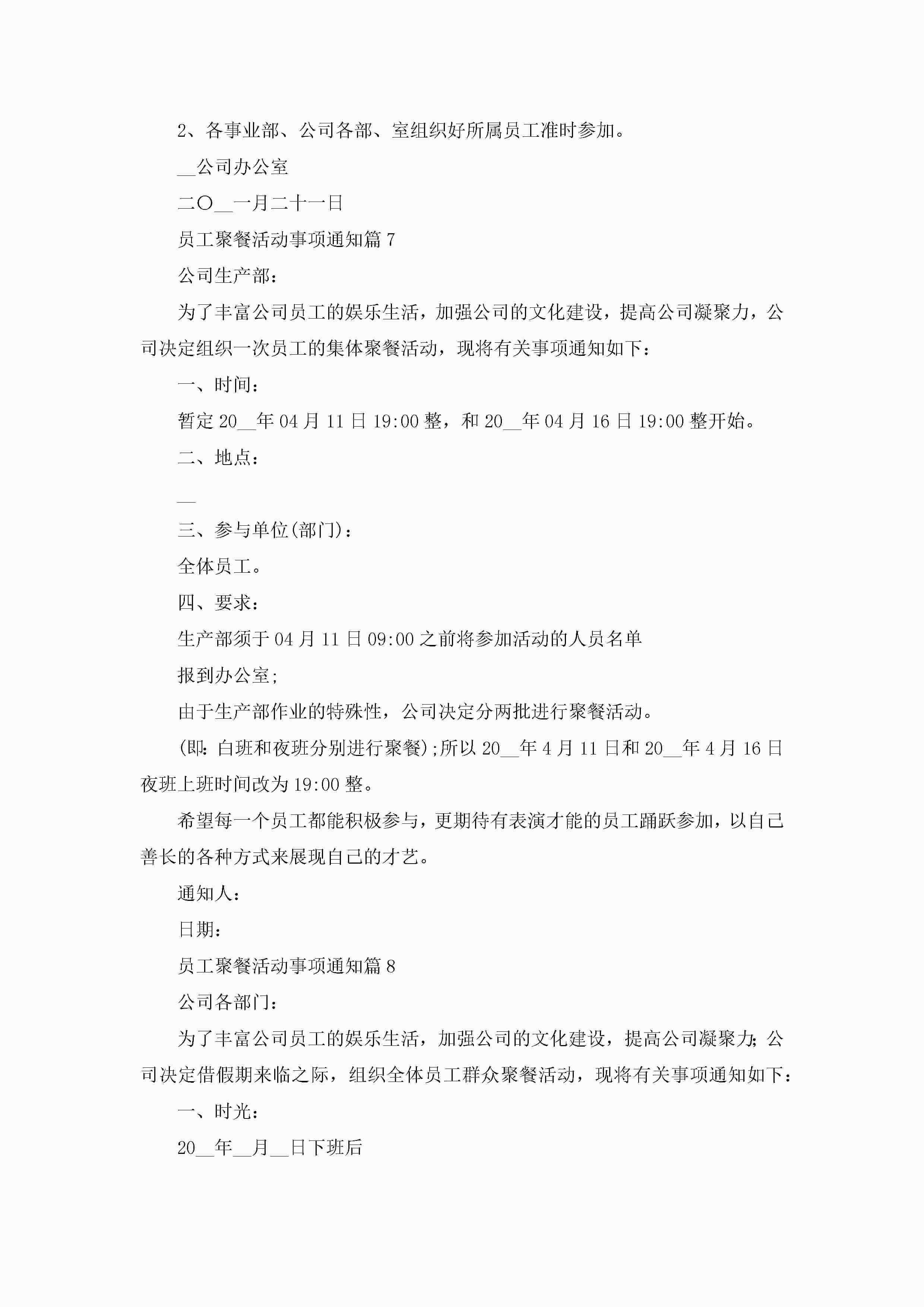 员工聚餐活动事项通知【精选8篇】jugei3月22日 16:25发布关注280 员工聚餐活动事项通知【精选8篇】此内容为付费资源,请付费后查看¥10.9 单篇文档限时特惠¥15个人会员开通企业会员开通立即下载无需登陆!可直接快捷下载单个模板付费资源© 版权声明THE ENDWord模板# 实用文档# 实用模板# 信函模板# 通知书 如有问题,可点击最底部“联系我们”联系客服 分享QQ空间微博QQ好友海报分享复制链接收藏