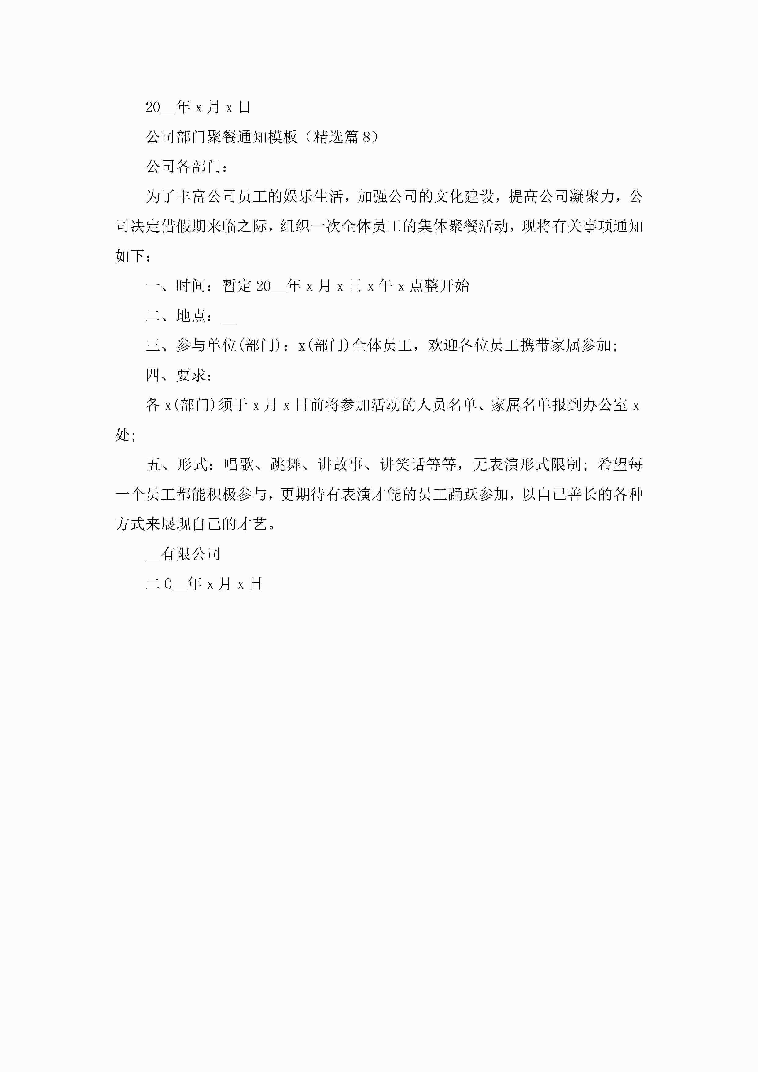 公司部门聚餐通知模板【优秀8篇】jugei3月22日 16:25发布关注274 公司部门聚餐通知模板【优秀8篇】此内容为付费资源,请付费后查看¥10.9 单篇文档限时特惠¥15个人会员开通企业会员开通立即下载无需登陆!可直接快捷下载单个模板付费资源© 版权声明THE ENDWord模板# 实用文档# 实用模板# 信函模板# 通知书 如有问题,可点击最底部“联系我们”联系客服 分享QQ空间微博QQ好友海报分享复制链接收藏
