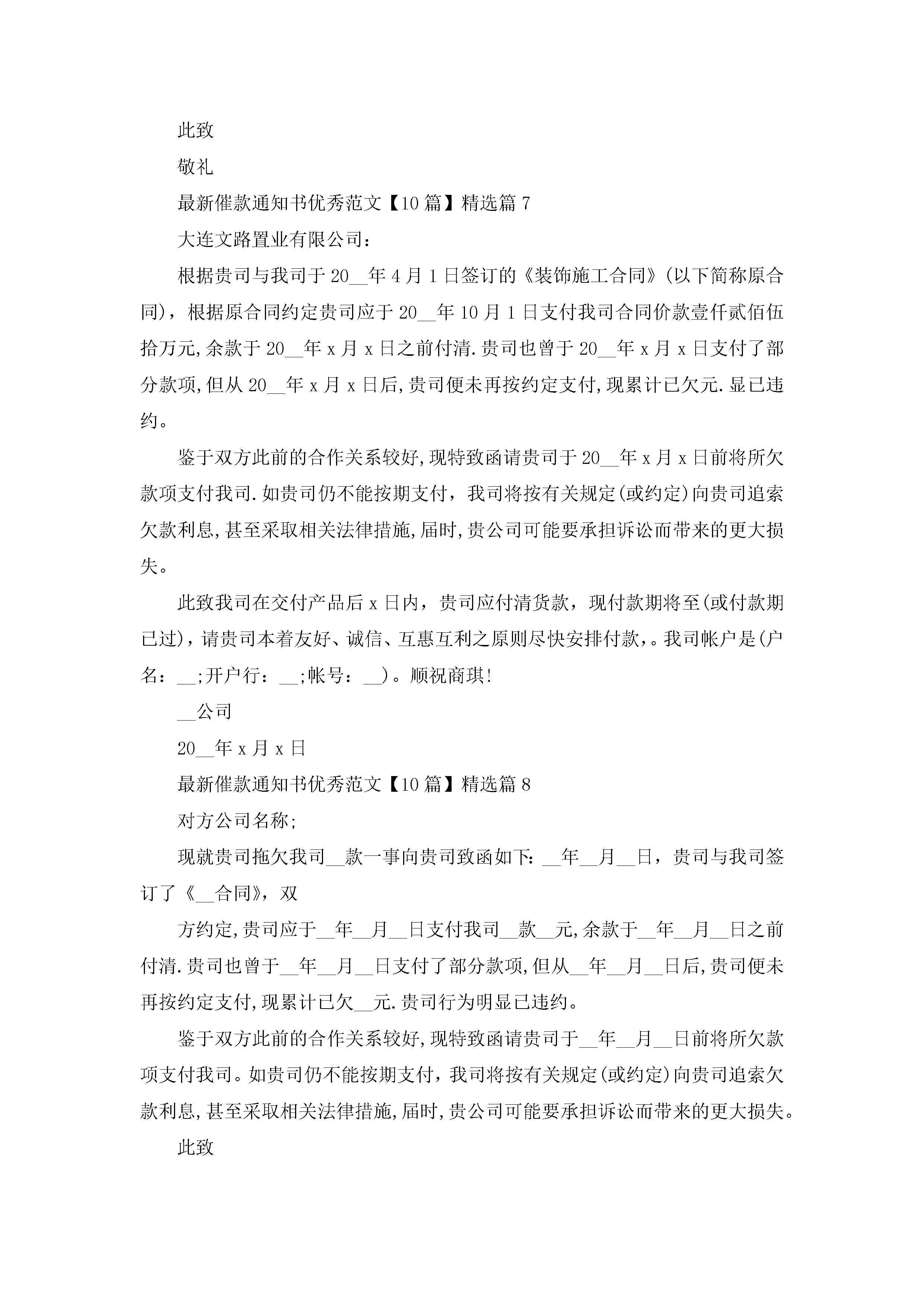 最新催款通知书优秀范文【精选10篇】jugei3月22日 16:25发布关注261 最新催款通知书优秀范文【精选10篇】此内容为付费资源,请付费后查看¥10.9 单篇文档限时特惠¥15个人会员开通企业会员开通立即下载无需登陆!可直接快捷下载单个模板付费资源© 版权声明THE ENDWord模板# 实用文档# 实用模板# 信函模板# 通知书# 最新催款通知书优秀范文【10篇】 如有问题,可点击最底部“联系我们”联系客服 分享QQ空间微博QQ好友海报分享复制链接收藏
